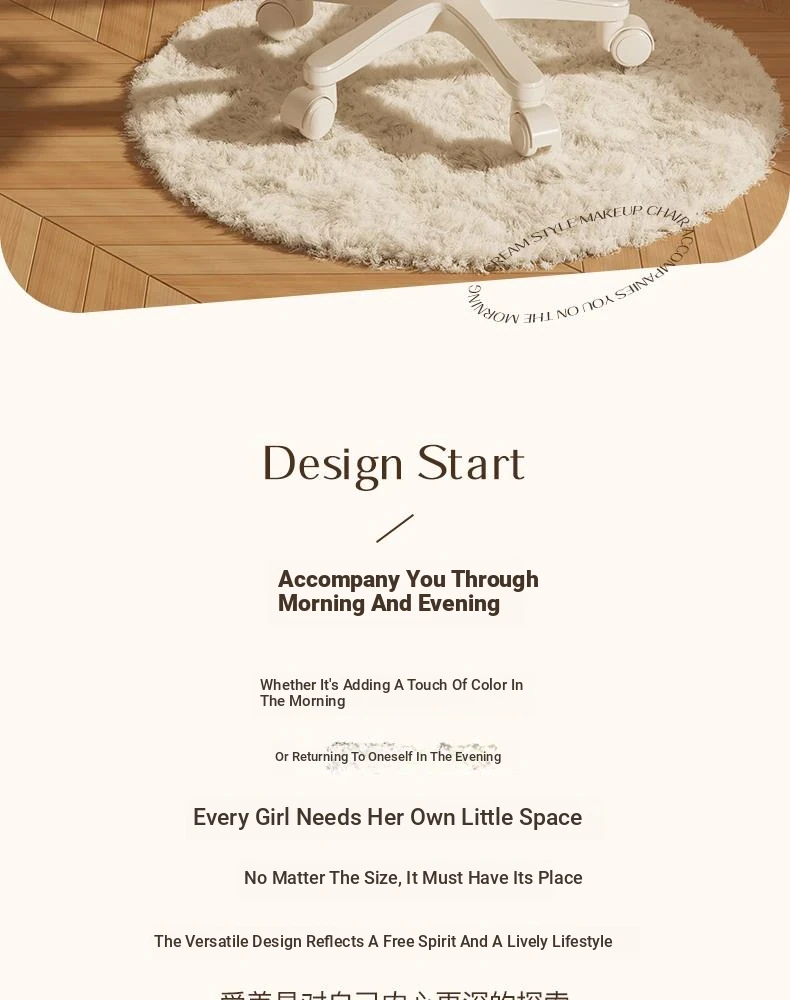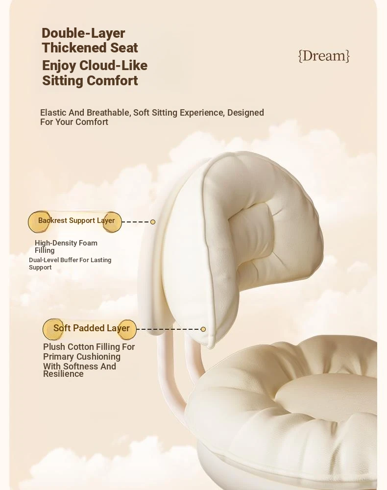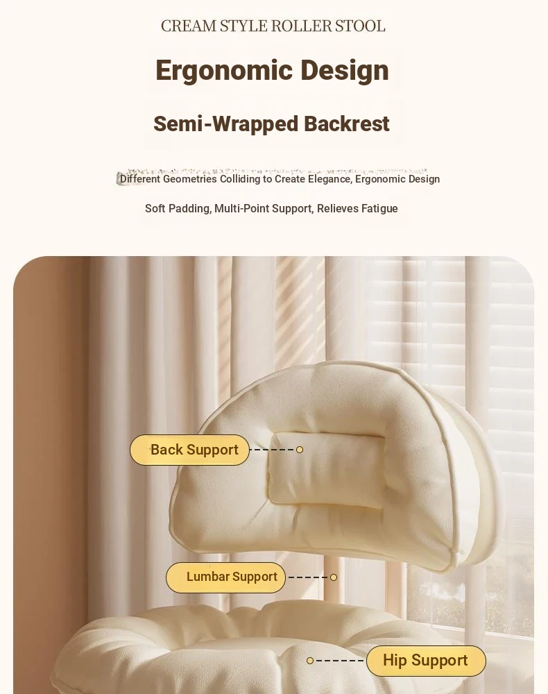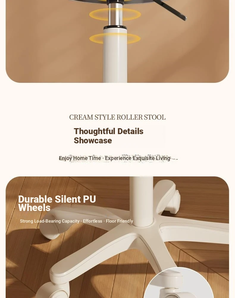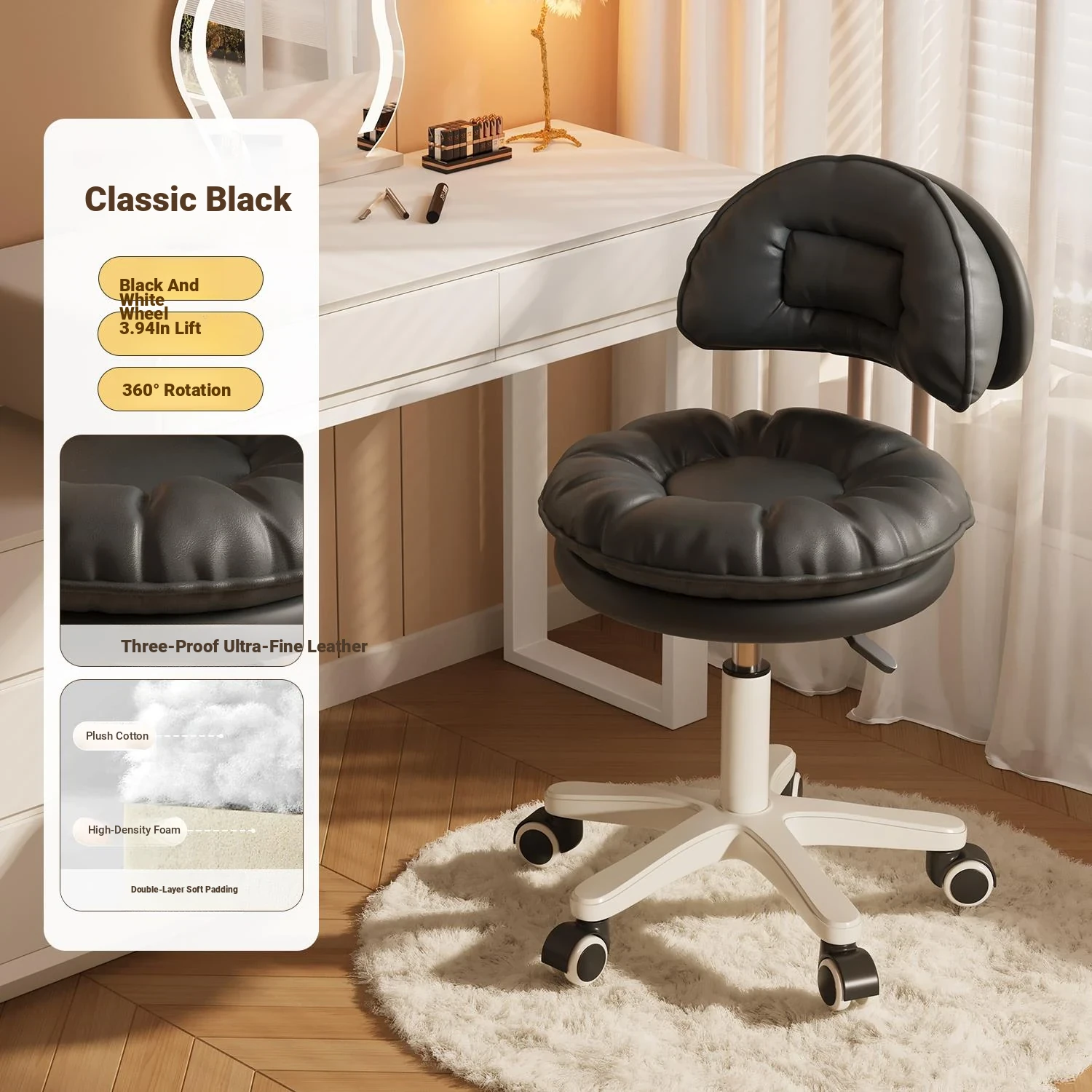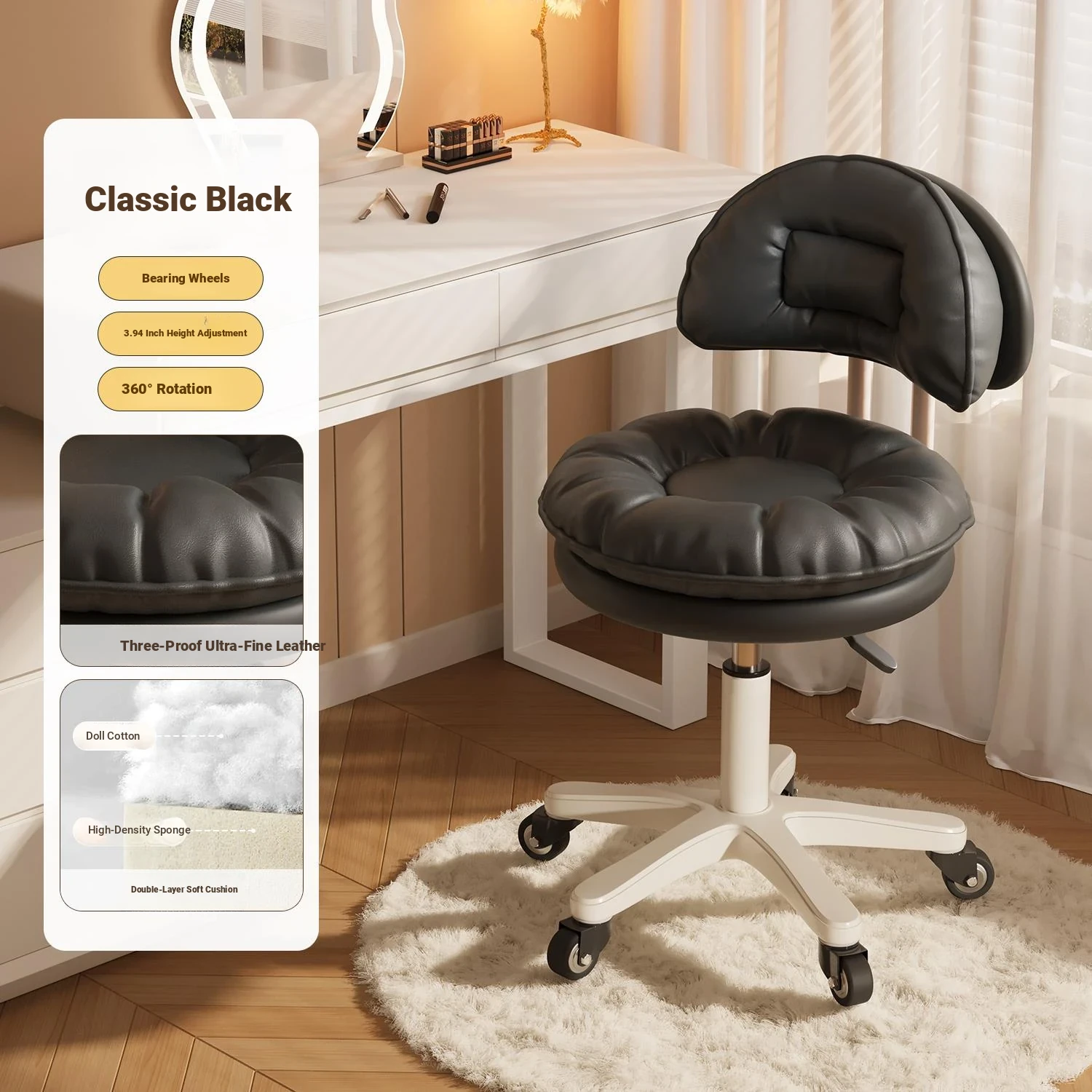 Creamy Makeup Chair - Stylish Adjustable Computer Chair for Dressing Table, Ideal for Girls’ Bedrooms, Home Use, and Manicure – Ergonomic Swivel Stool for Ultimate Comfort