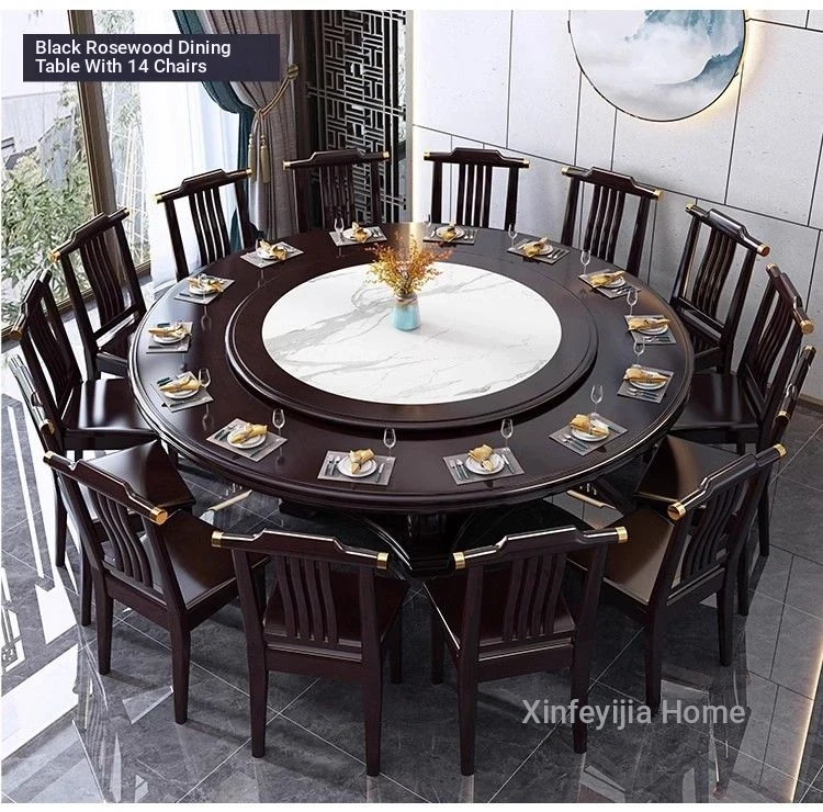 62.99 in Dining Table +12 Chairs [Send Embedded Rock Plate Turntable]/Ebony [Induction cooker]]