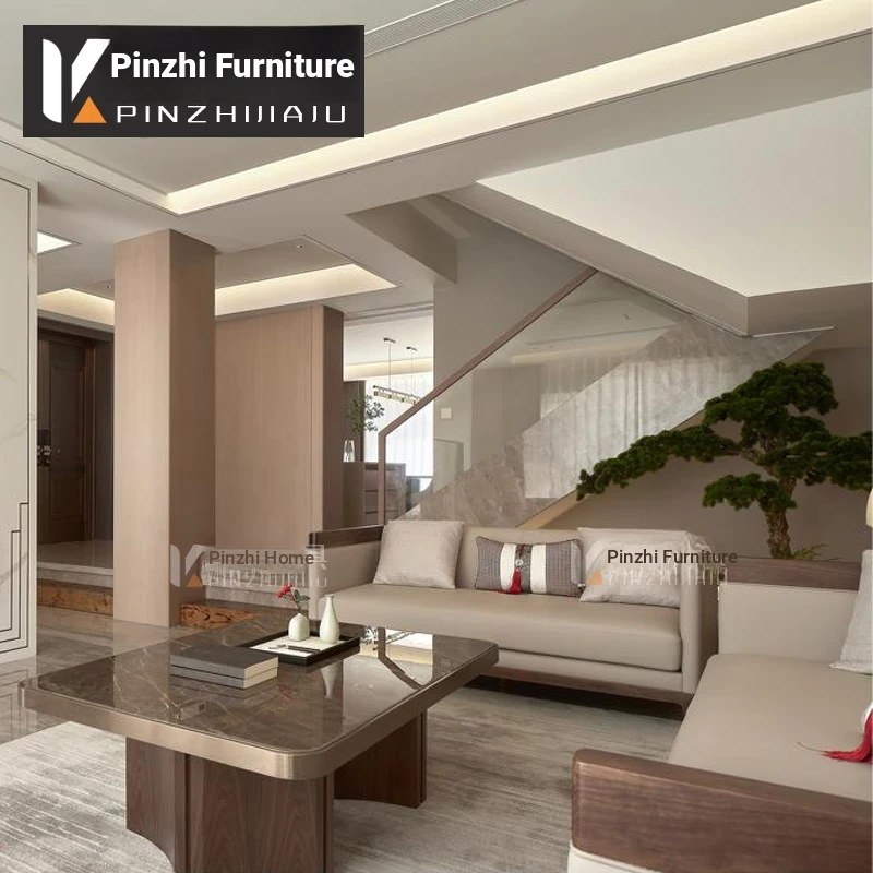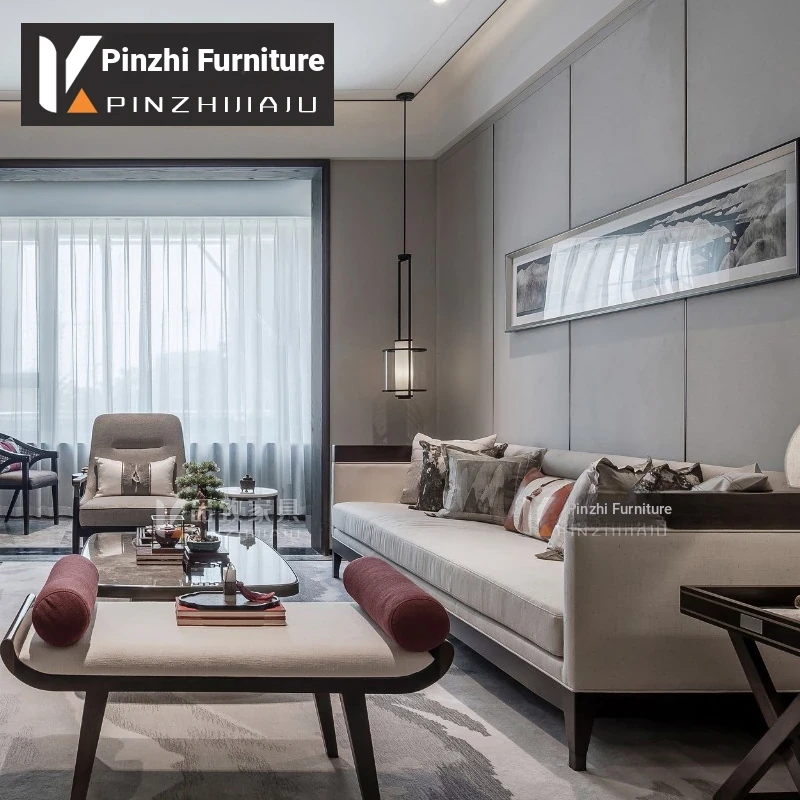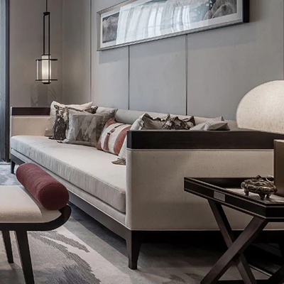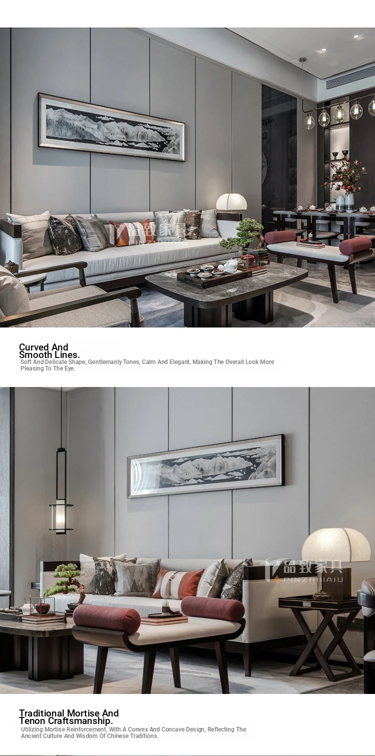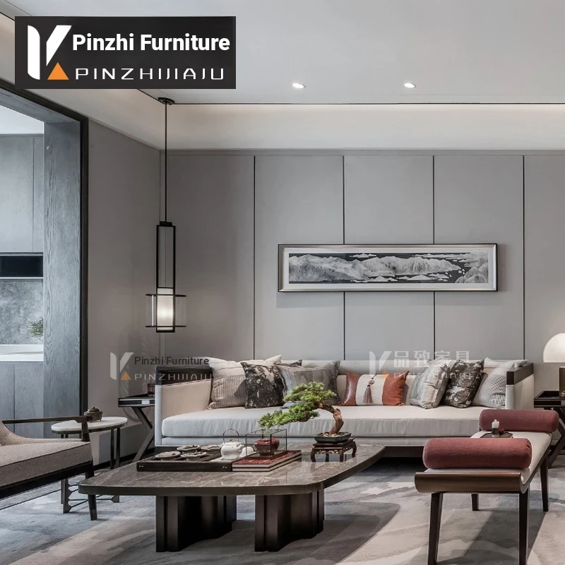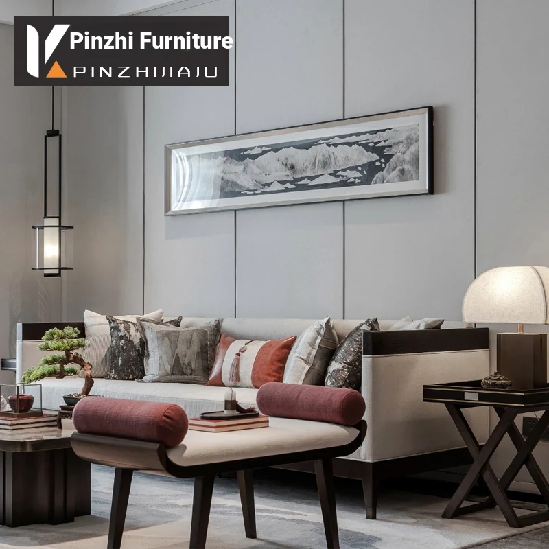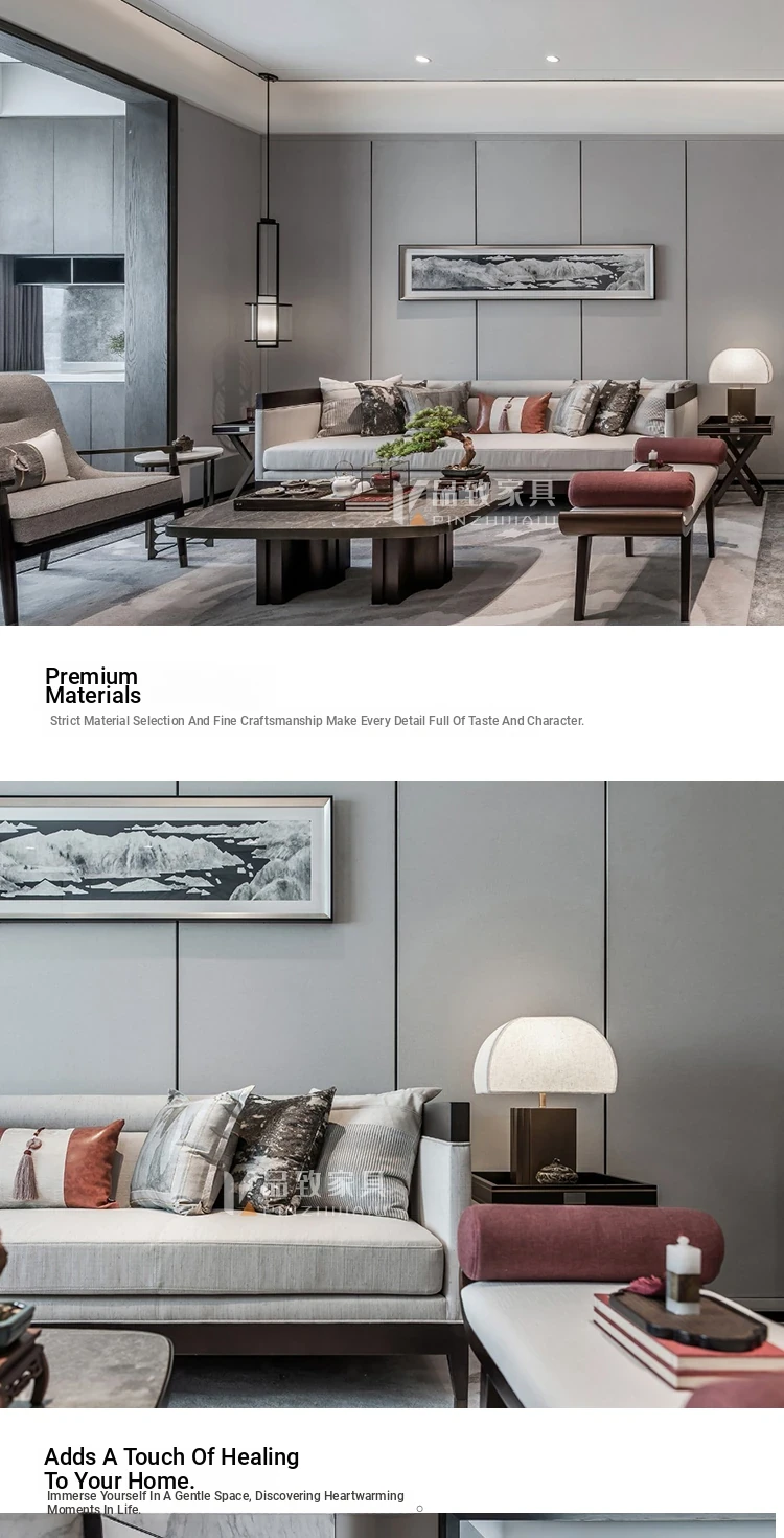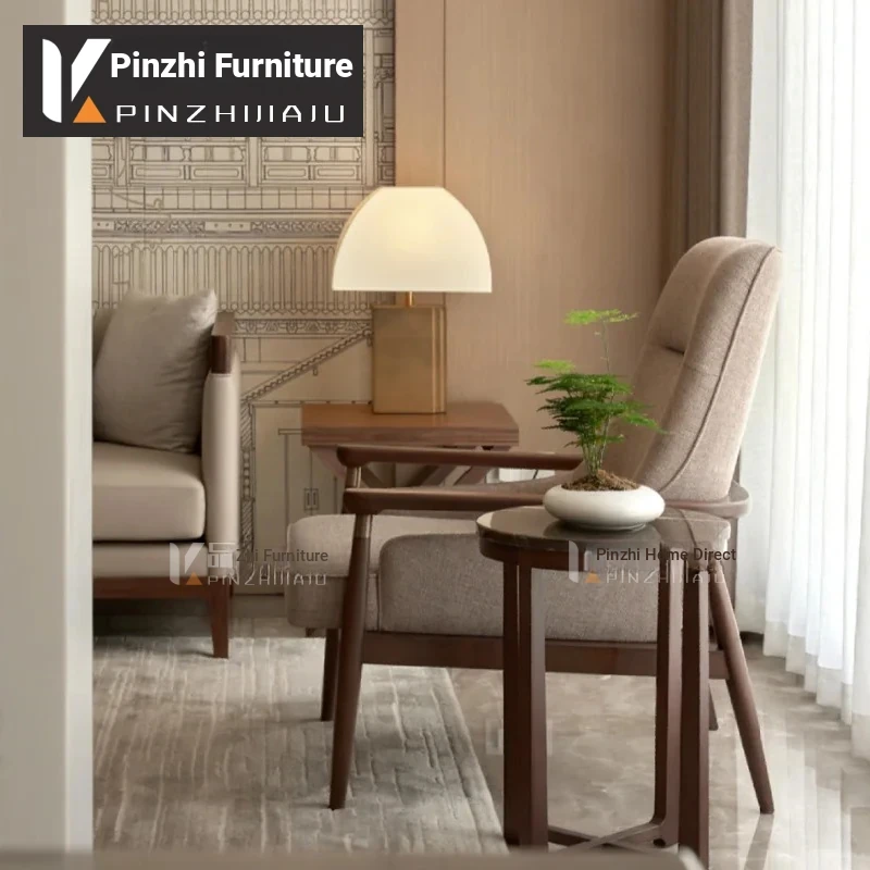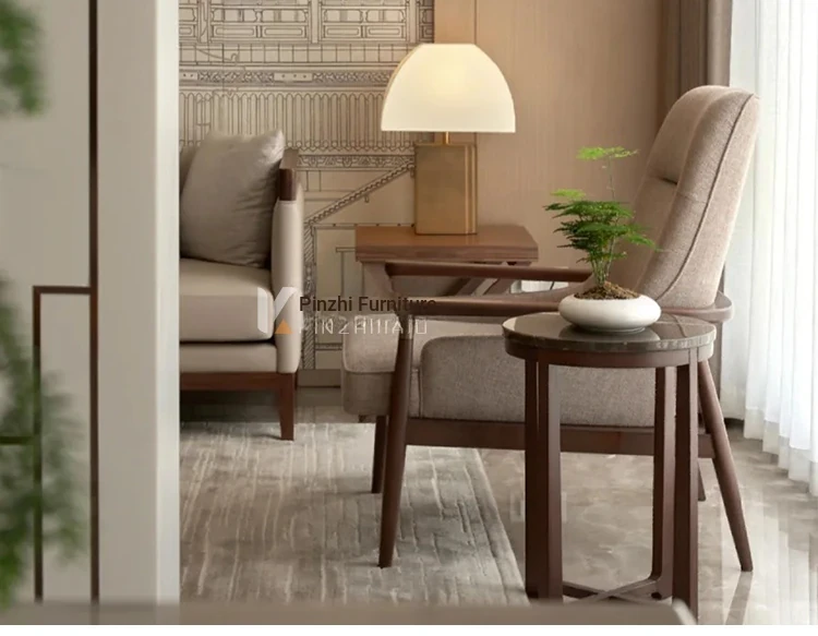 Elegant New Chinese Style Solid Wood Sofa - Minimalist Modern Design for Hotels, Clubs, Villas, and Living Rooms. Perfect for Showroom and Designer Spaces.