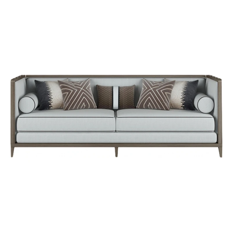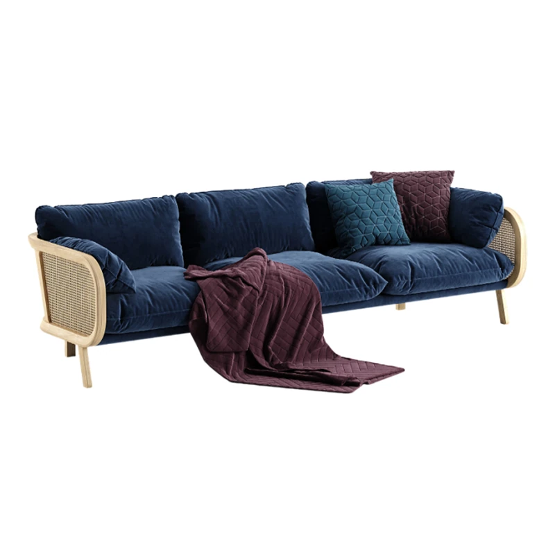 Elegant New Chinese Style Solid Wood Sofa - Nordic Rattan-Style Three-Seat Sofa for Showroom and Model Homes, Perfect for Cozy Spaces and Stylish Interiors!