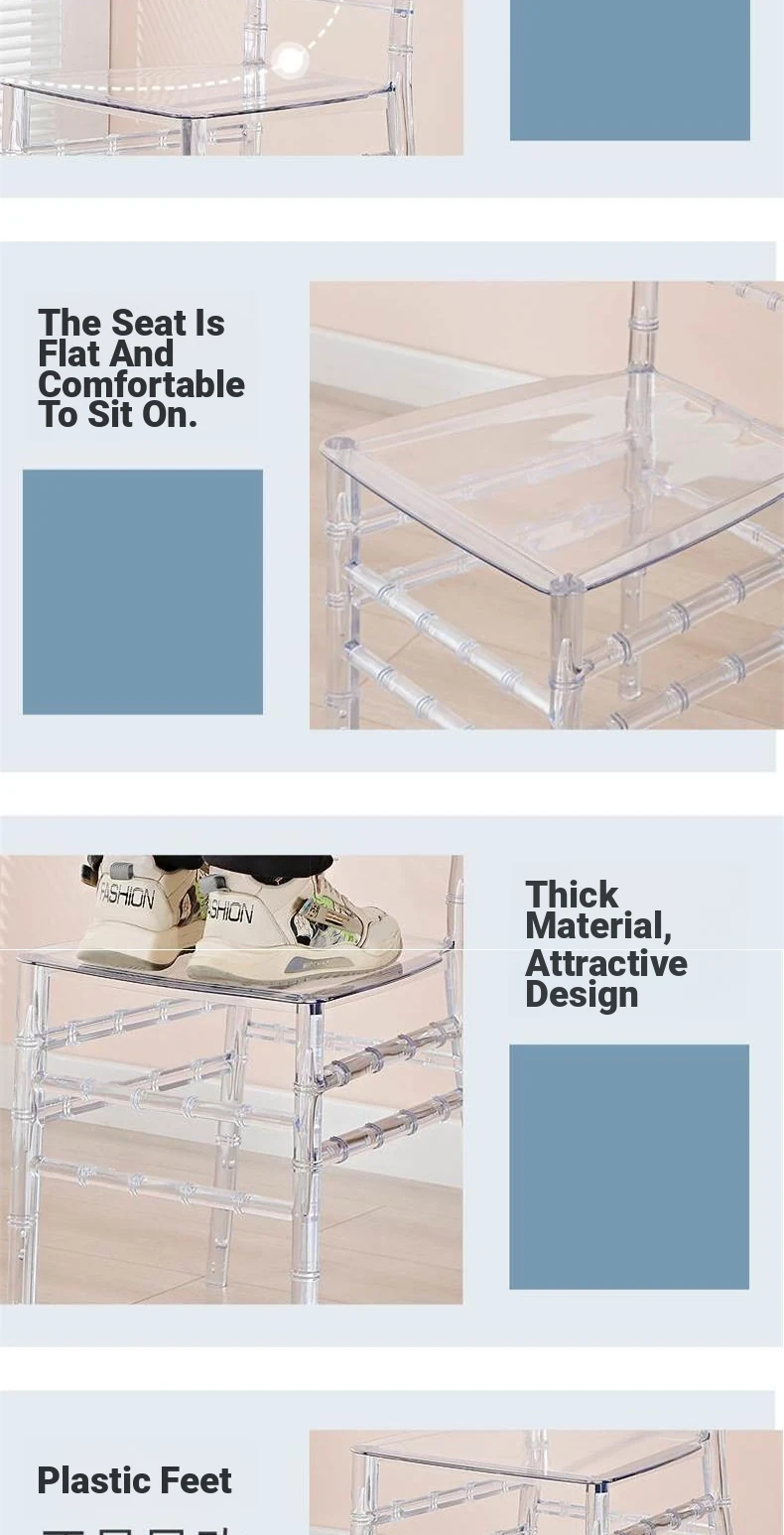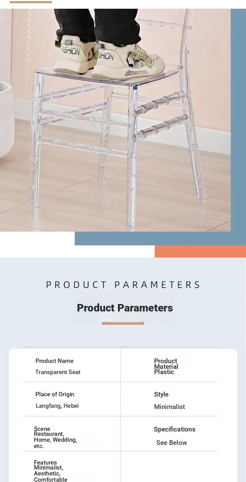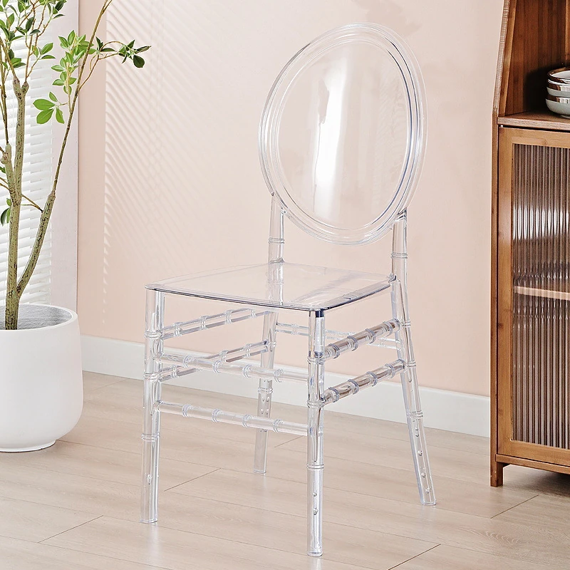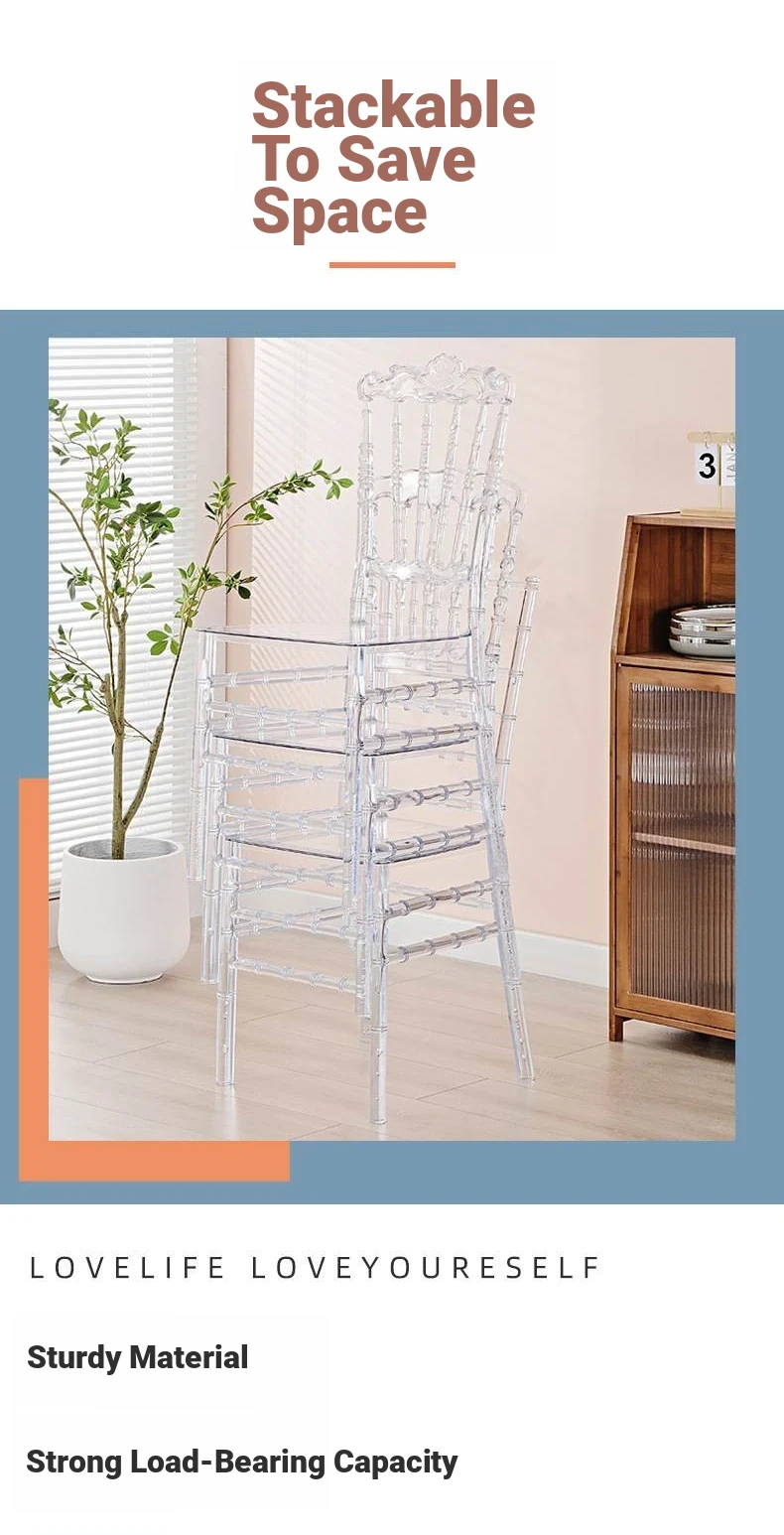 Factory Direct Supply Transparent PC Resin Acrylic Backrest Chair for Weddings - Trendy Crystal Design, Perfect for Outdoor Celebrations and Banquets, Bamboo-Style Elegance