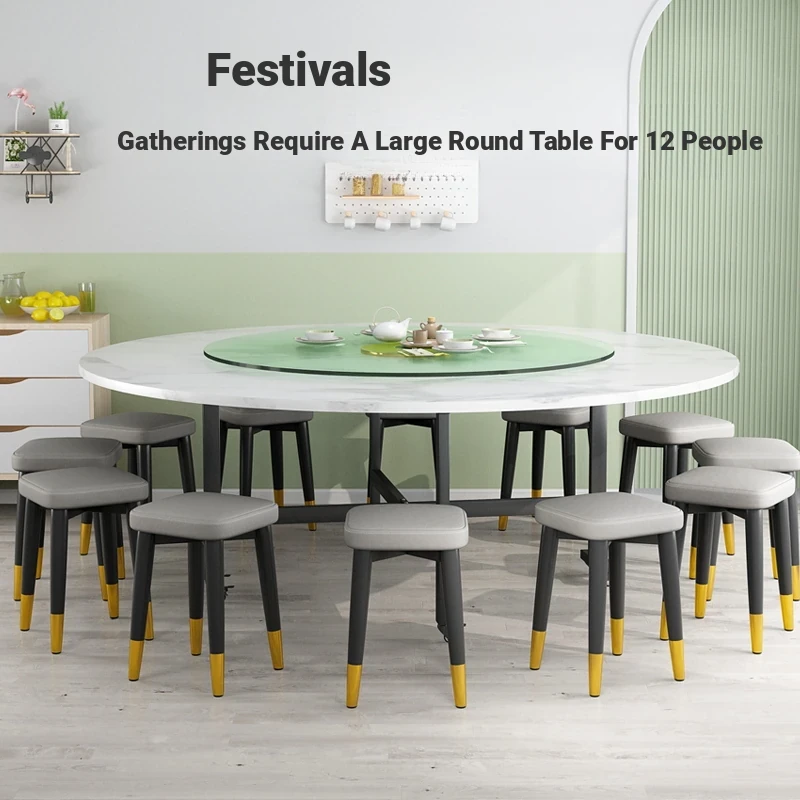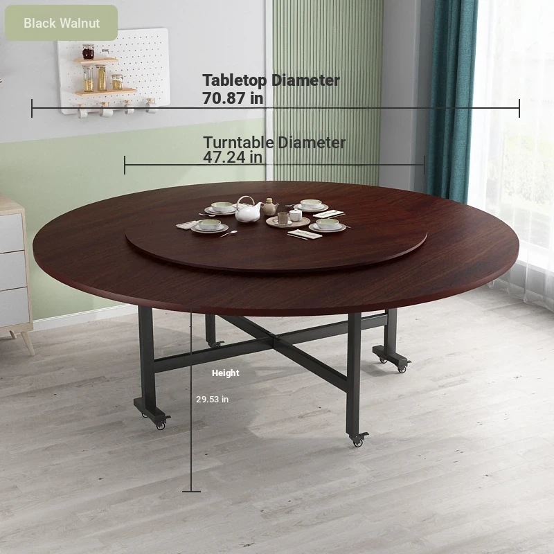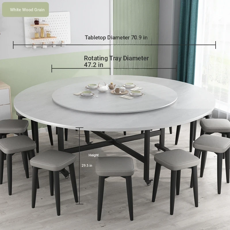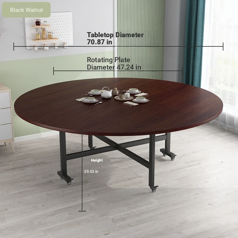 Foldable Round Dining Table with Lazy Susan - Space-Saving Design for Small Homes, Perfect for Family Gatherings of Up to 12 People