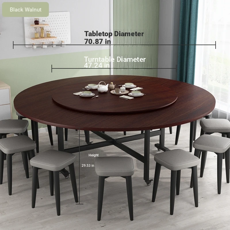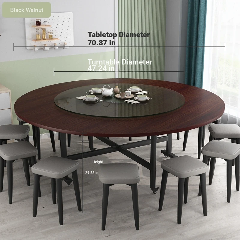 70.87 in Black Walnut +47.24 in tempered glass turntable +12 square stool