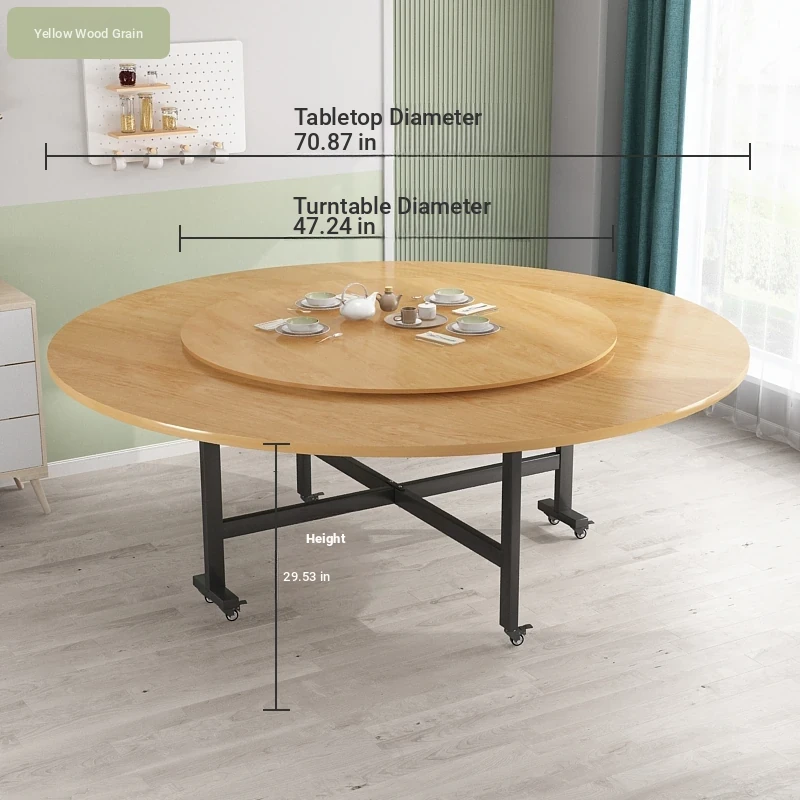 70.87 in yellow wood grain +47.24 in tempered glass turntable