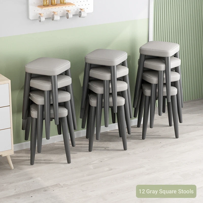 12 square stool-Gray technology cloth stool surface-All Black legs
