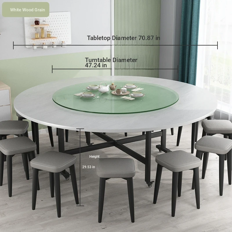 70.87 in white wood grain +47.24 in tempered glass turntable +12 square stool (