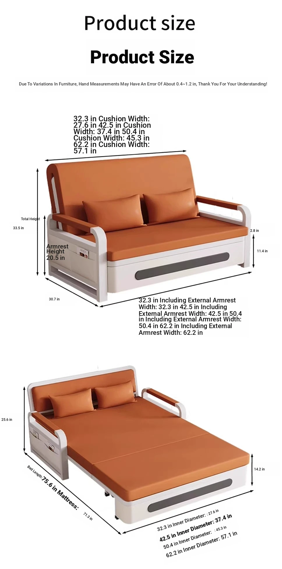 [62.20 in storage] 1.97in sponge +0.79in latex (cat scratch skin + Orange)