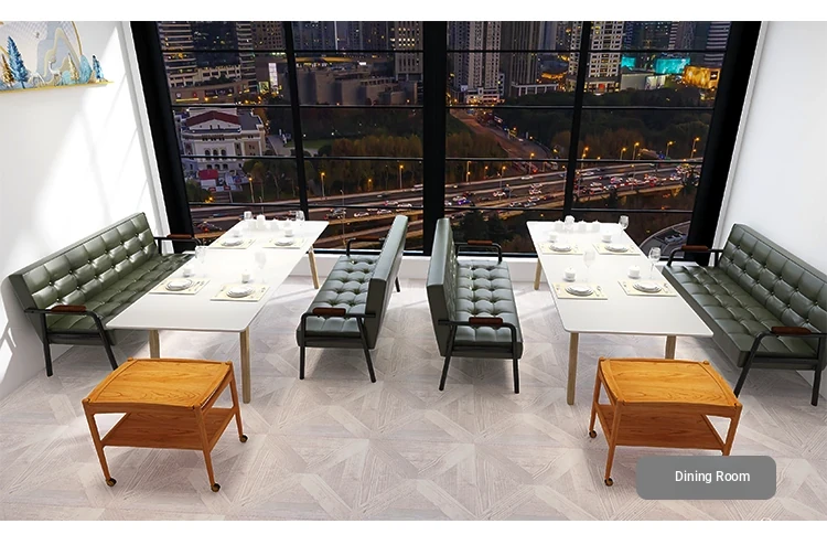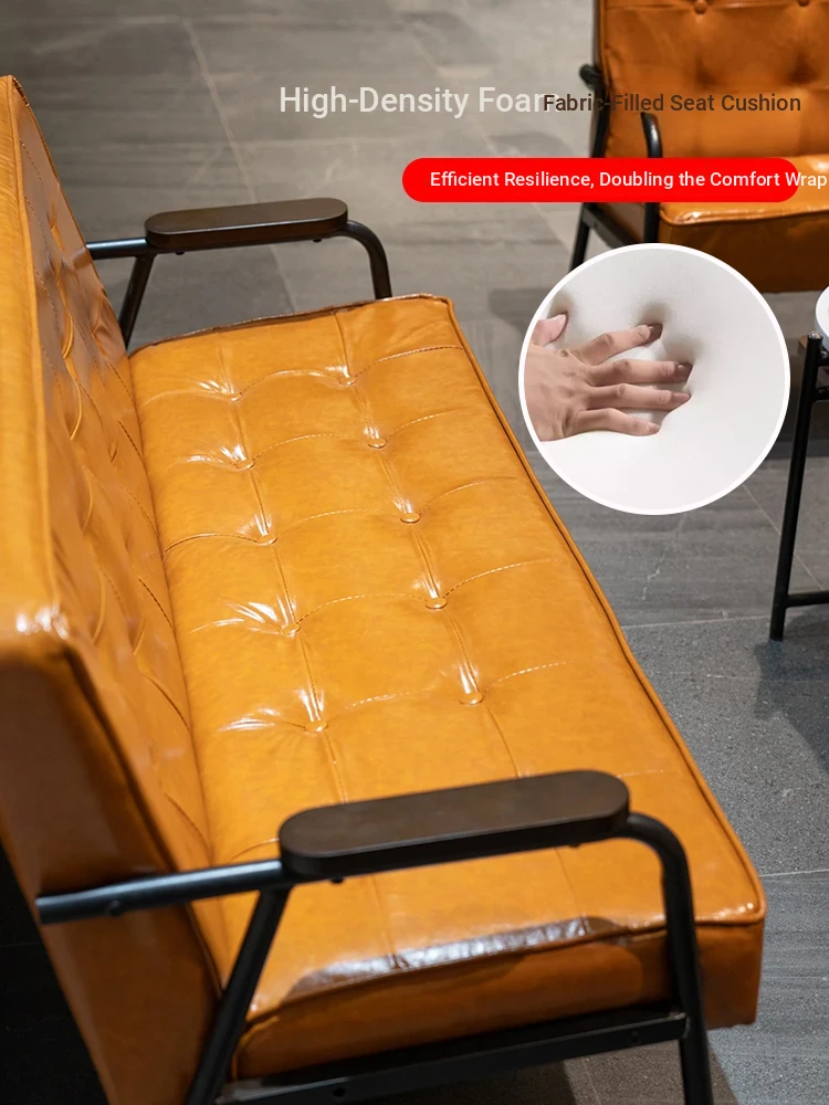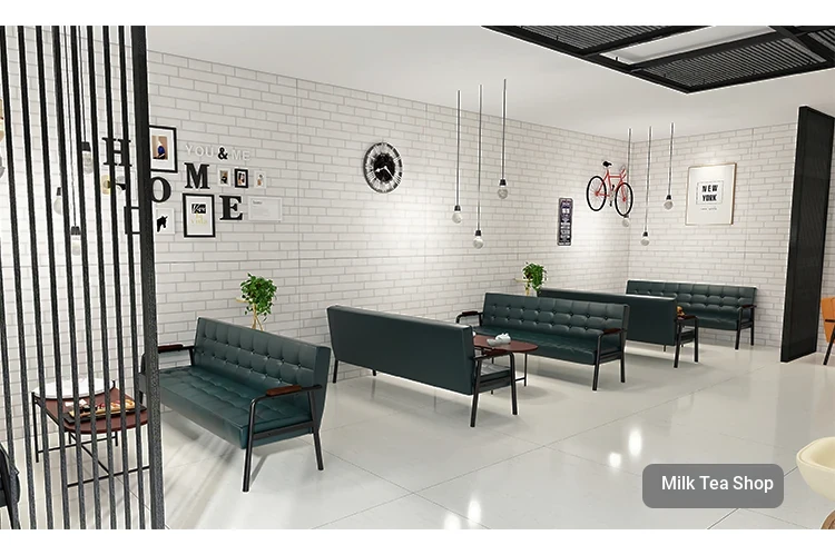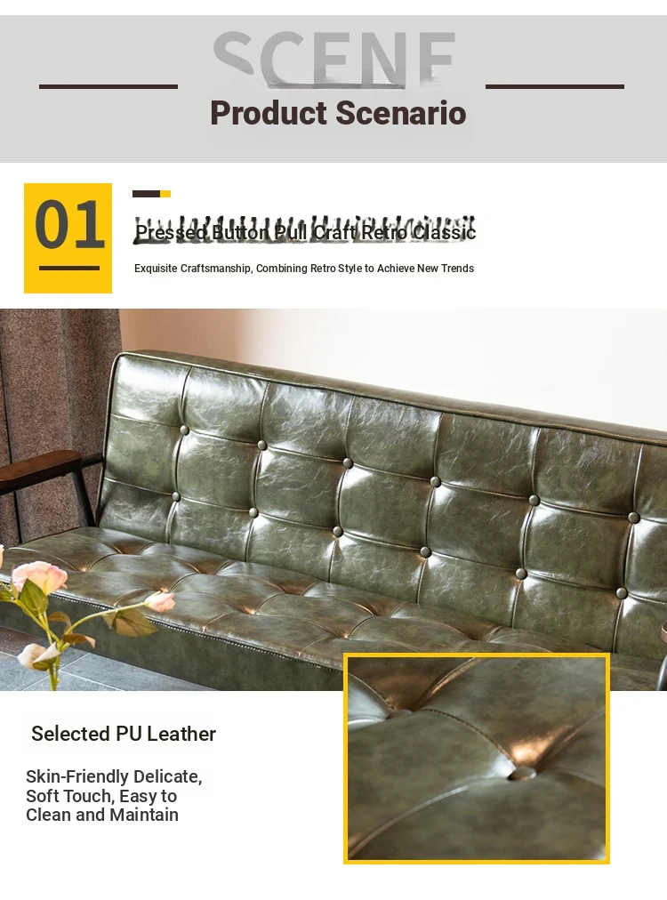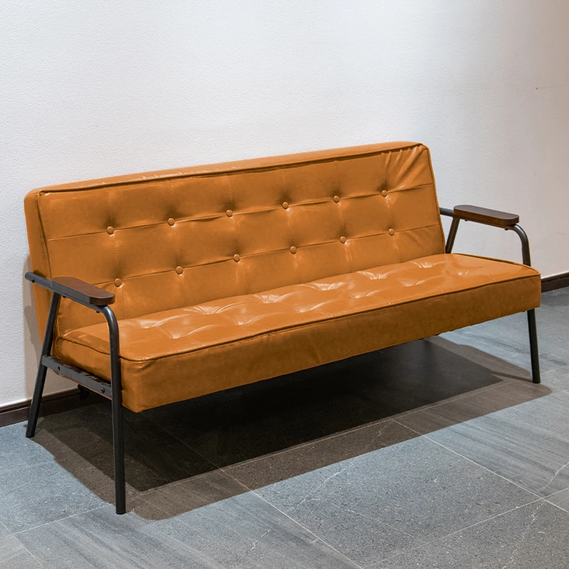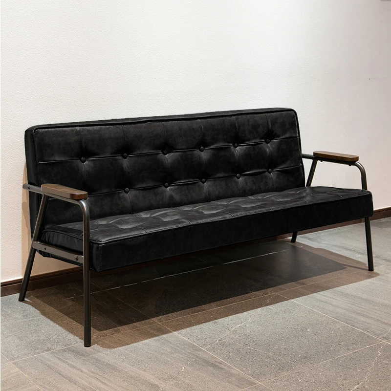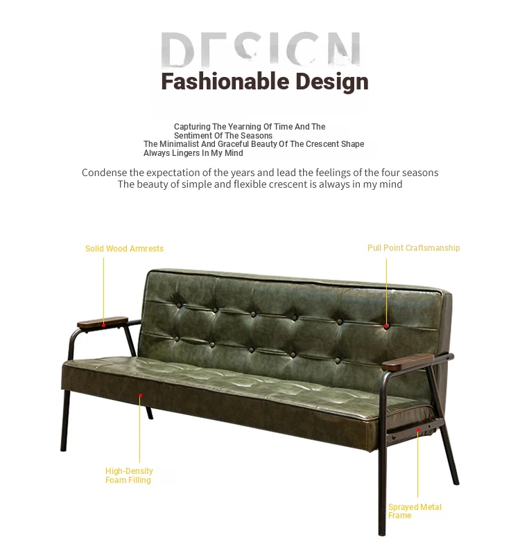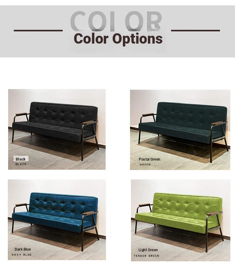 Industrial-Style Green Leather Sofa with Iron Frame - Perfect for Clothing Stores, Cafés, Photography Studios, Guesthouses, and Pubs