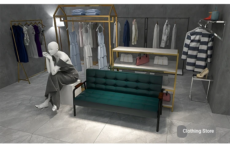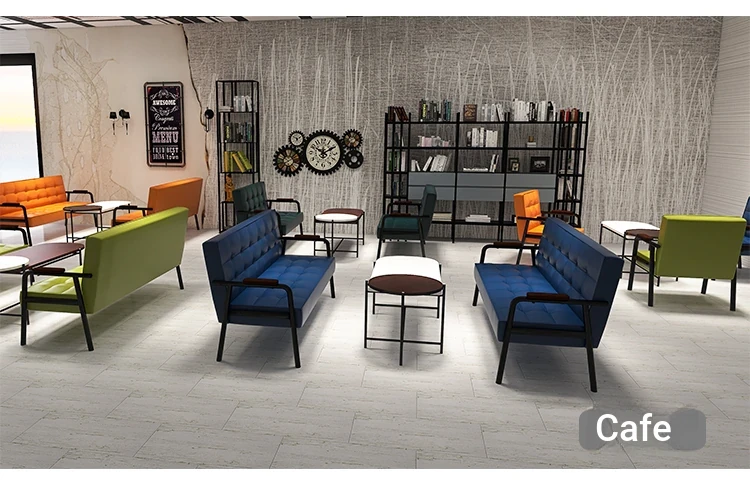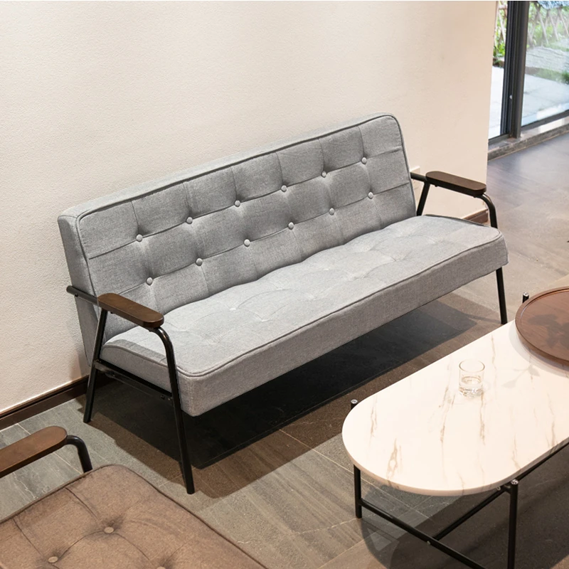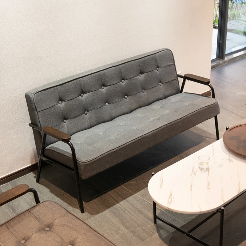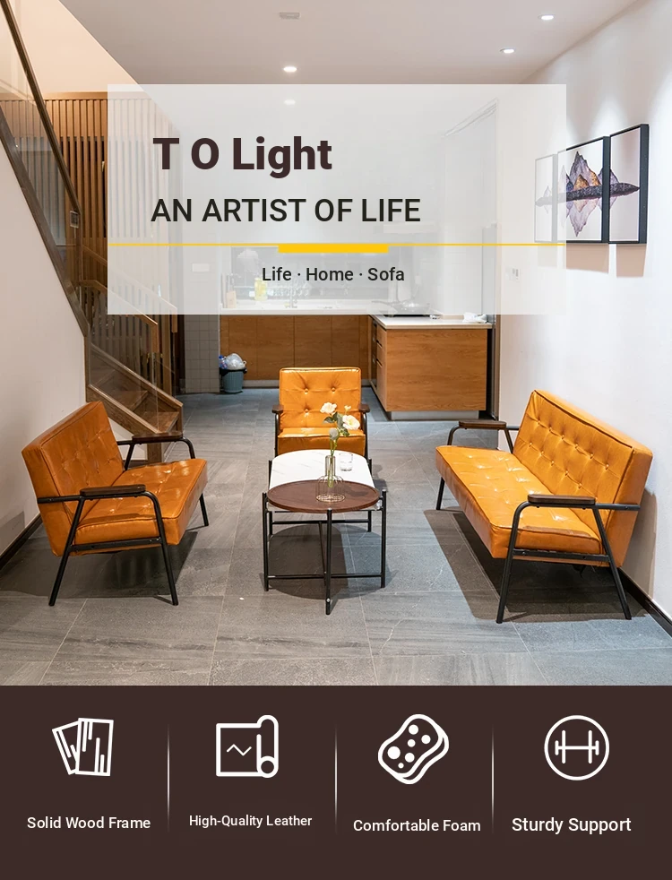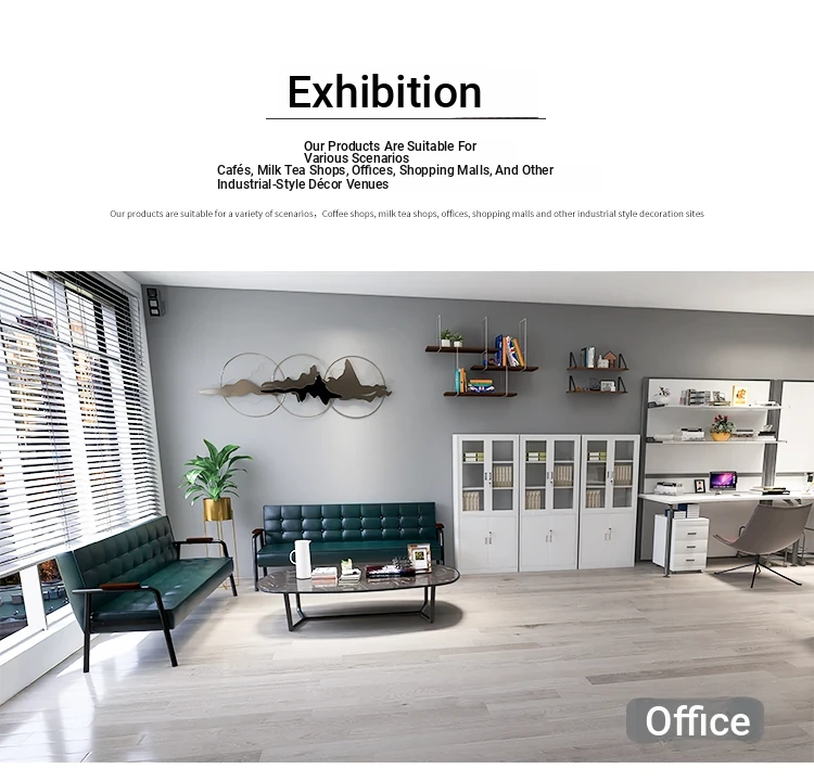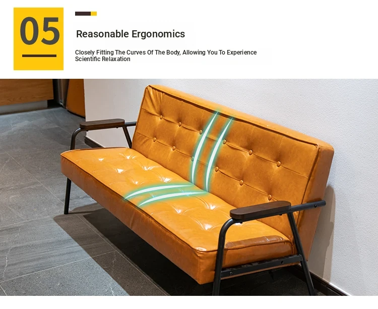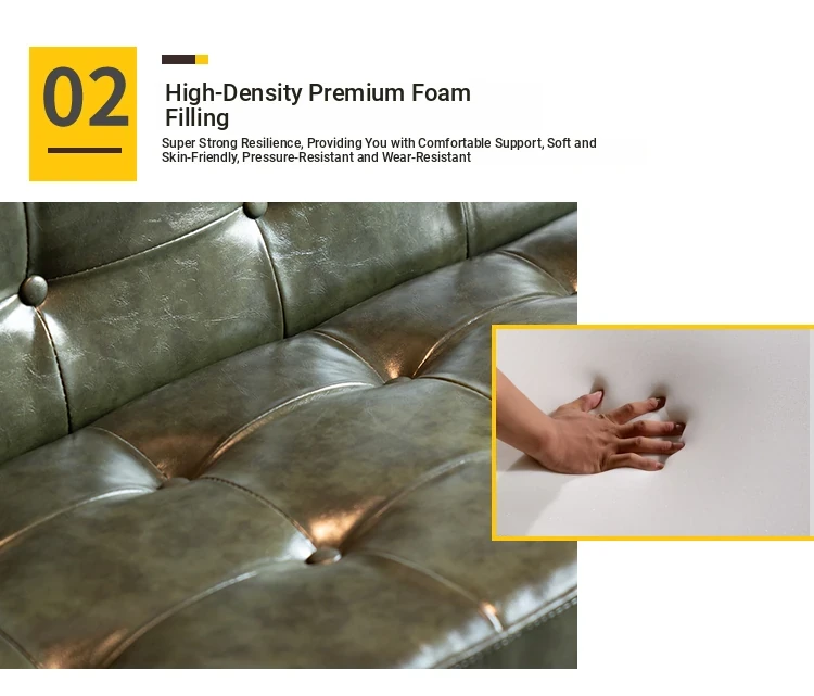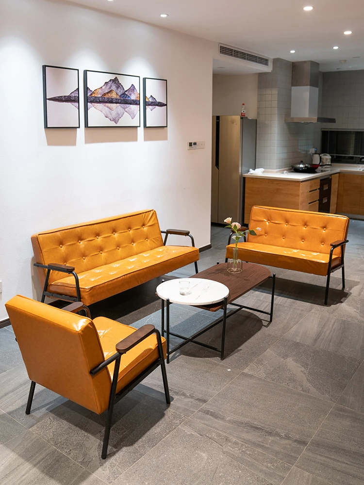 Industrial-Style Green Leather Sofa with Iron Frame - Perfect for Clothing Stores, Cafés, Photography Studios, Guesthouses, and Pubs