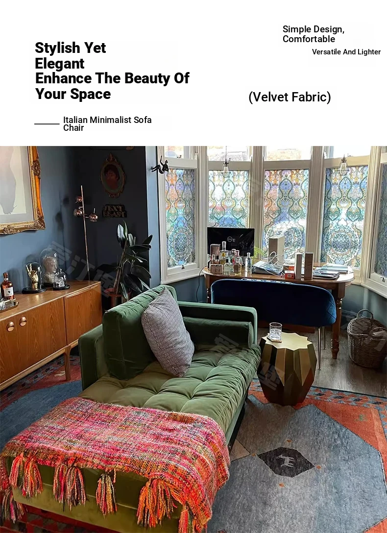 Italian Minimalist Chaise Lounge Sofa - Elegant Designer Daybed with Luxurious Fabric for Master Bedroom - Perfect for Relaxation and Stylish Décor