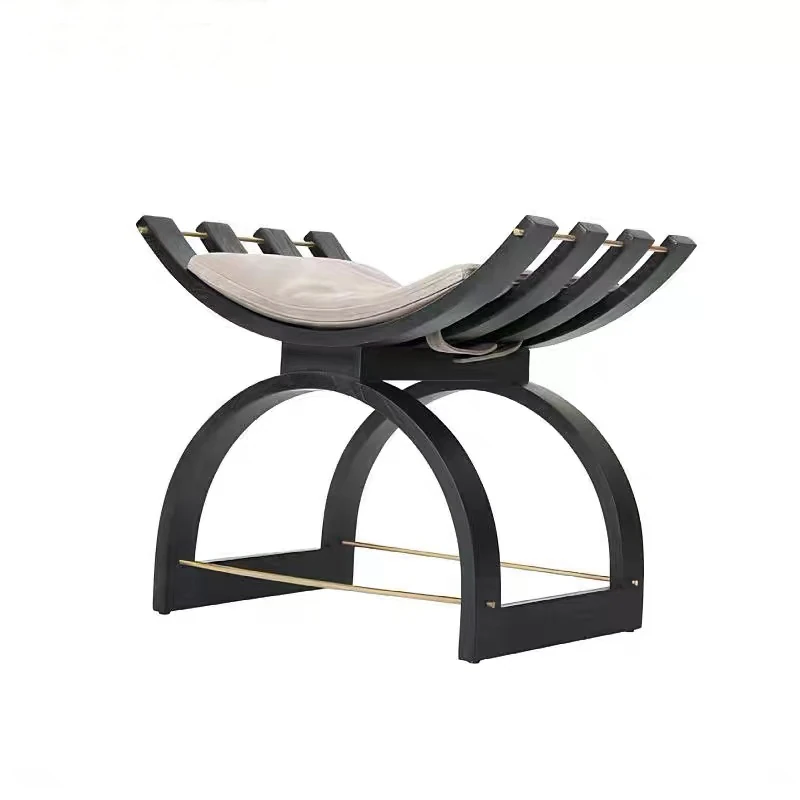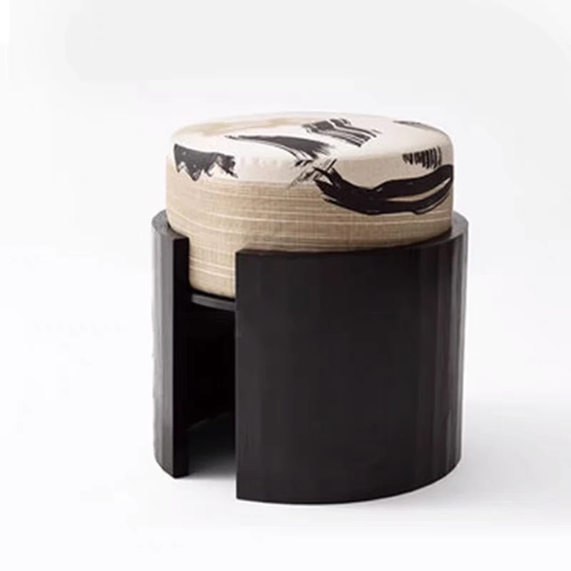 Italian Minimalist Modern Solid Wood Vanity Stool - Perfect for Sample Rooms, Tea Houses, and New Chinese Style Decor. Ideal as a Low Stool for Hotels, Guesthouses, and Shoe Changing Areas.