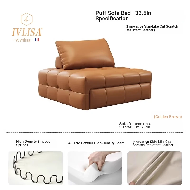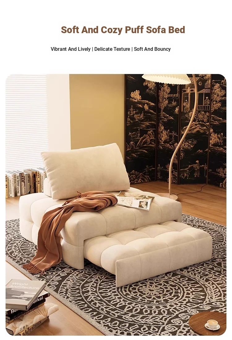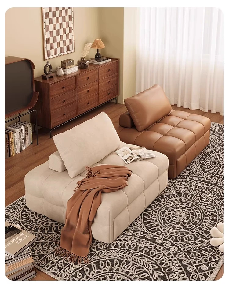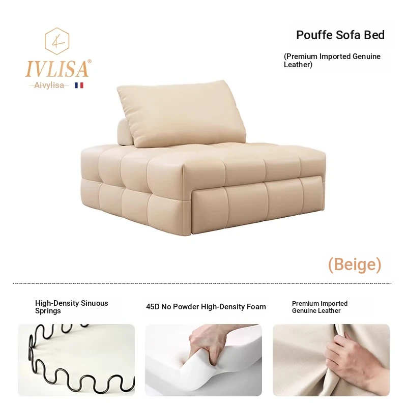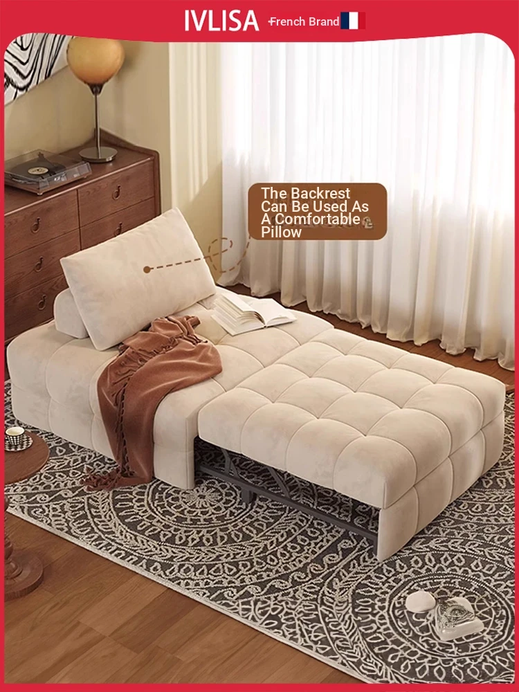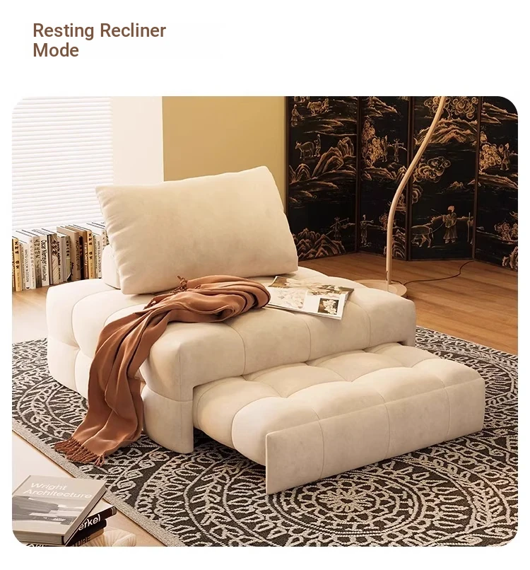 IVLISA French Luxury Lazy Sofa Bed - Versatile Lambswool & Genuine Leather Armchair, Perfect for Relaxation and Style