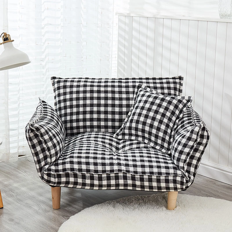 Single wooden leg/black and white lattice/cotton/(Bread Chair)