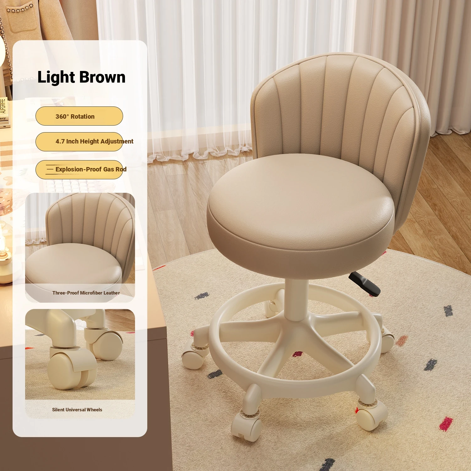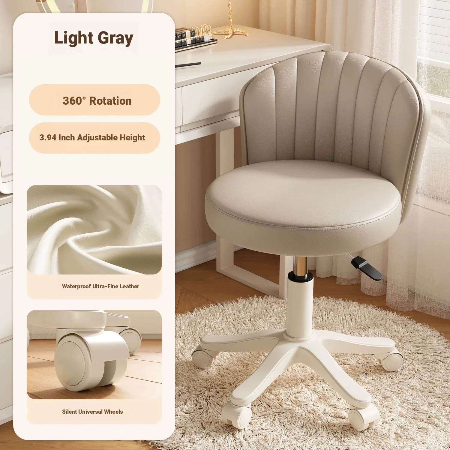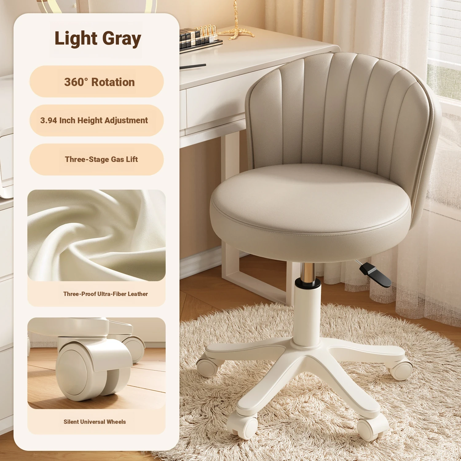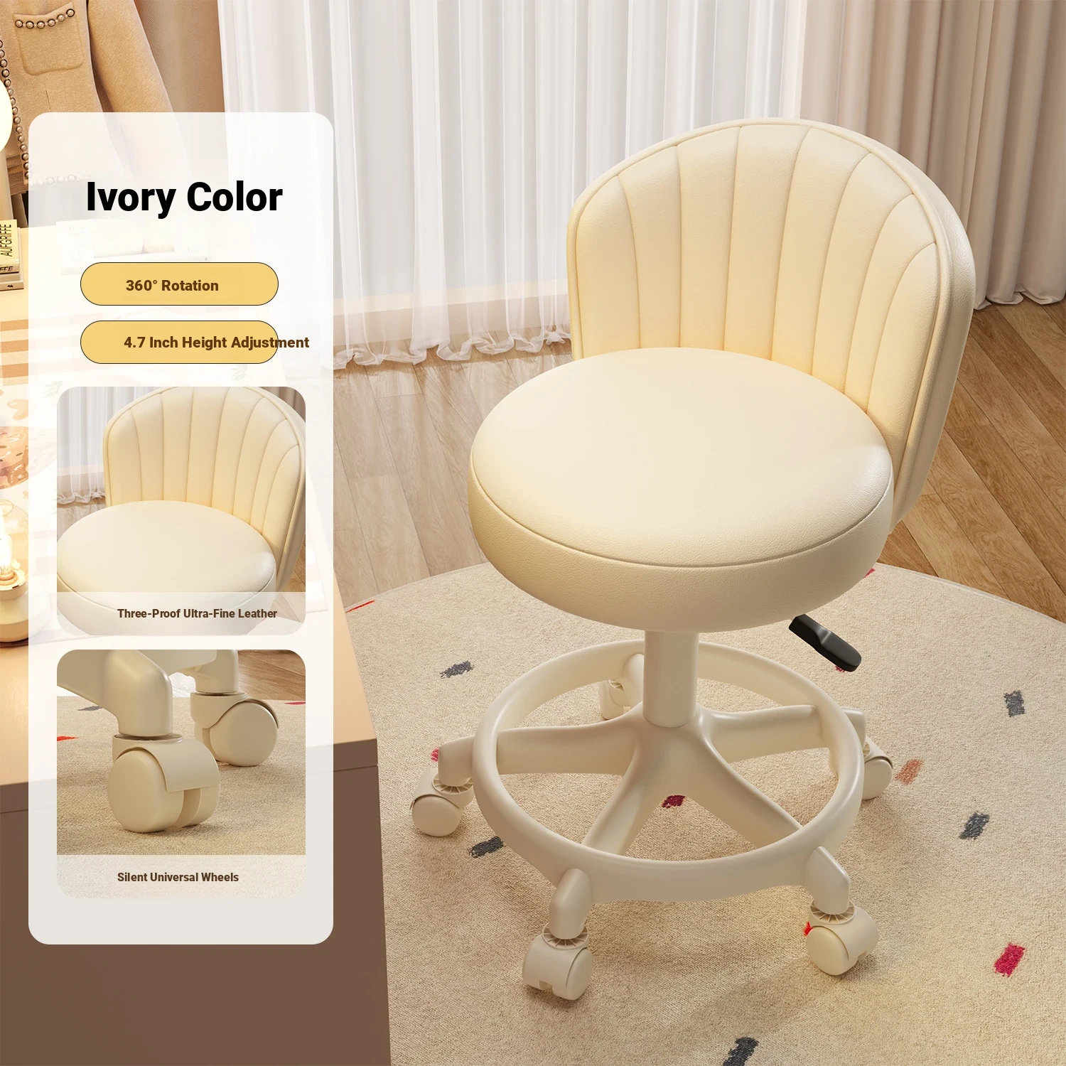 Japanese Makeup Chair - Adjustable Height Vanity Stool with Swivel Backrest and Wheels for Bedroom Makeup Sessions