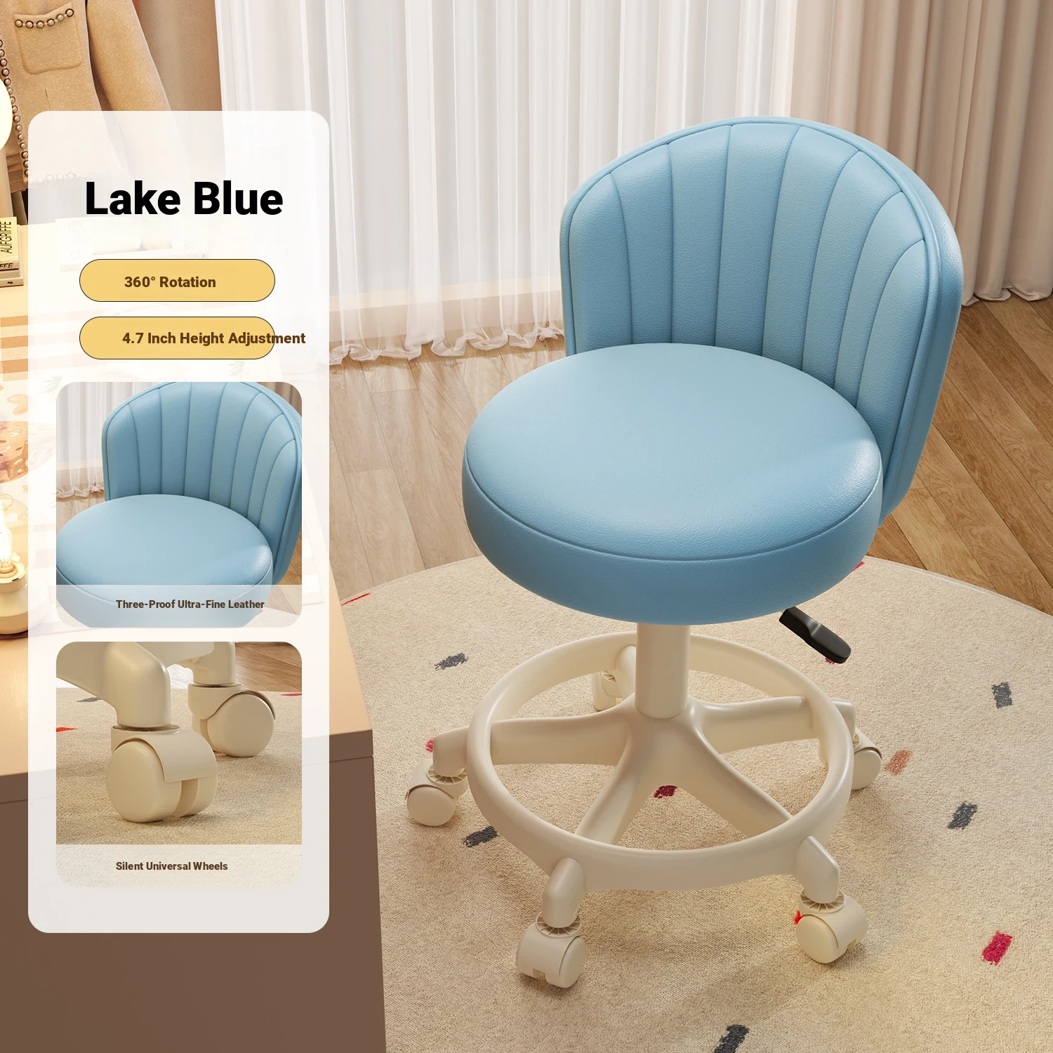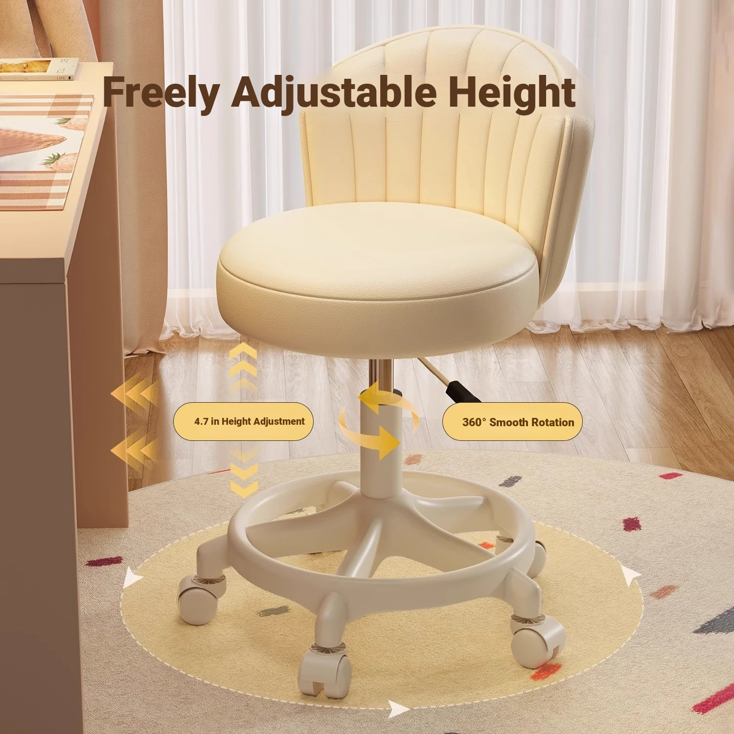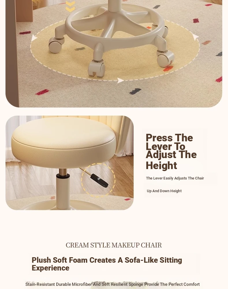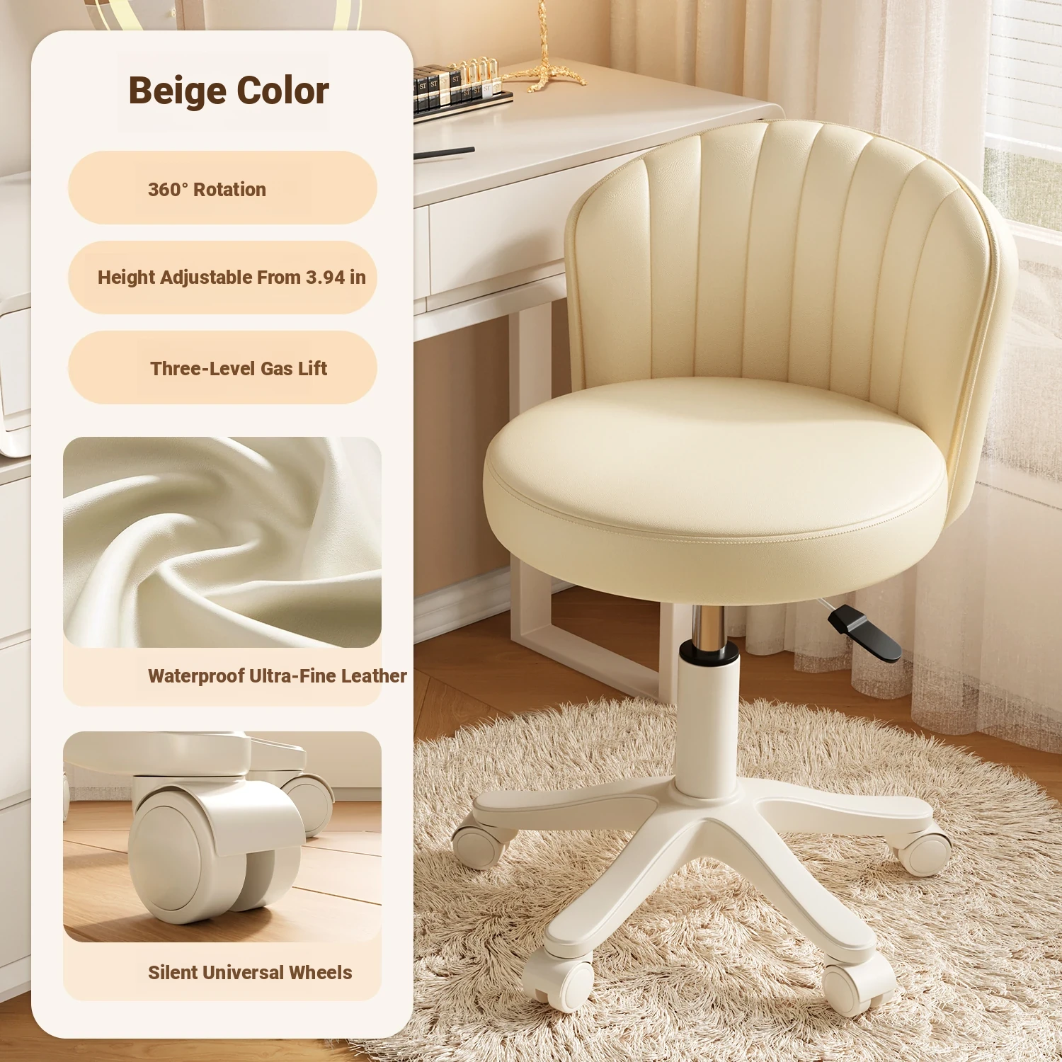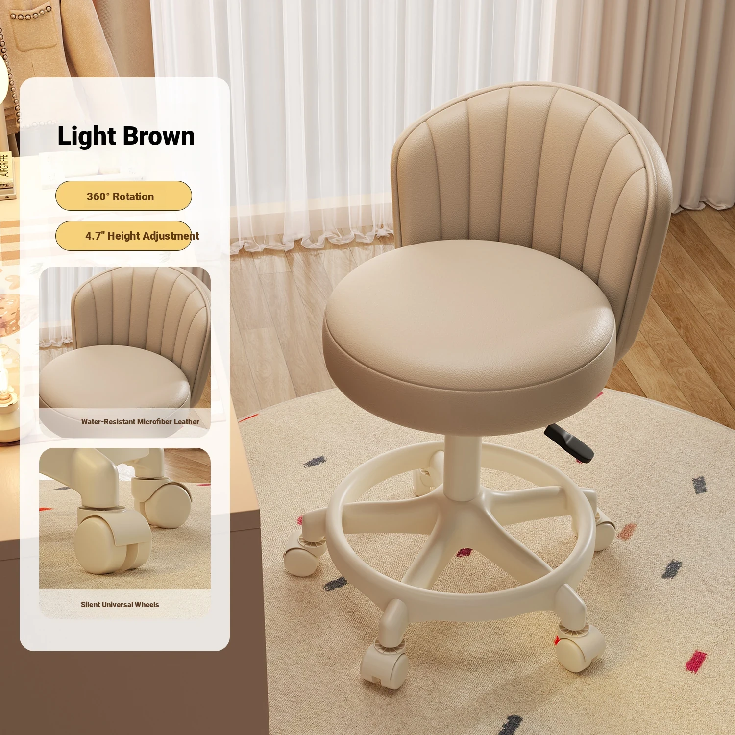 Japanese Makeup Chair - Adjustable Height Vanity Stool with Swivel Backrest and Wheels for Bedroom Makeup Sessions