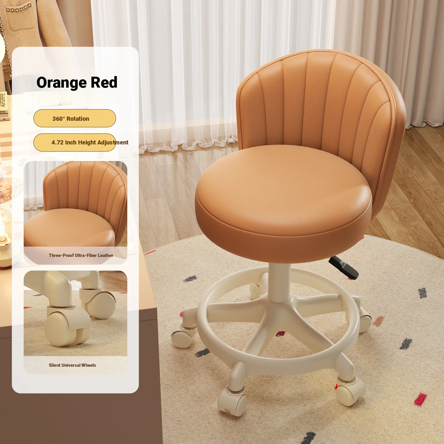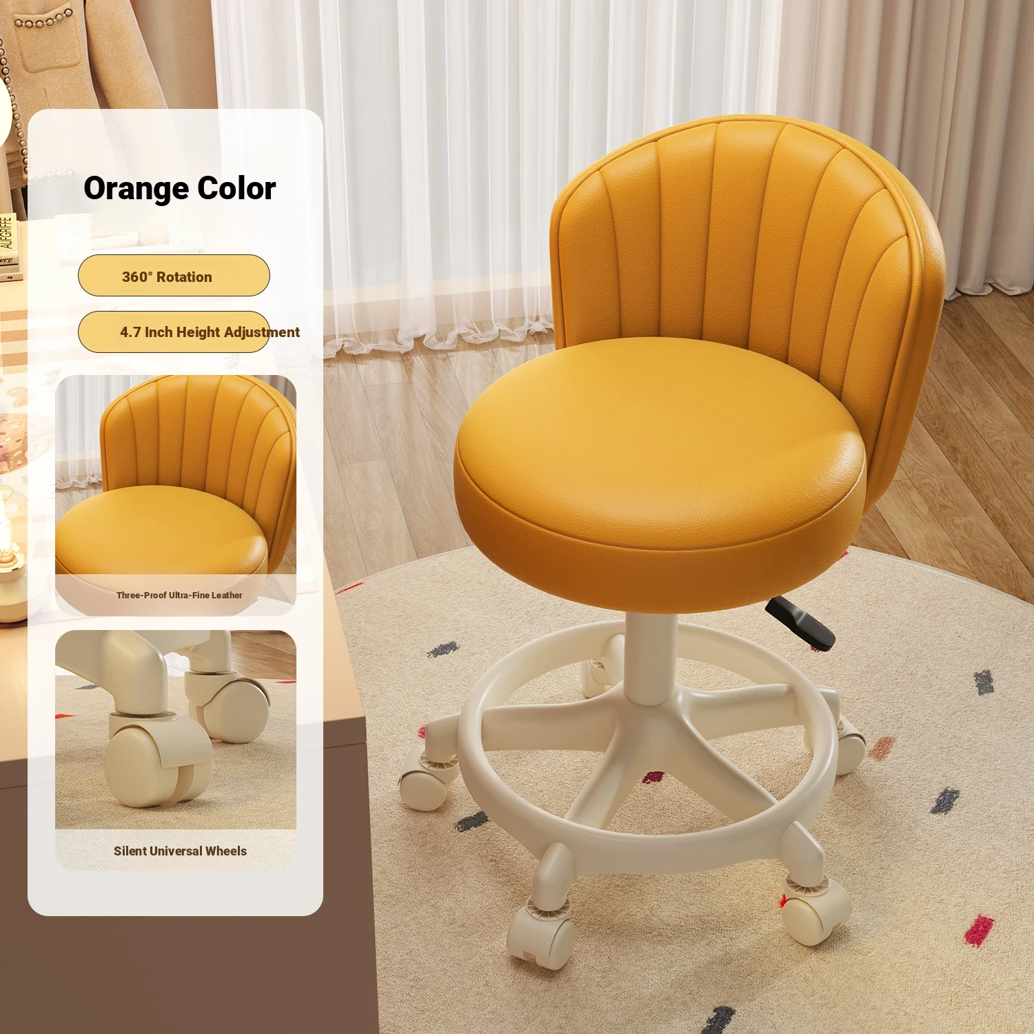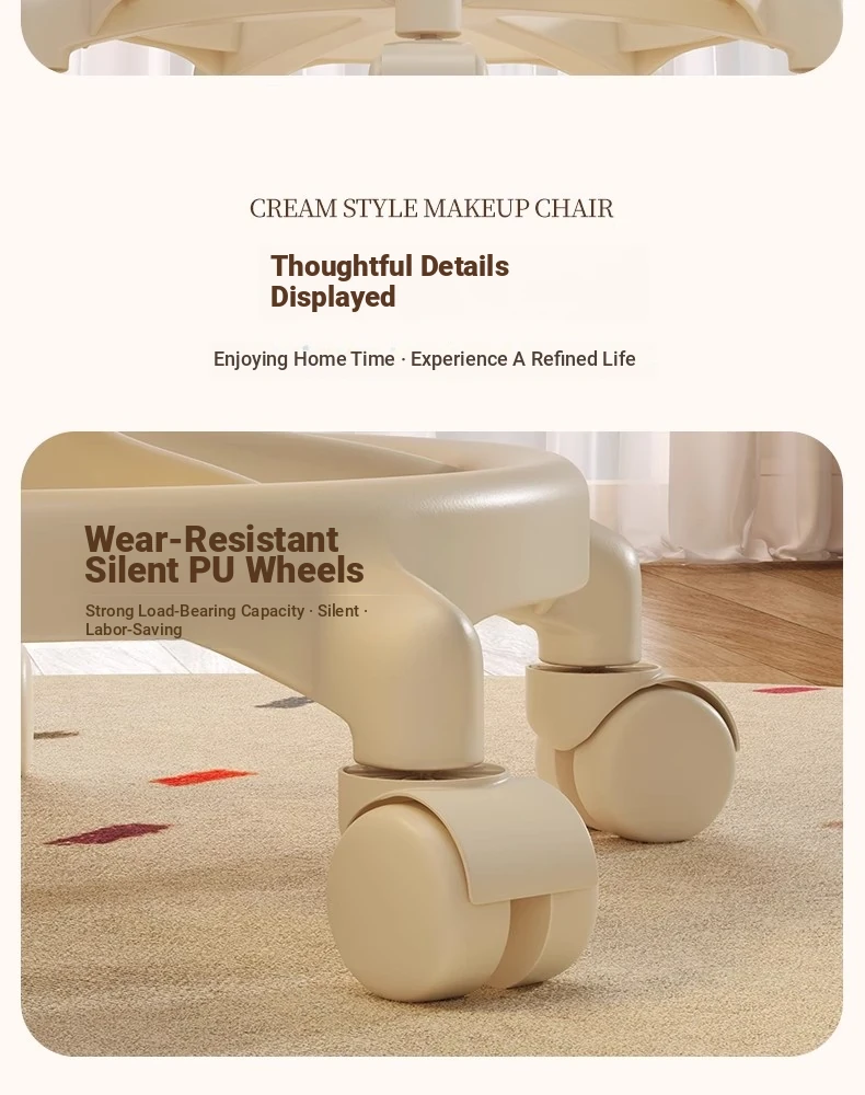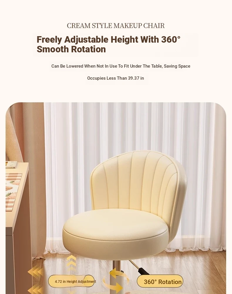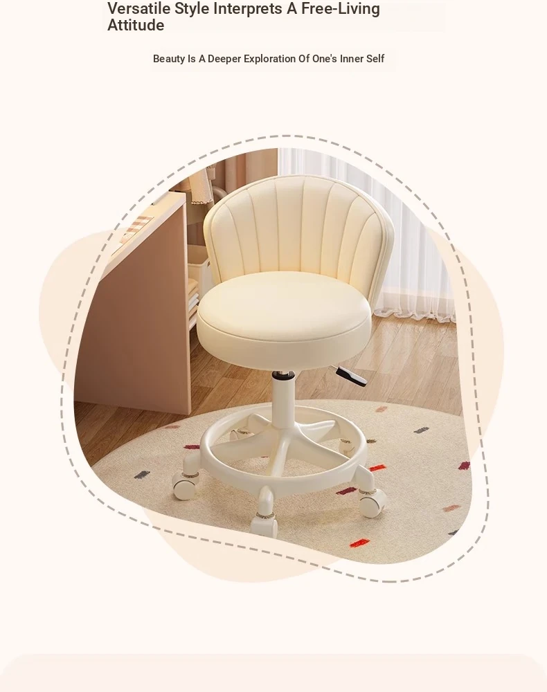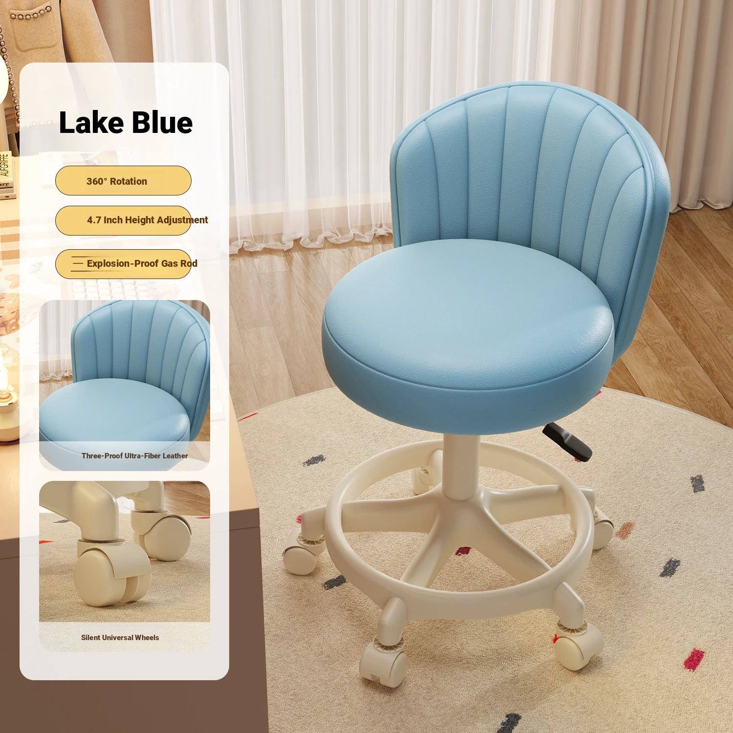Japanese Makeup Chair - Adjustable Height Vanity Stool with Swivel Backrest and Wheels for Bedroom Makeup Sessions
