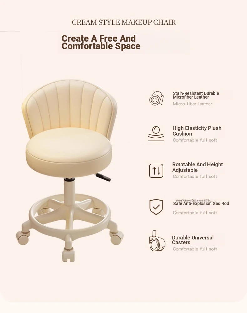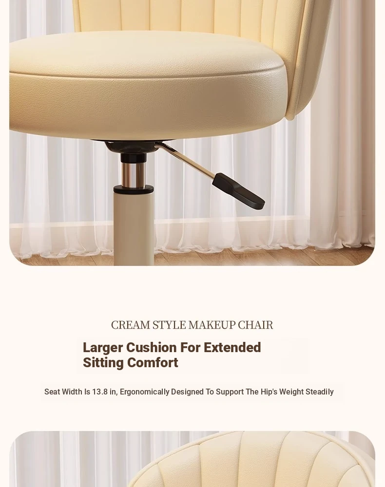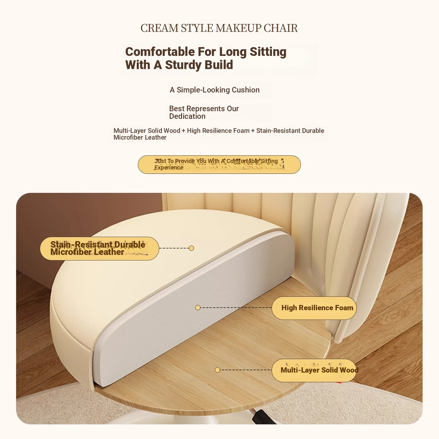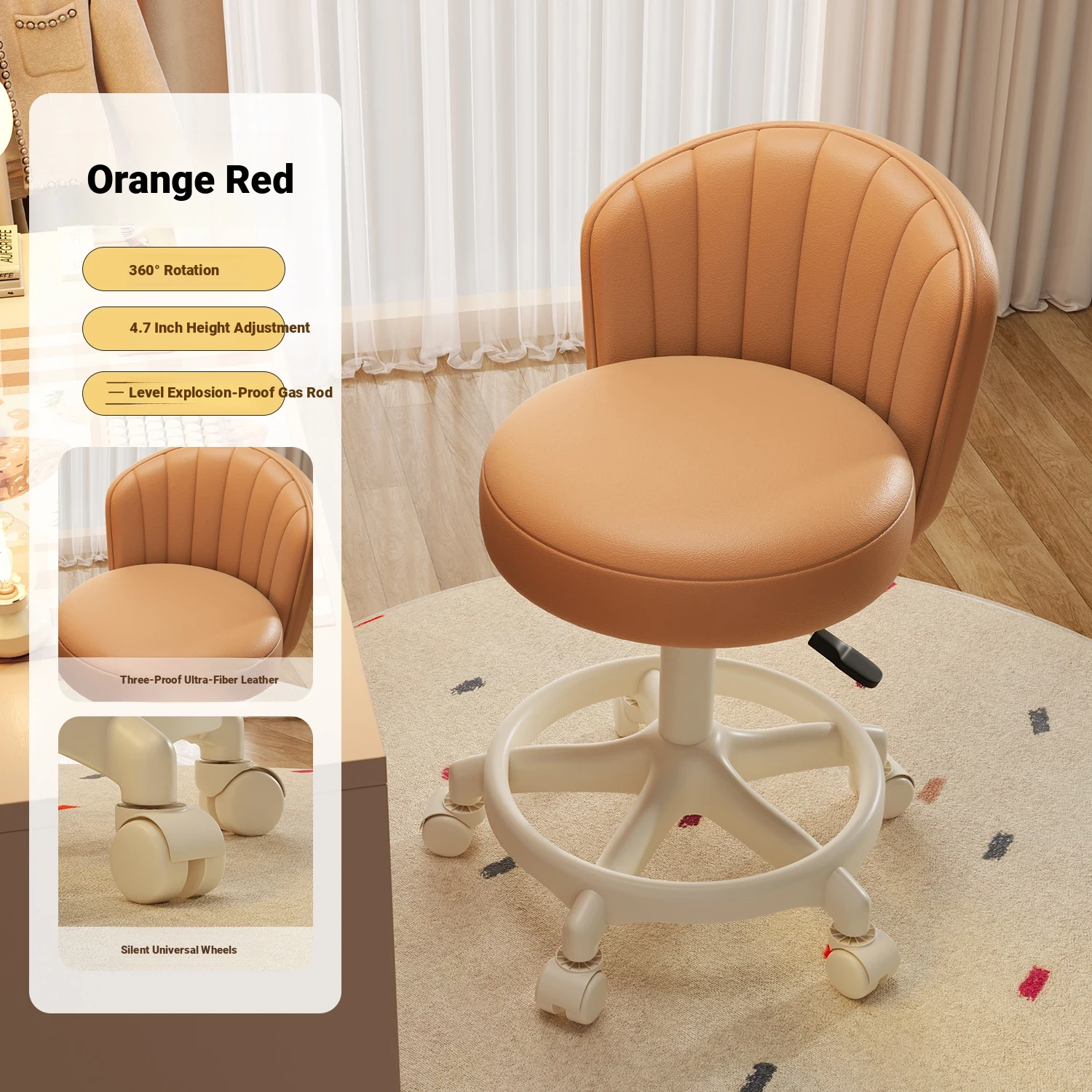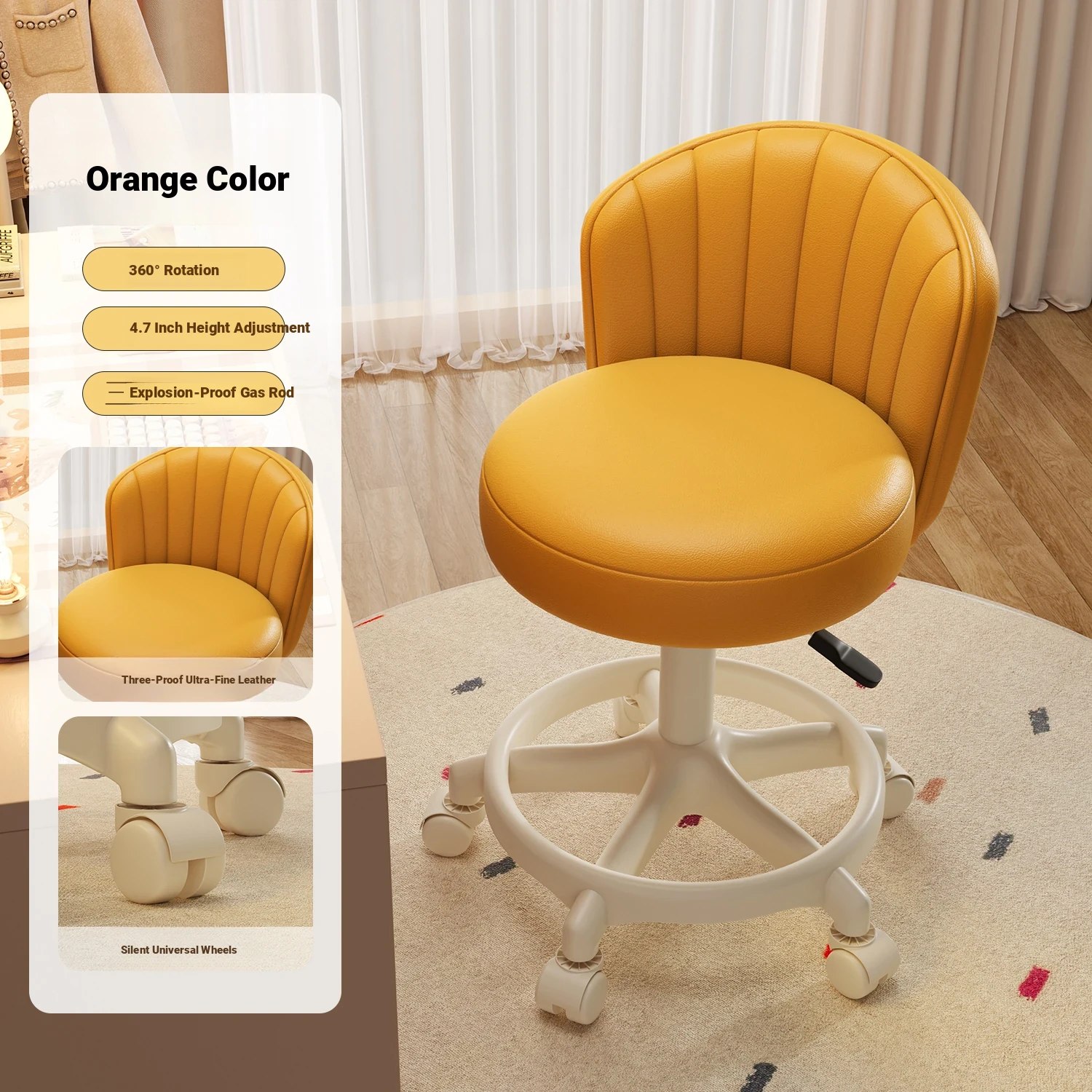 Japanese Makeup Chair - Adjustable Height Vanity Stool with Swivel Backrest and Wheels for Bedroom Makeup Sessions