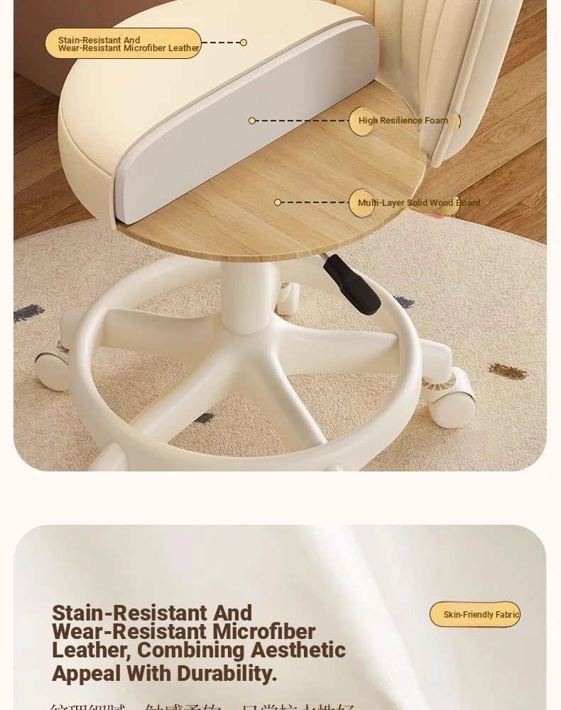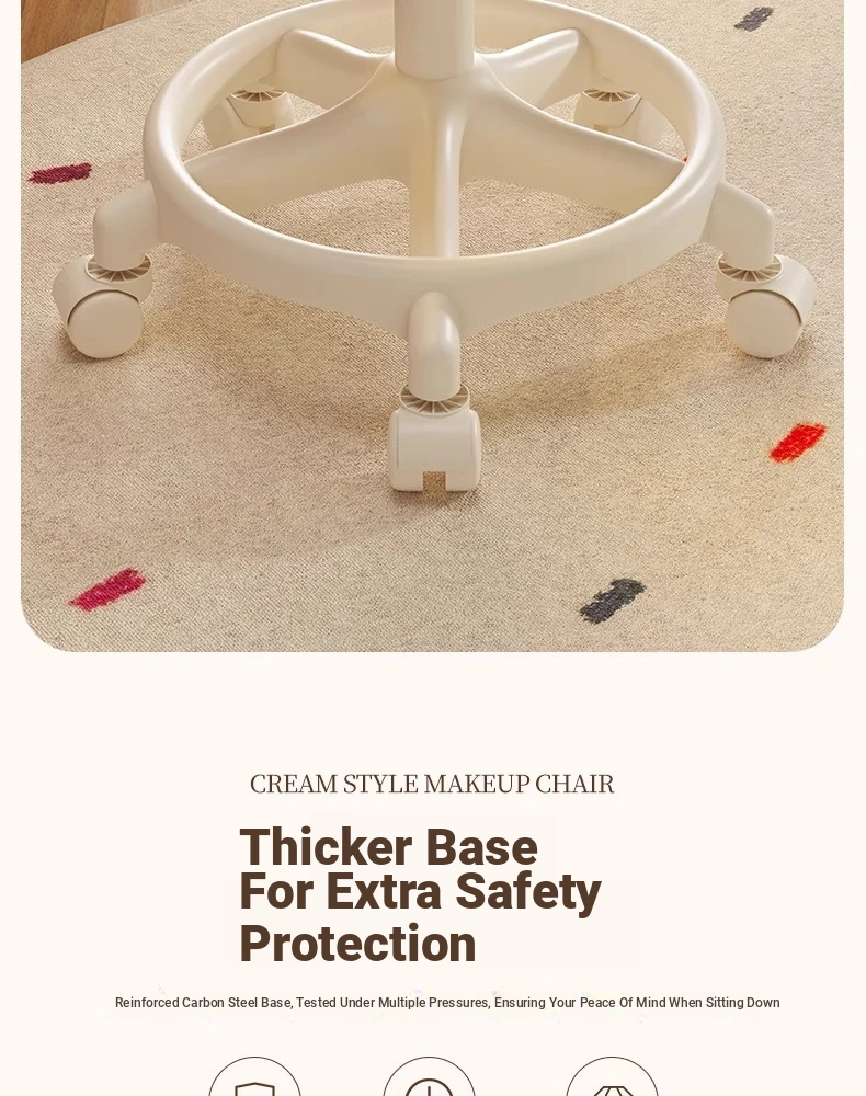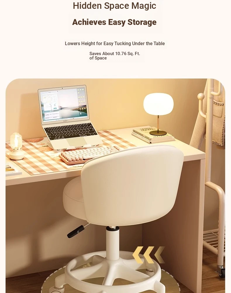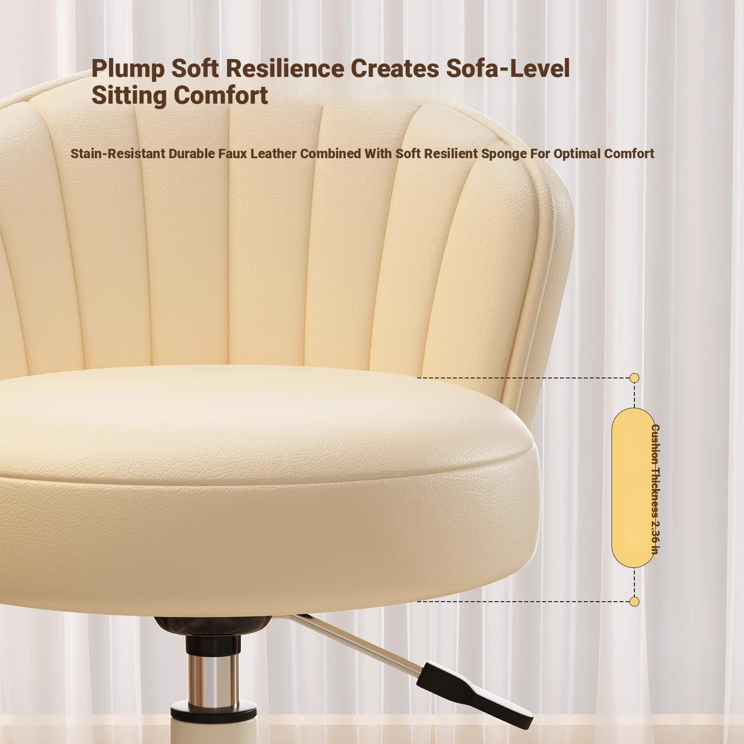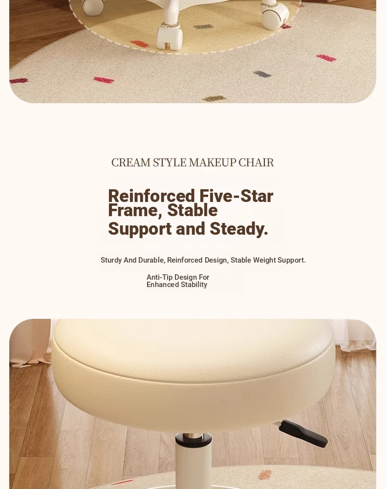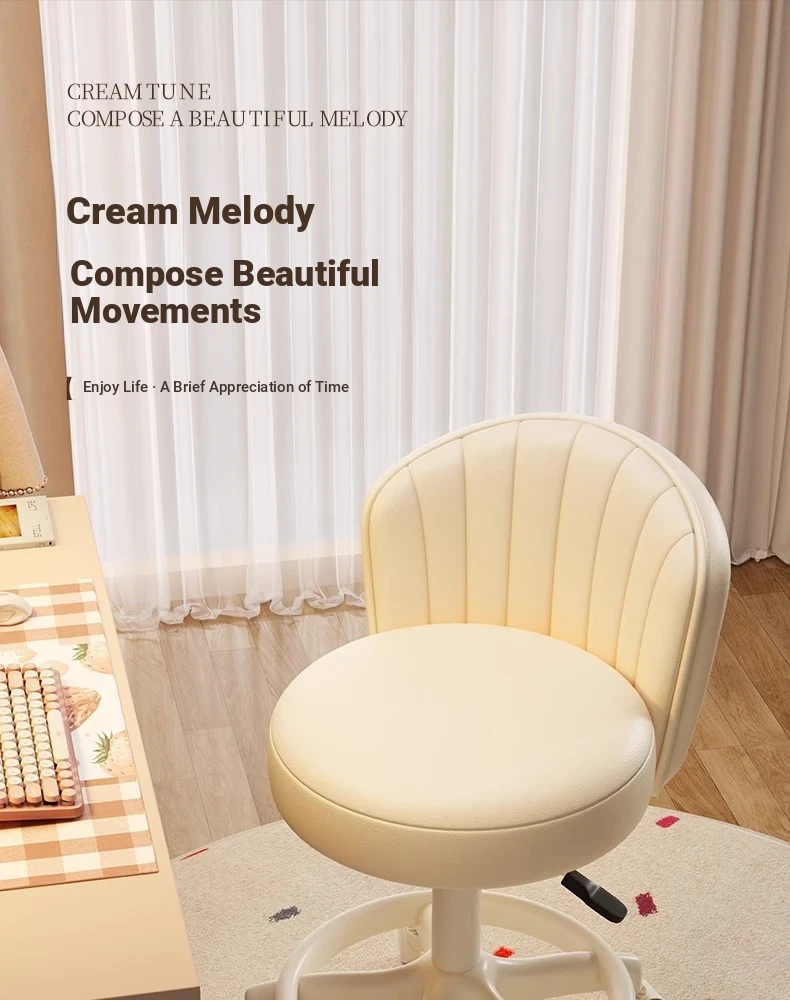 Japanese Makeup Chair - Adjustable Height Vanity Stool with Swivel Backrest and Wheels for Bedroom Makeup Sessions