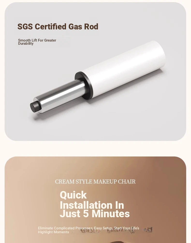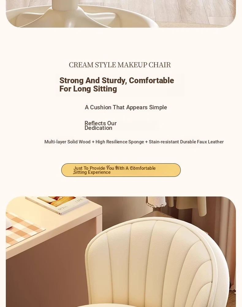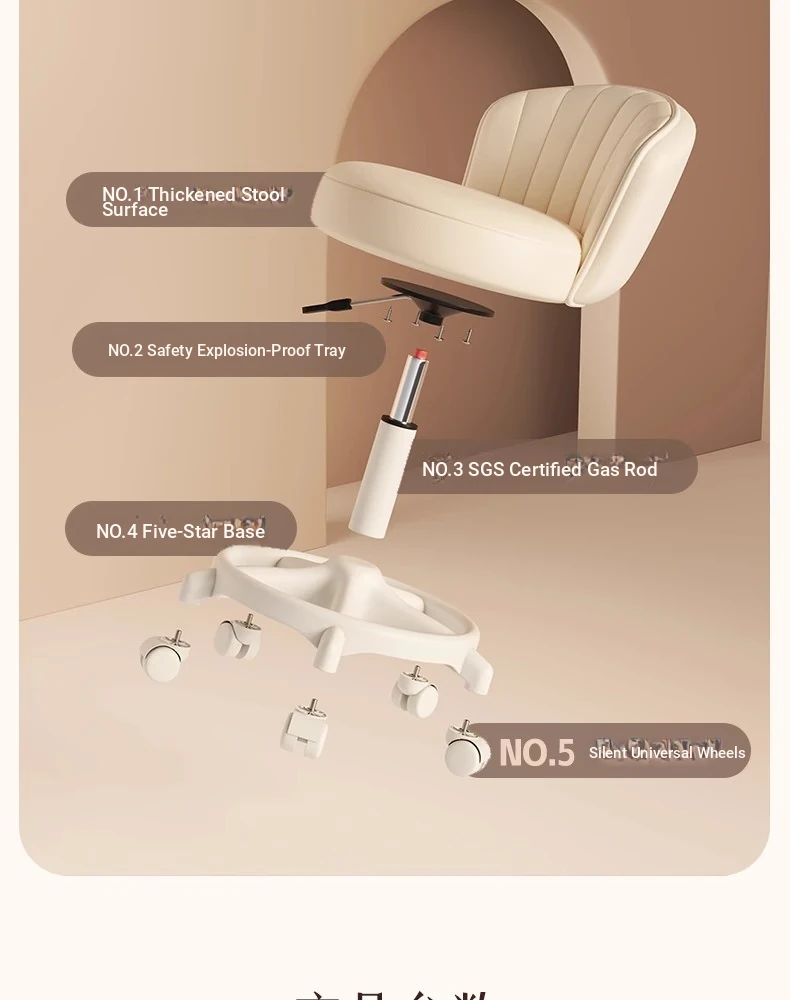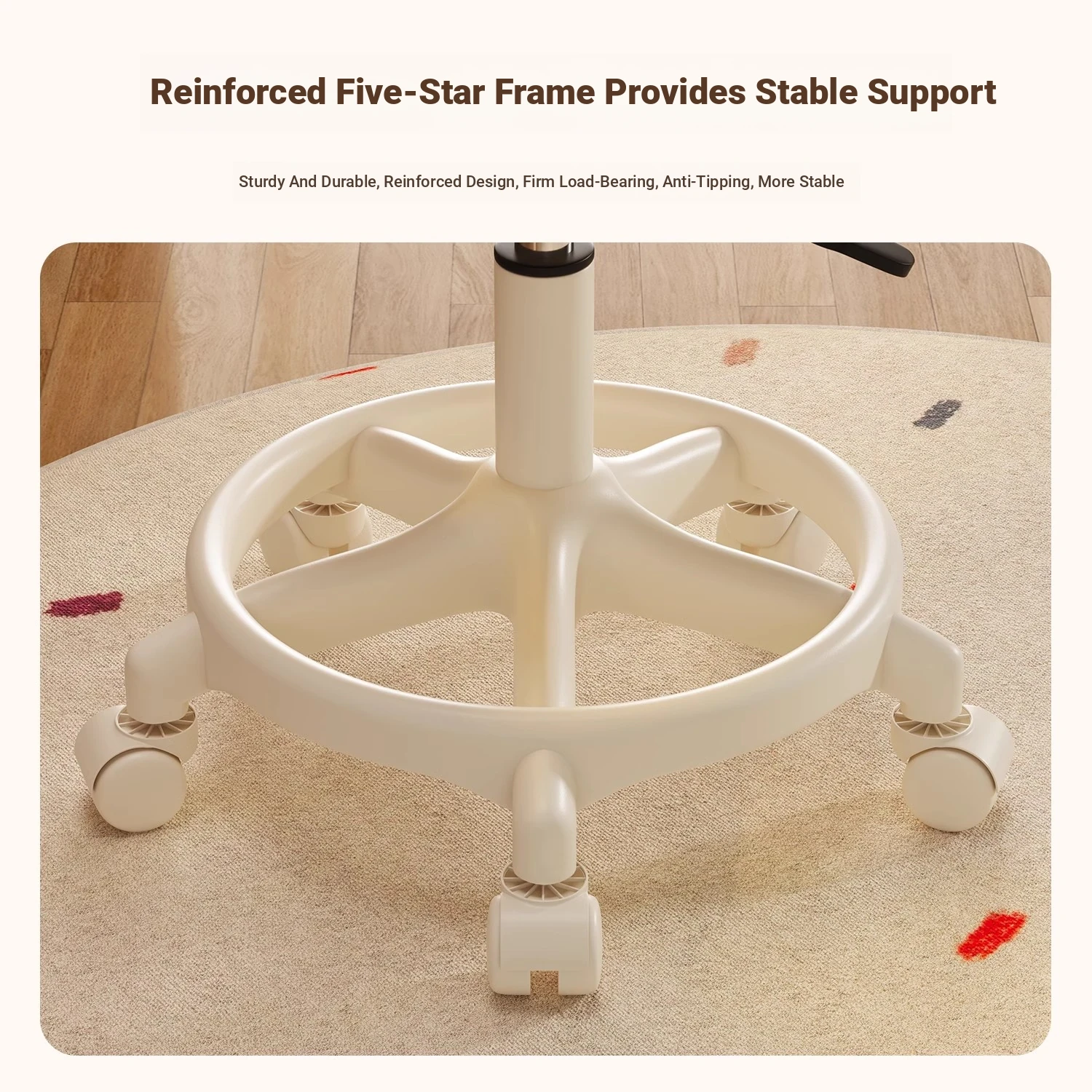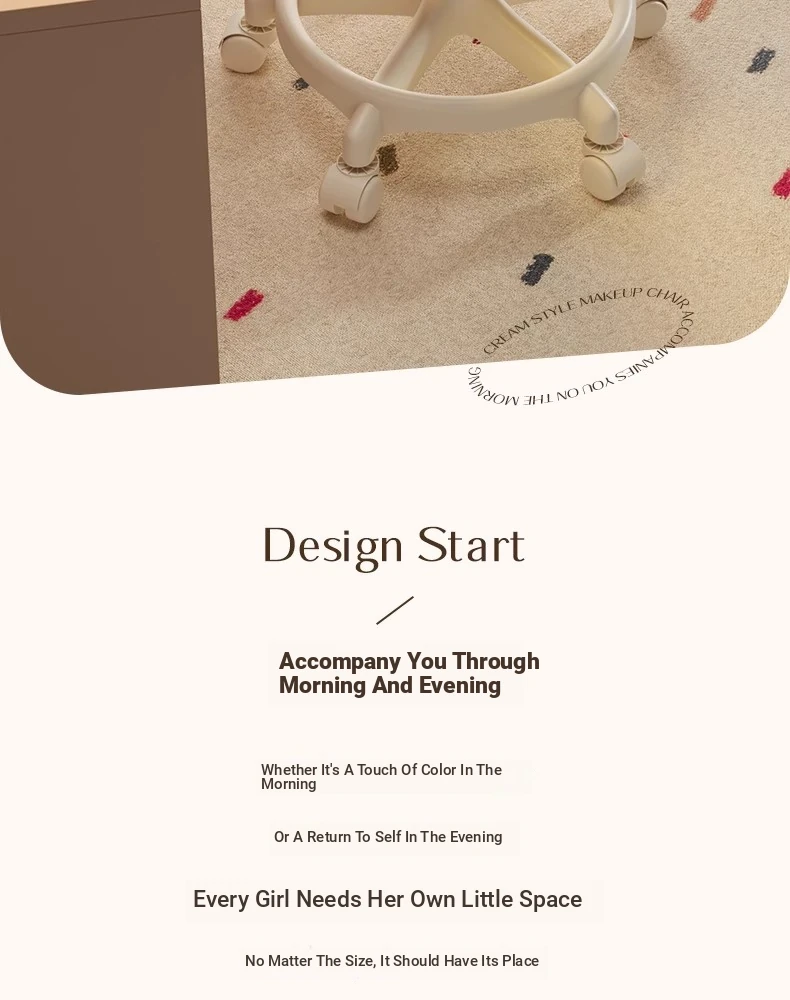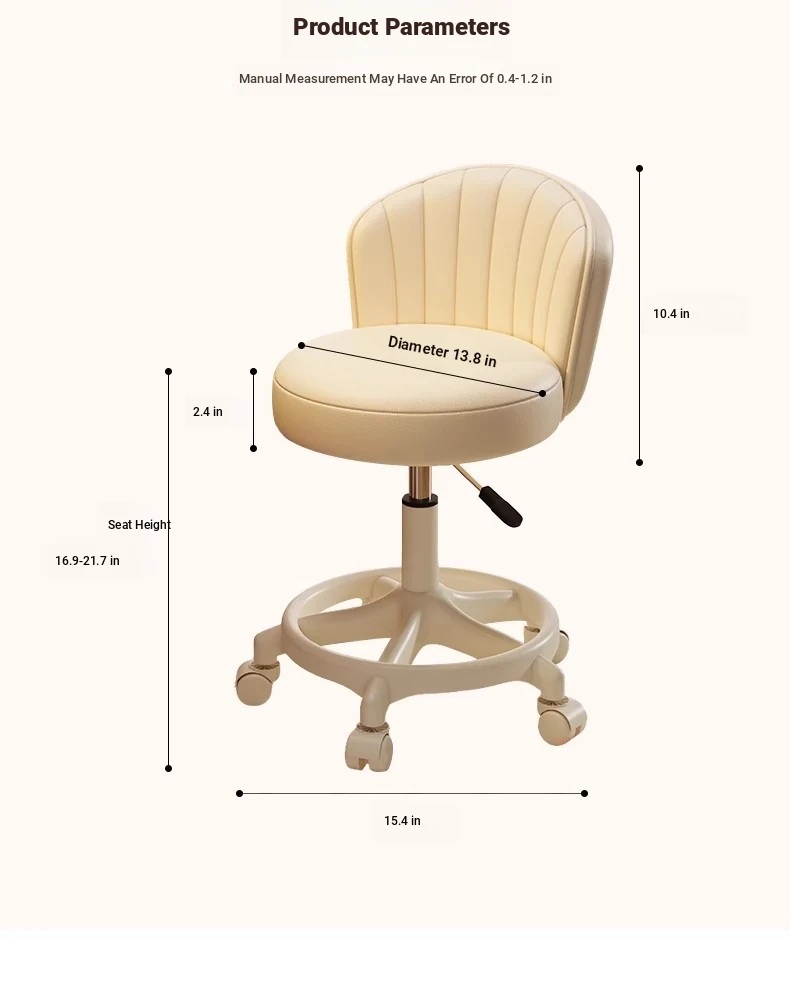 Japanese Makeup Chair - Adjustable Height Vanity Stool with Swivel Backrest and Wheels for Bedroom Makeup Sessions