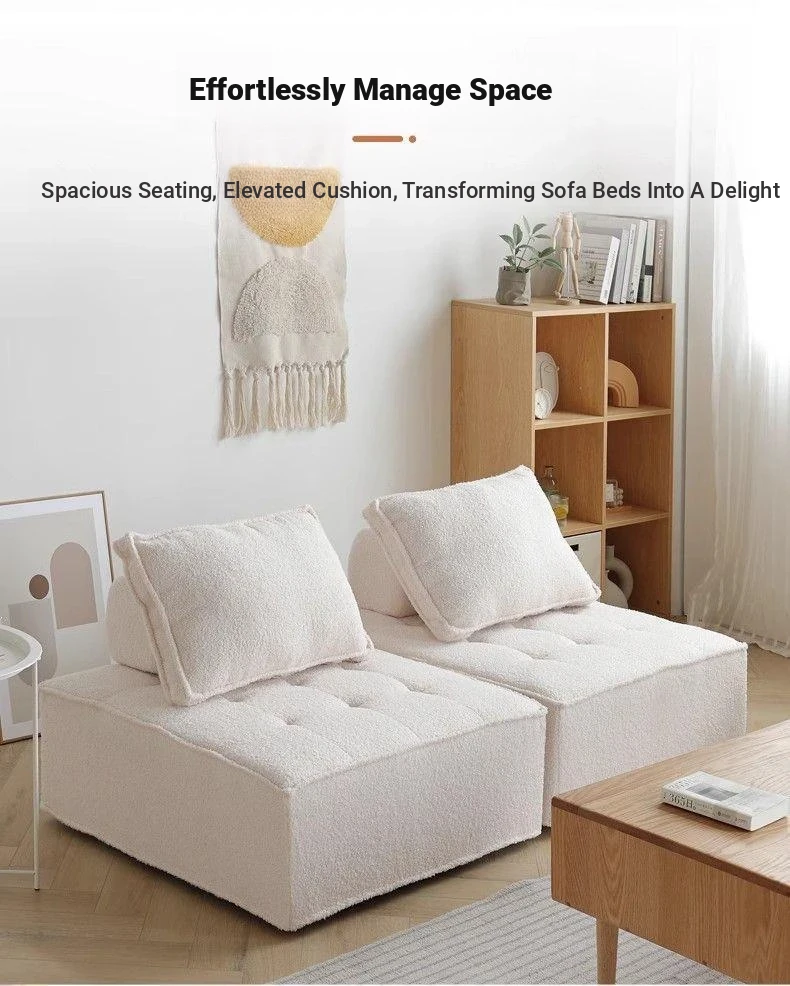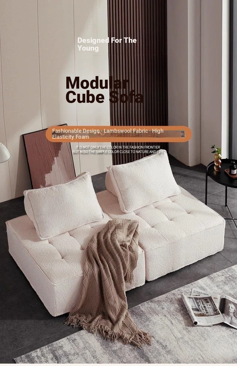 Lazy Sofa Bean Bag - Modular Square Design for Small Apartments, Italian Minimalist Style, Perfect for Relaxation in Bedrooms and Trendy Living Spaces.