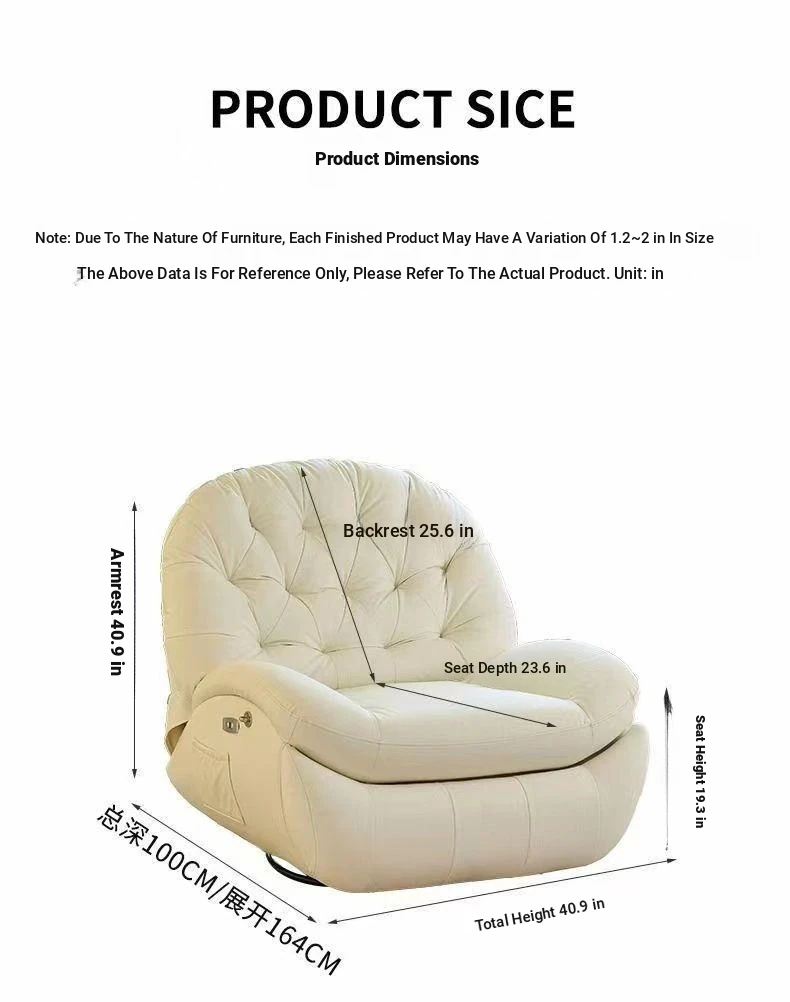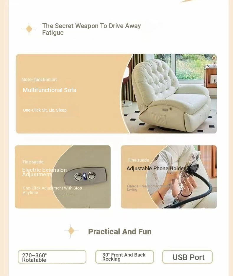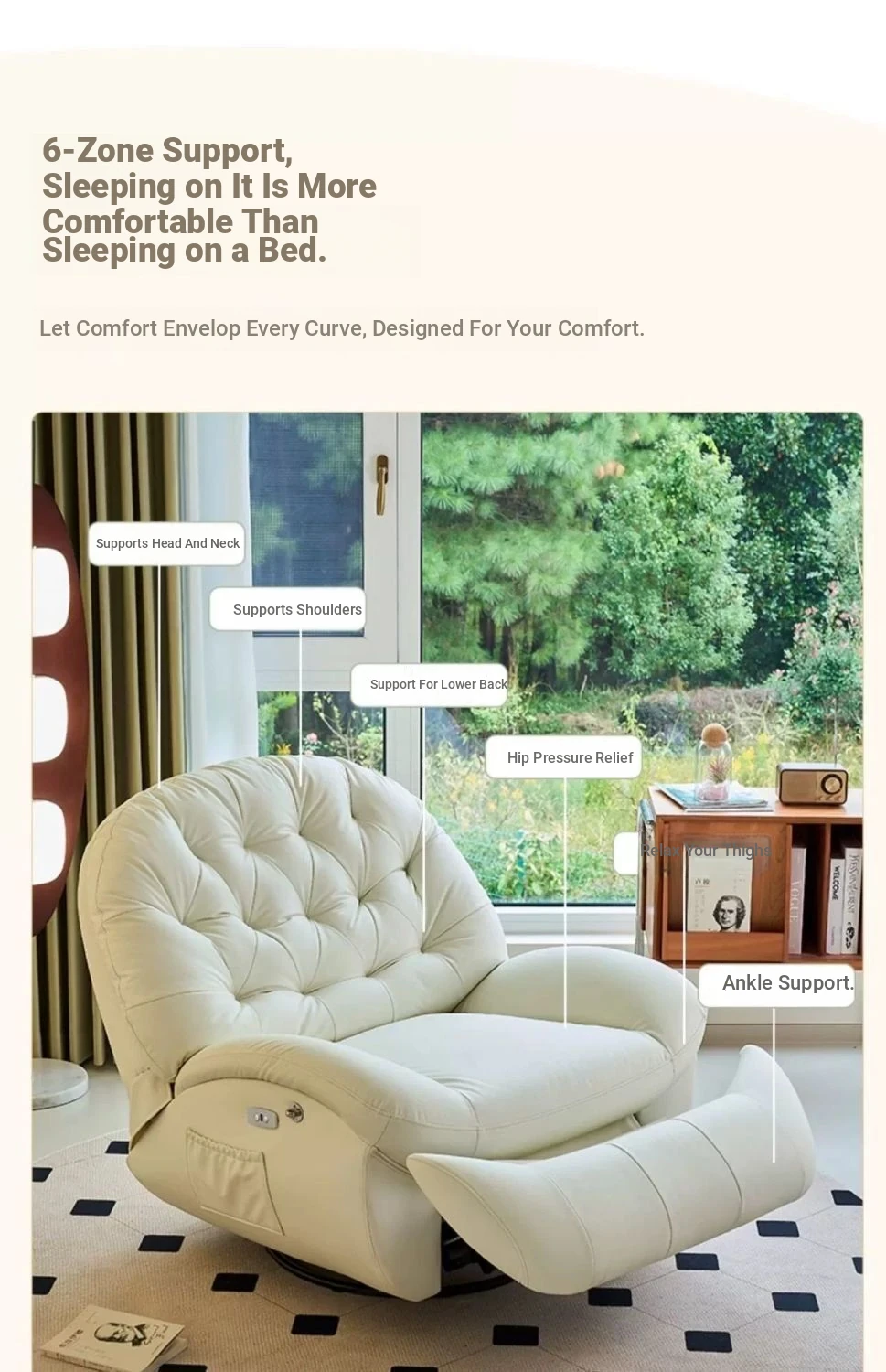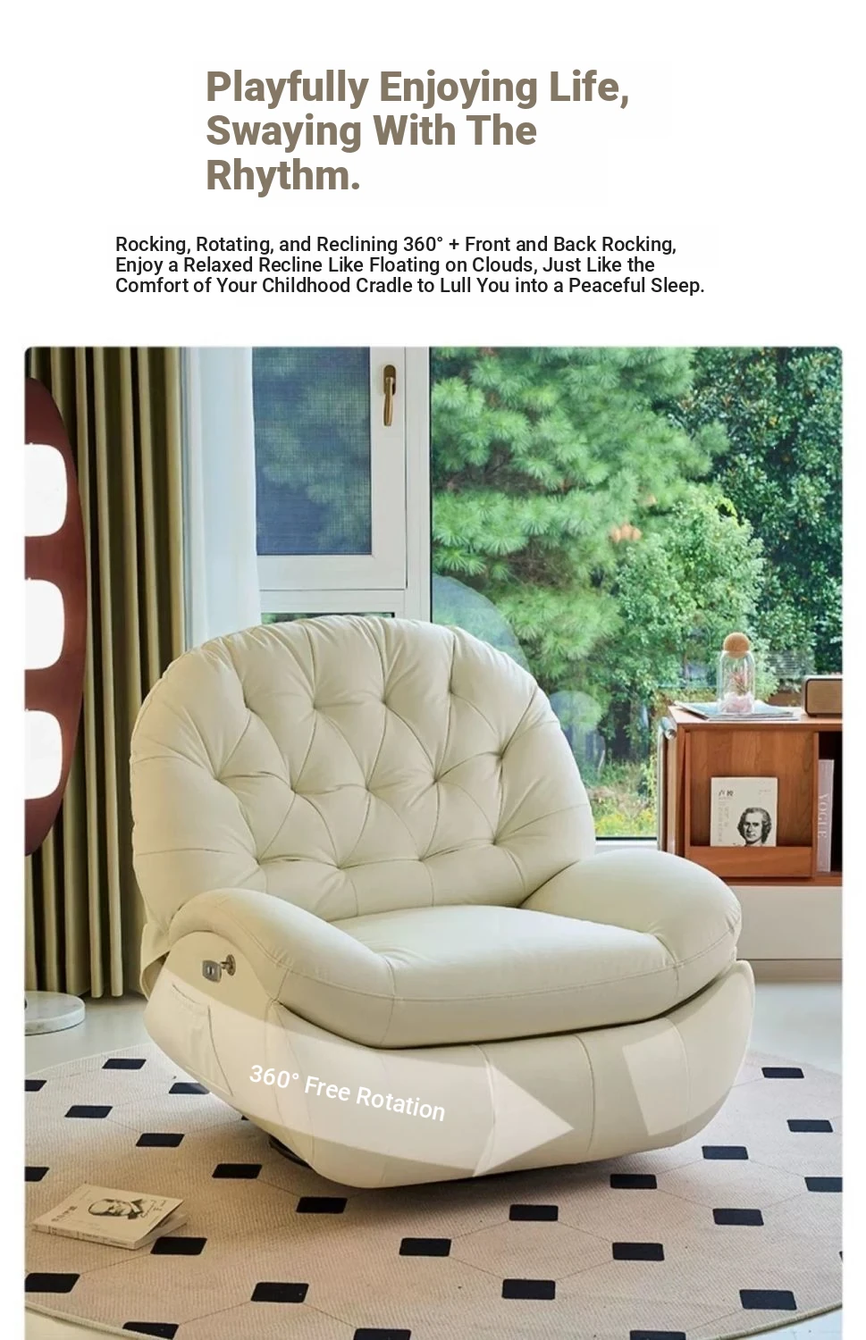 Lazy Sofa with Rotating Headrest - Multifunctional Electric Recliner Chair for Space-Saving Comfort in Bedroom or Living Room - Single Seat Rocking Chair for Ultimate Relaxation