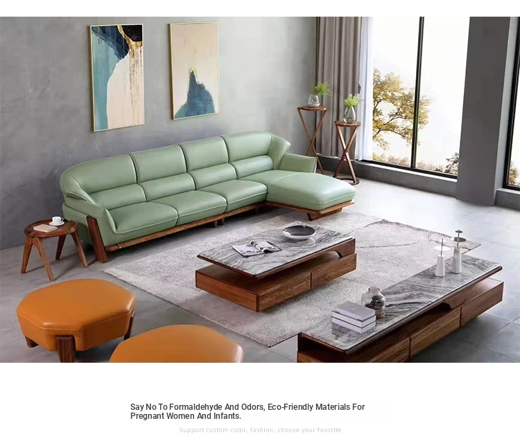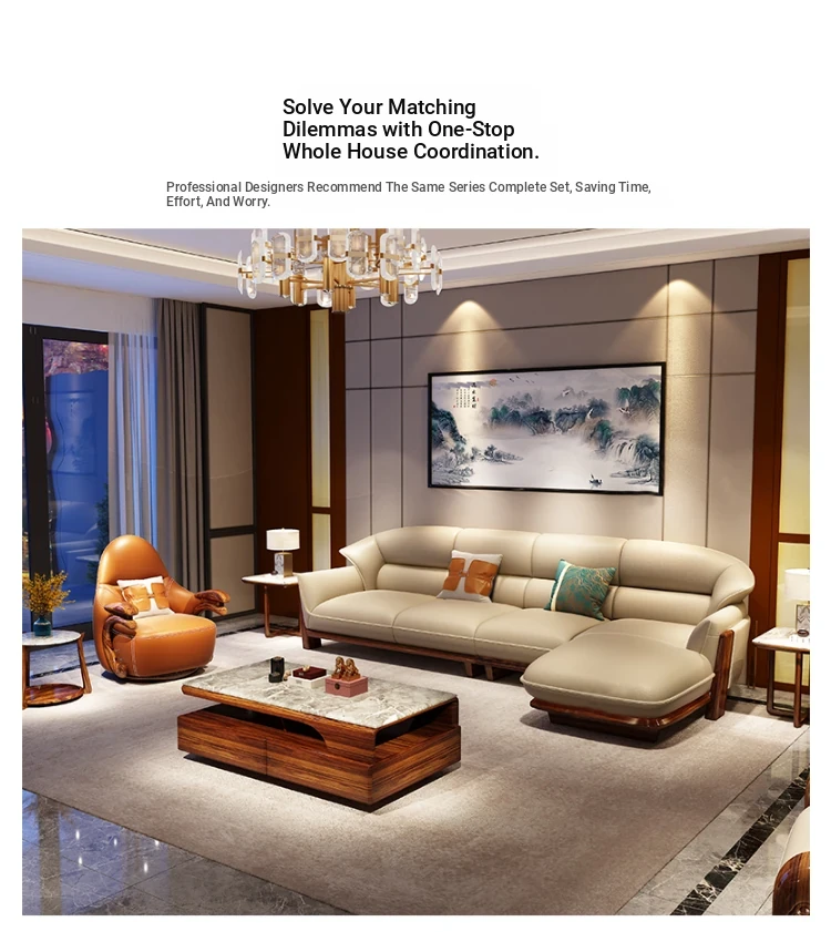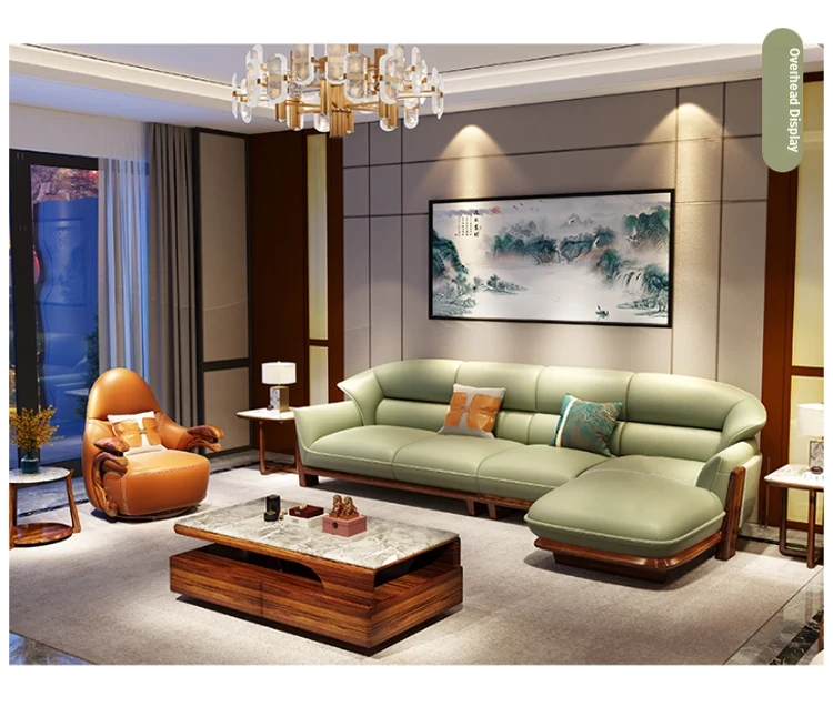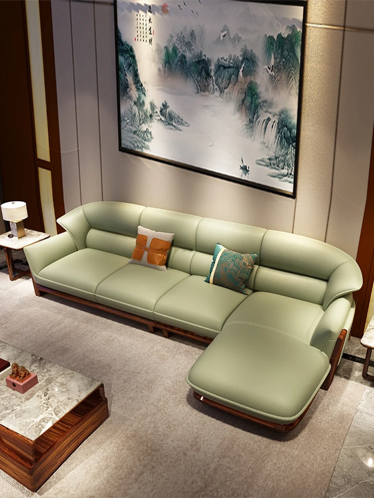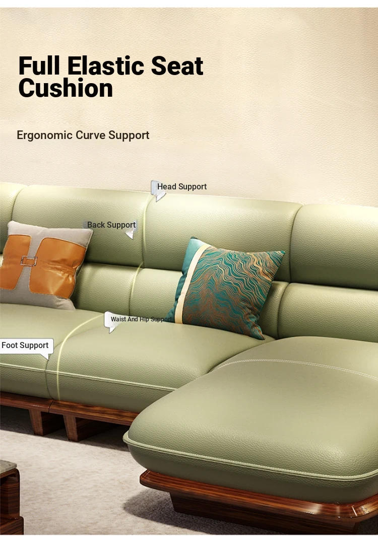 Luxurious European-Style Solid Wood Sofa with Premium Leather – Elegant L-Shaped Corner Furniture for Villas and Mansions, Perfect for Your Living Room