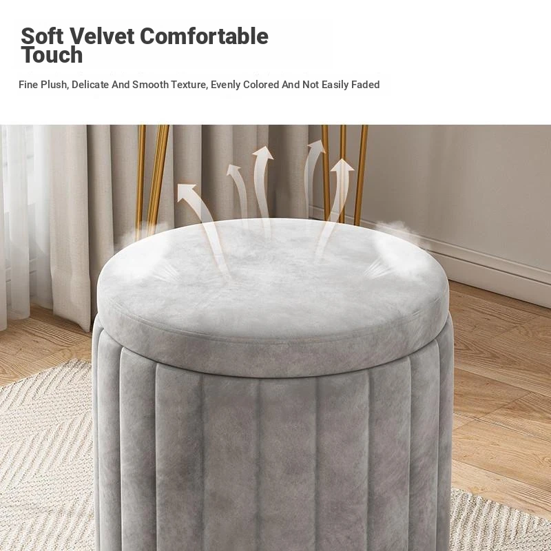 Luxurious Round Makeup Stool - Stylish Storage Bench for Bedroom, Influencer-Approved Vanity Seat, Compact Sofa Stool, Perfect for Makeup Tables and Small Spaces