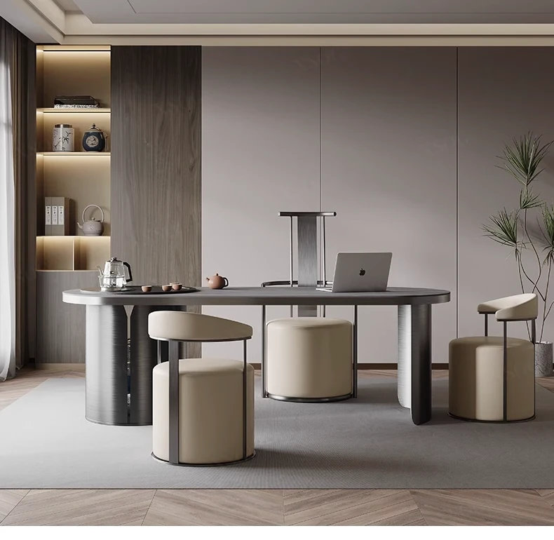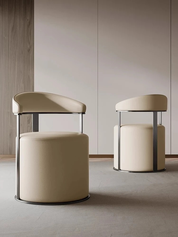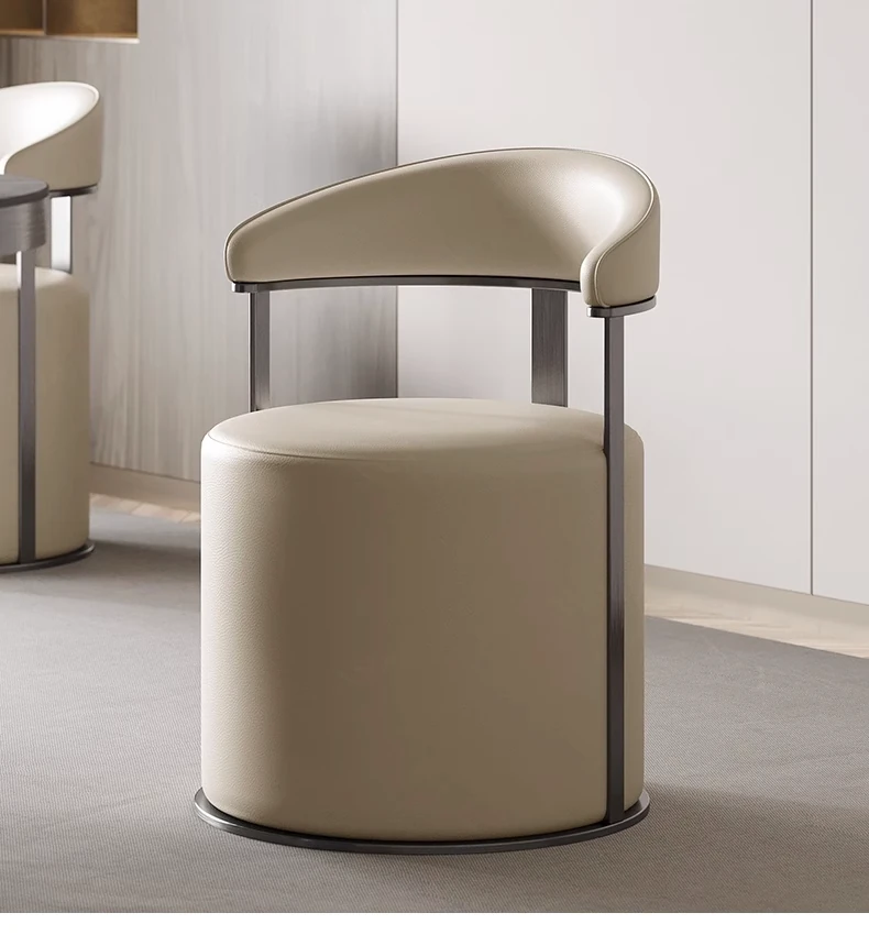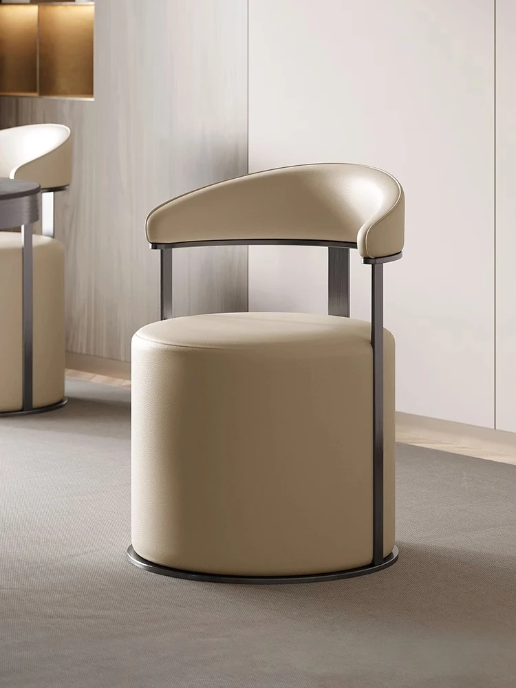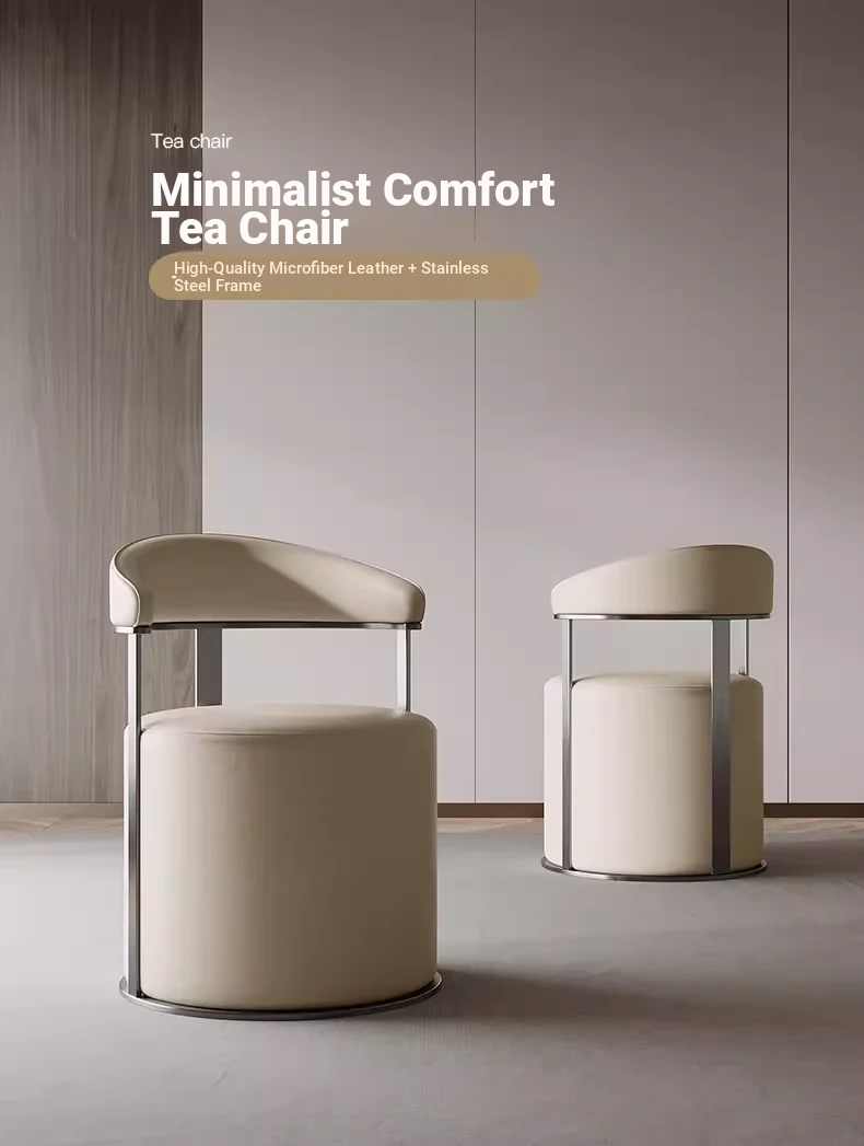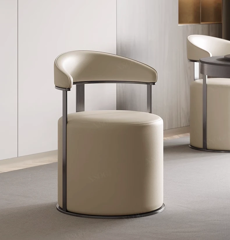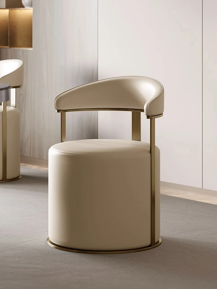 Luxury Genuine Leather Tea Table Guest Chair - Designer High-End Minimalist Dining Chair for Home, Ideal for Italian Villas and Reception Areas. Perfect for Meetings and Conversations.