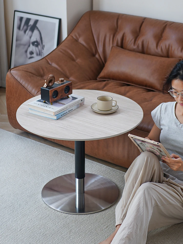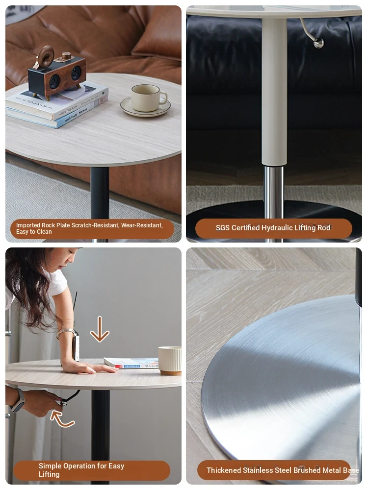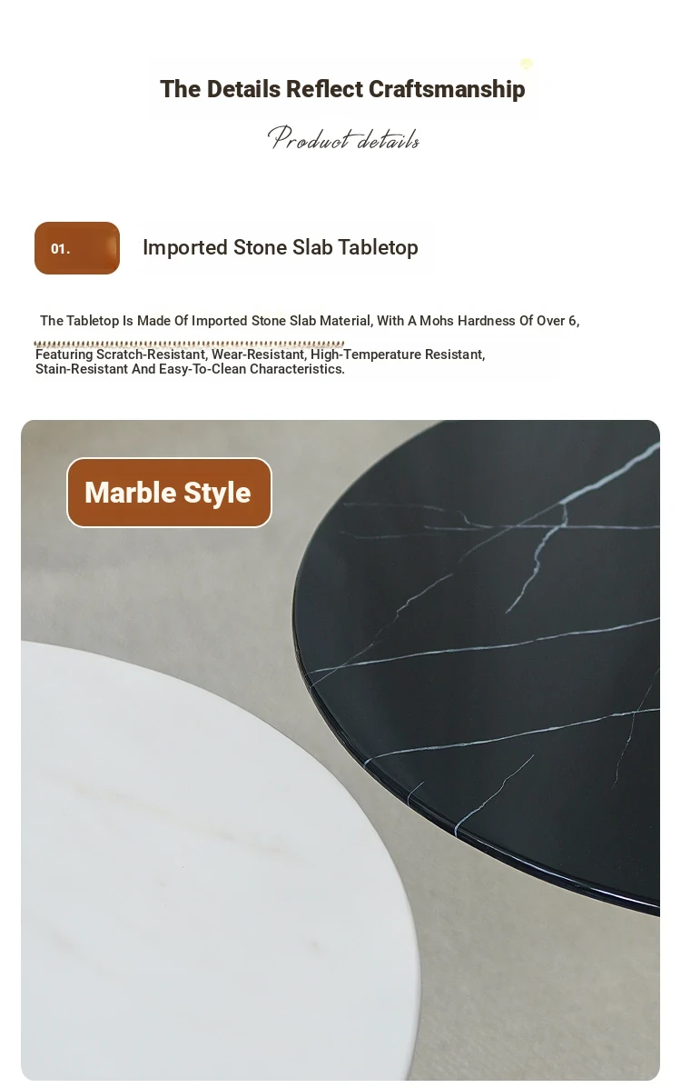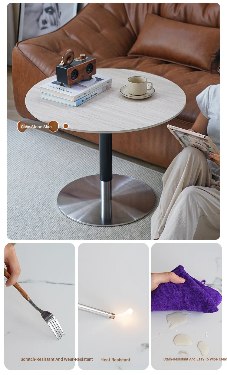 Snow Mountain Rock White Rock Board 27.56in Round + Silver Table Foot