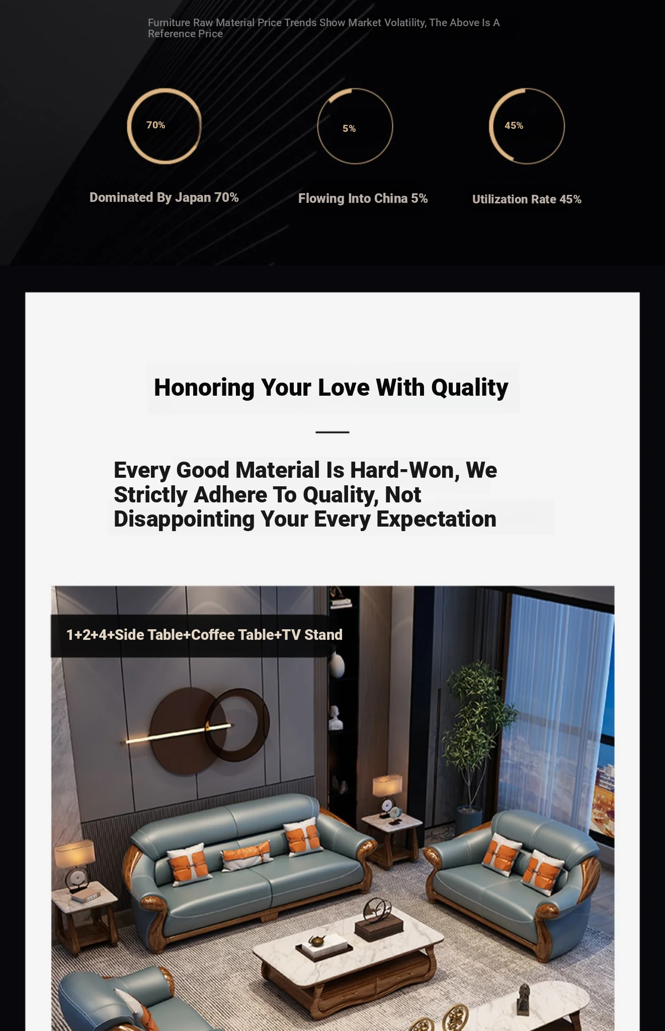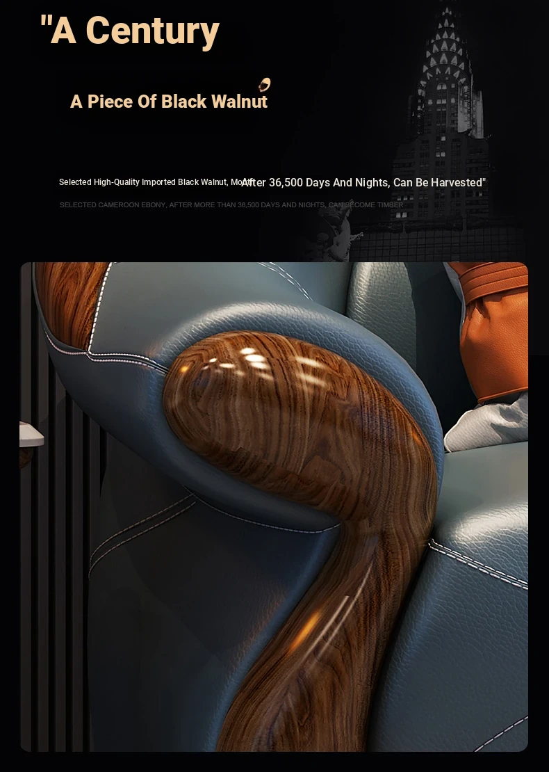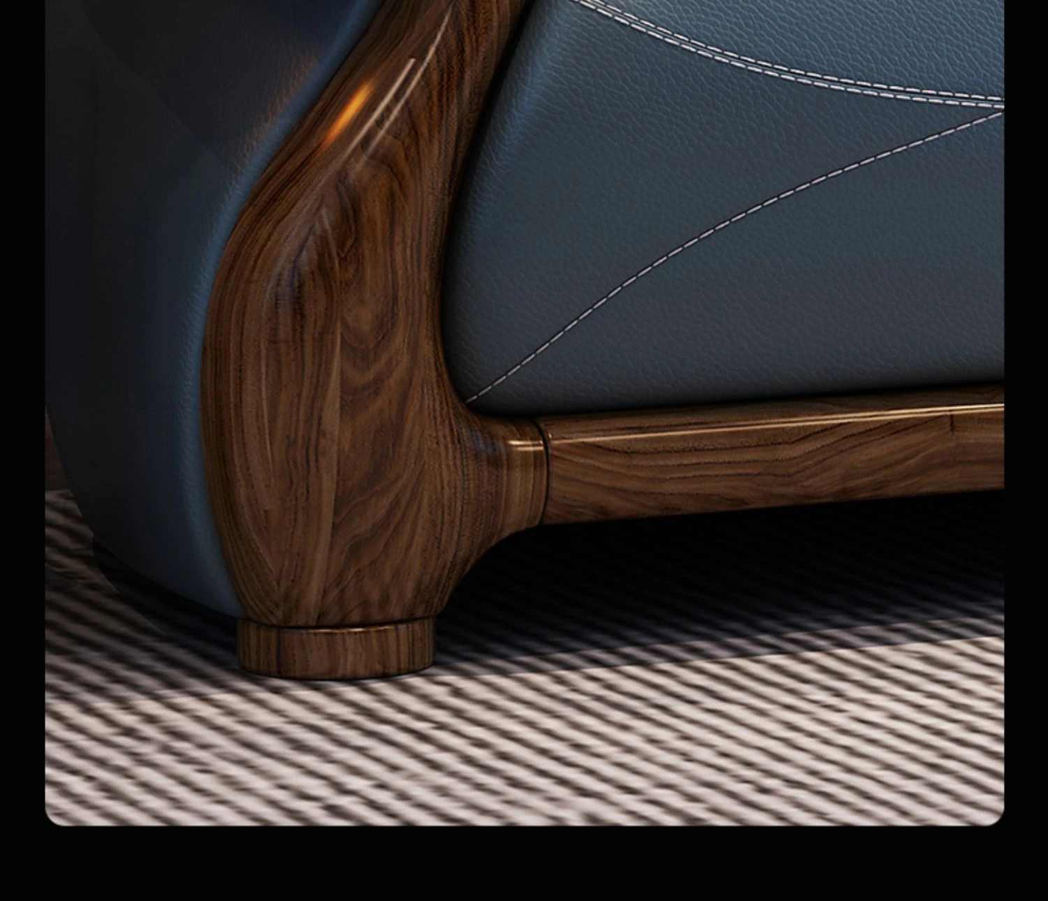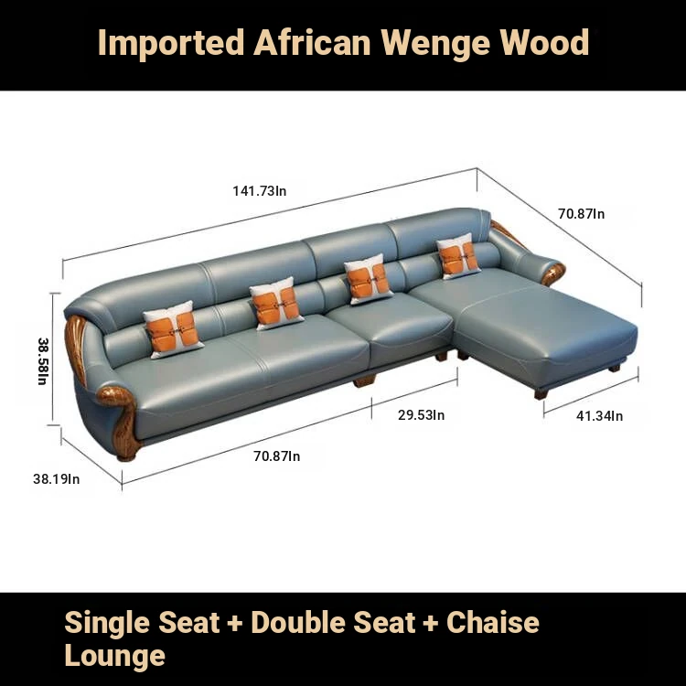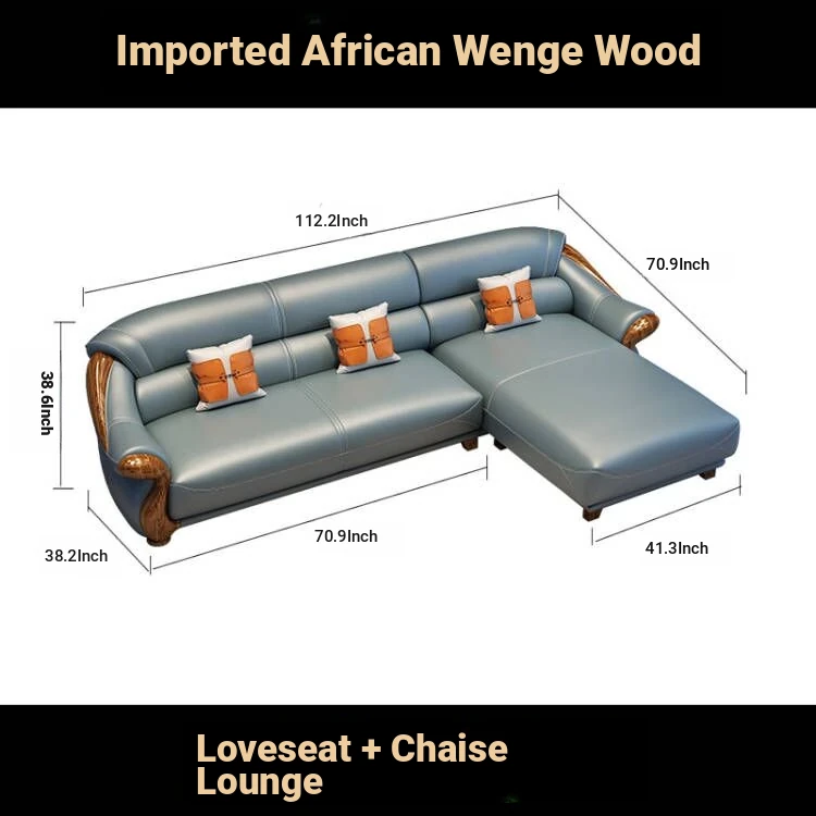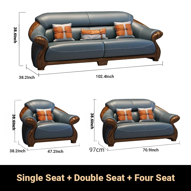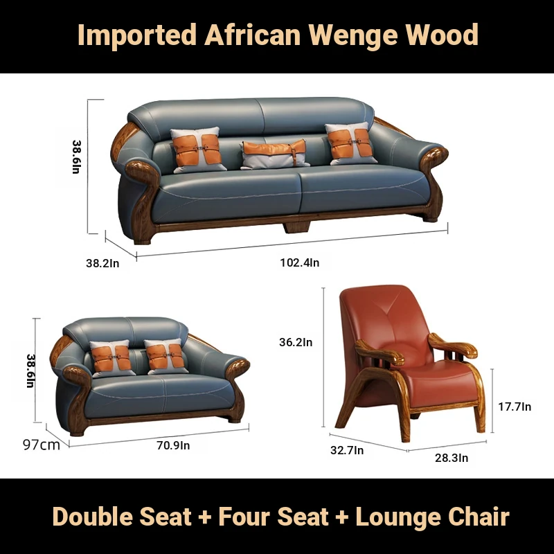 Luxury Villa Real Leather New Chinese Style Top Grain Cowhide Sofa with Black Walnut Veneer - 124-piece Living Room Set