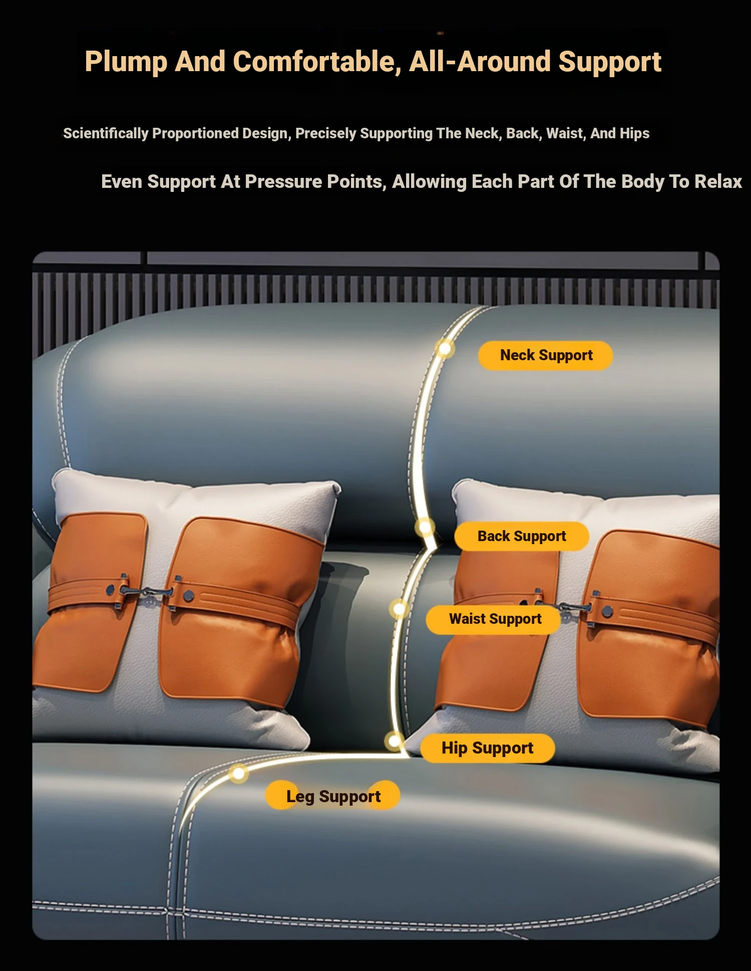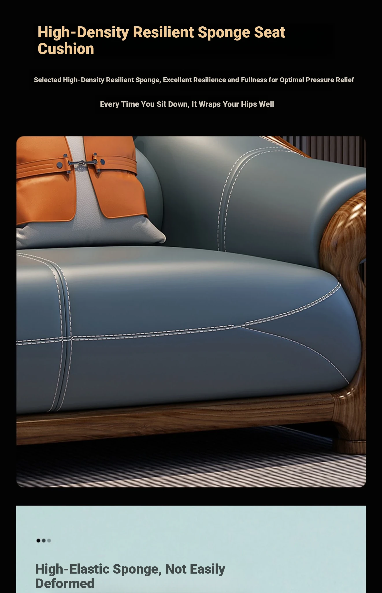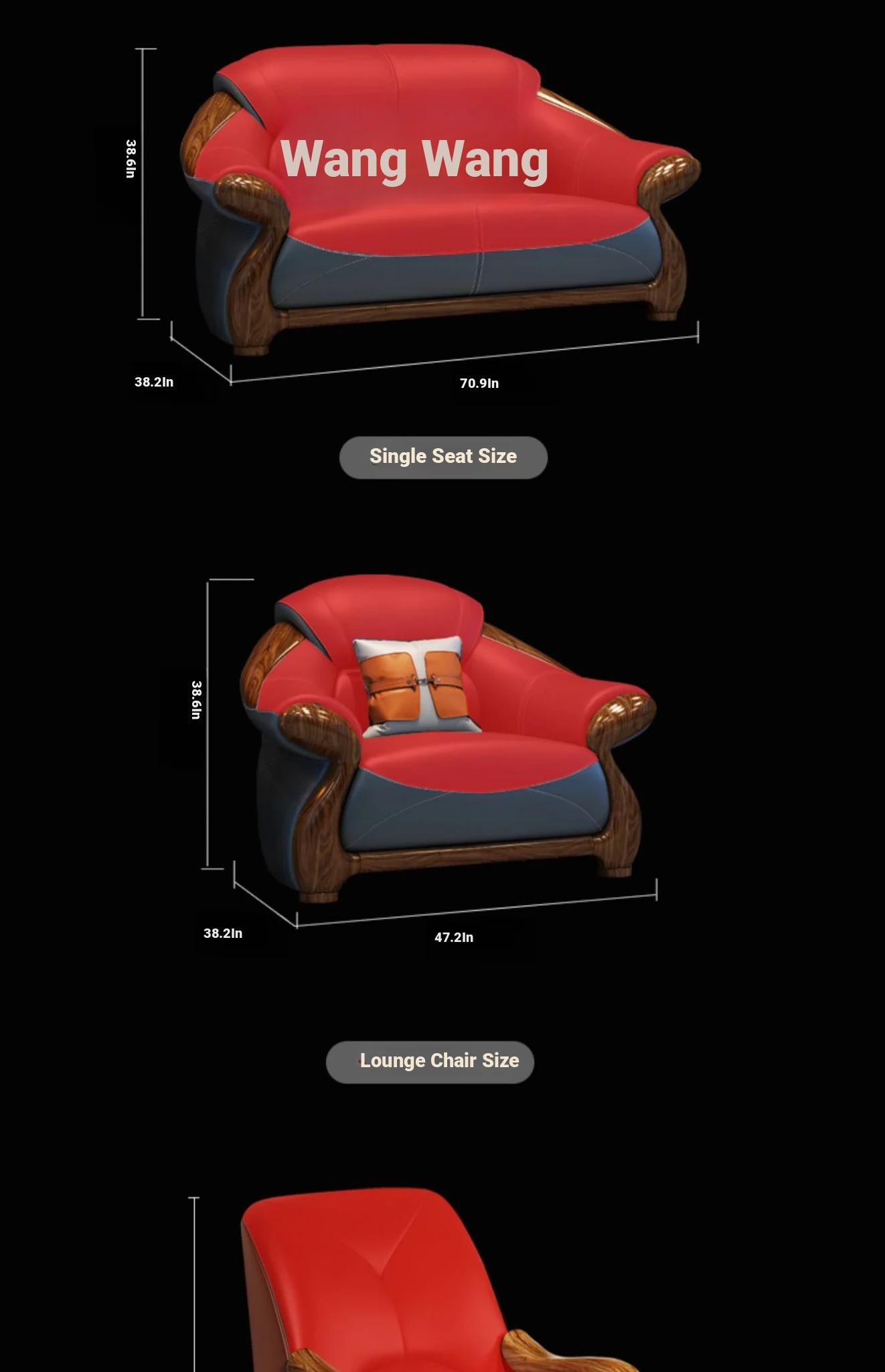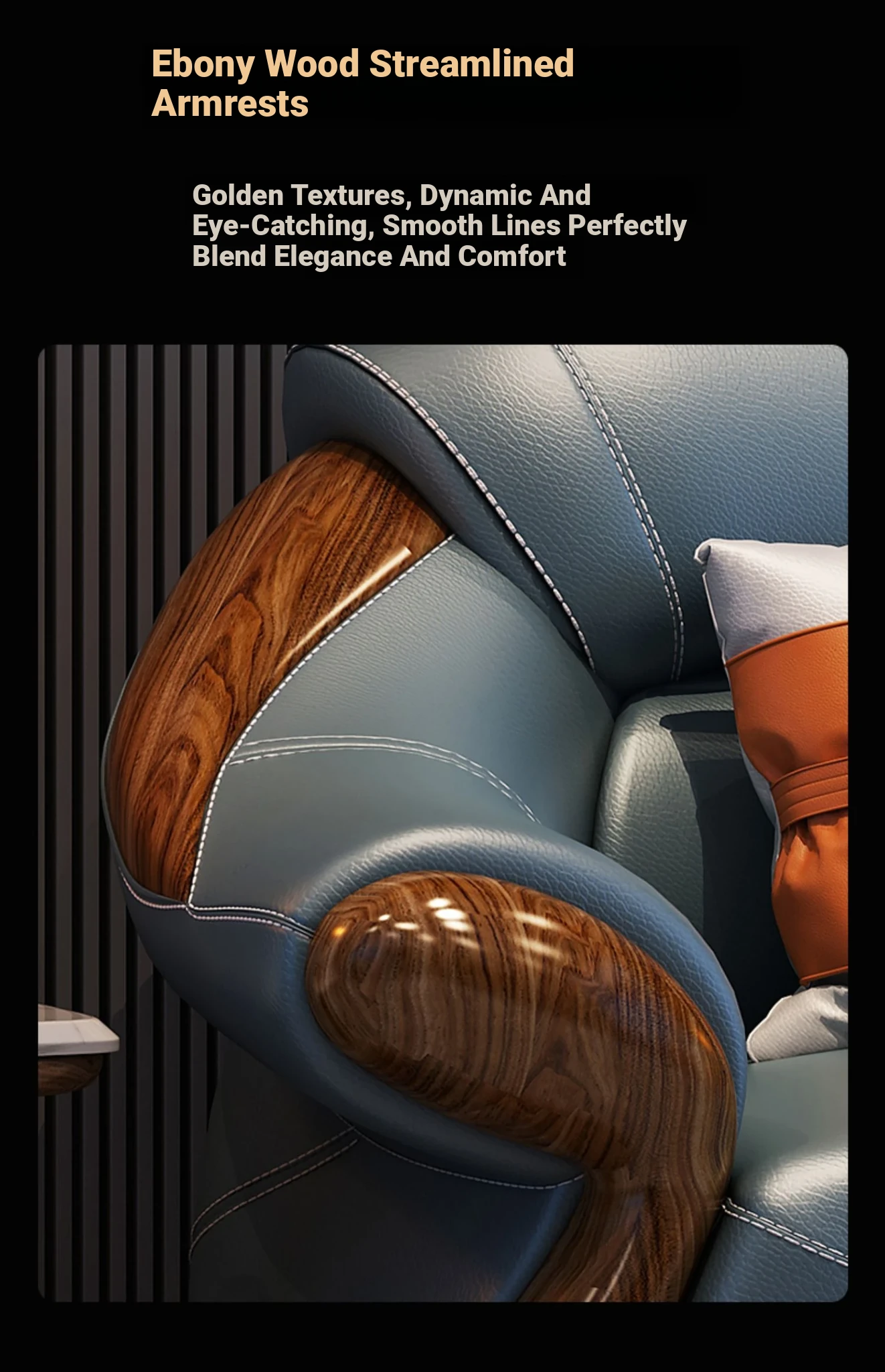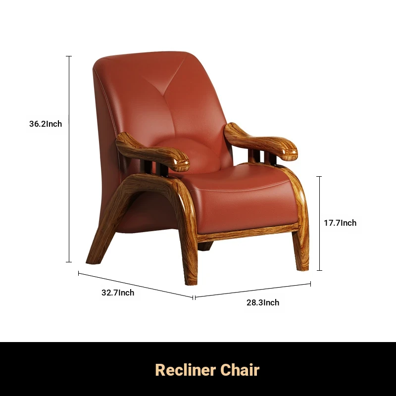 Luxury Villa Real Leather New Chinese Style Top Grain Cowhide Sofa with Black Walnut Veneer - 124-piece Living Room Set