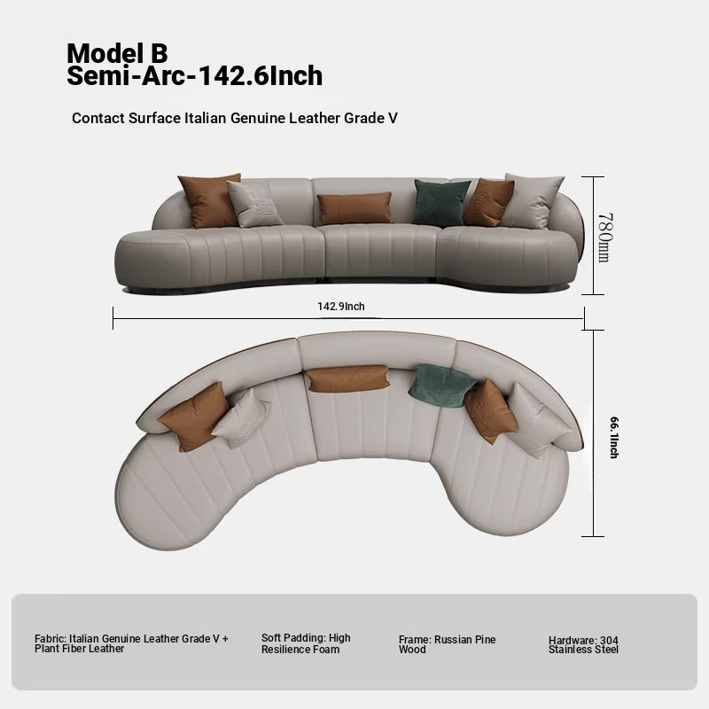 B half arc [142.13in contact surface Italian leather V]]