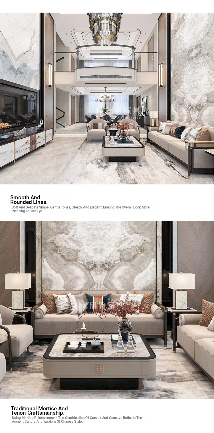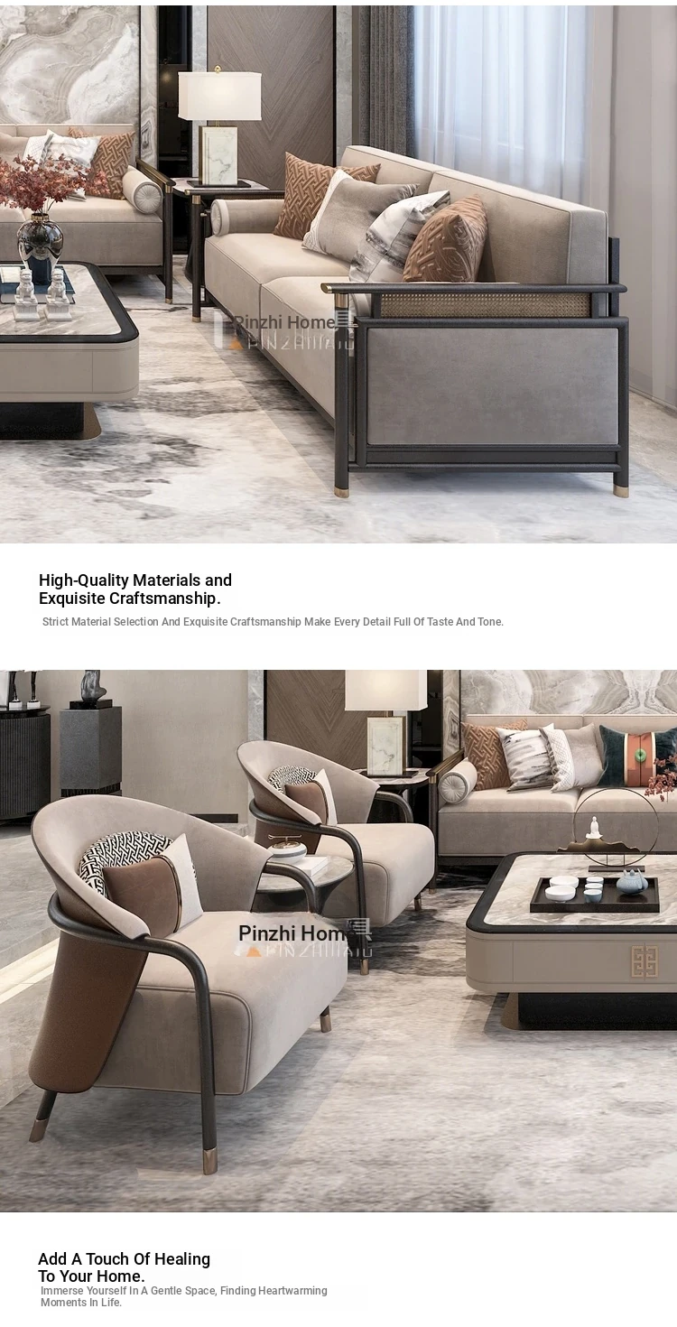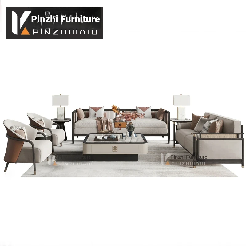 Minimalist Modern New Chinese Solid Wood Sofa Set - Elegant Luxury Furniture for Sales Offices, Model Rooms, Hotels, and Private Lounges