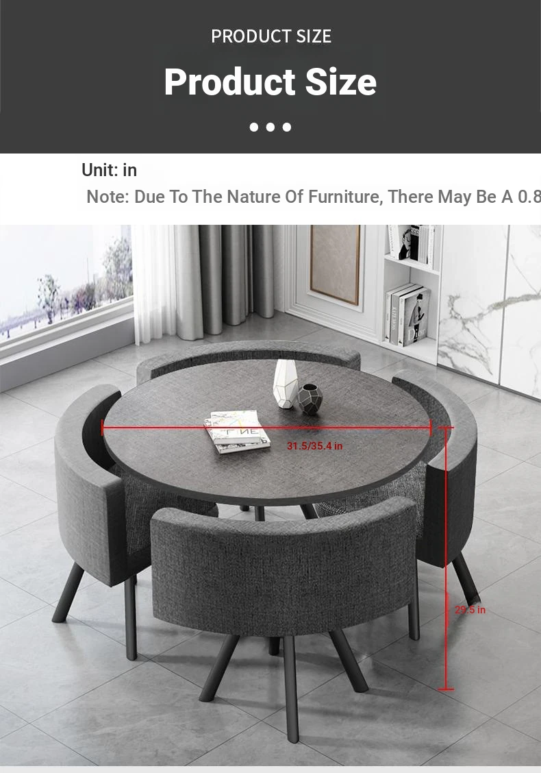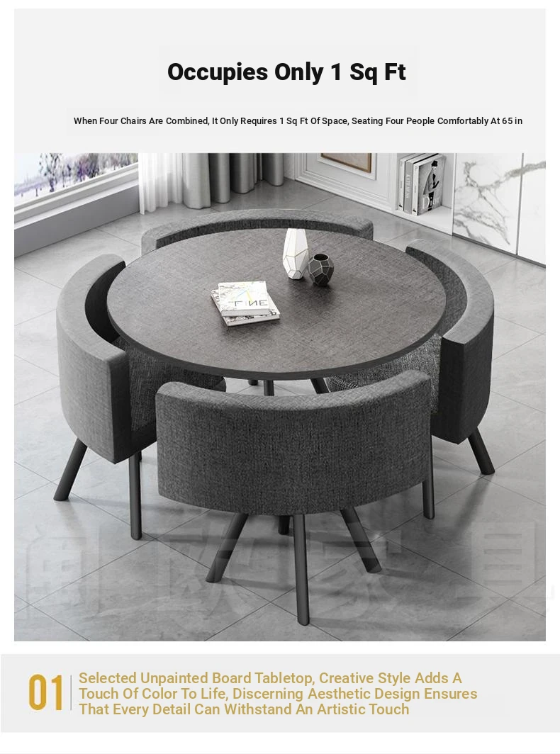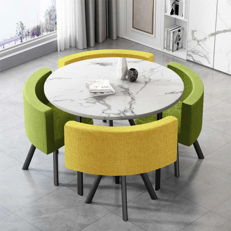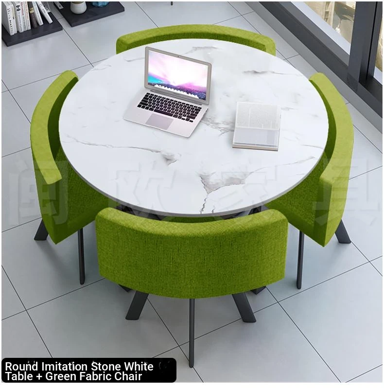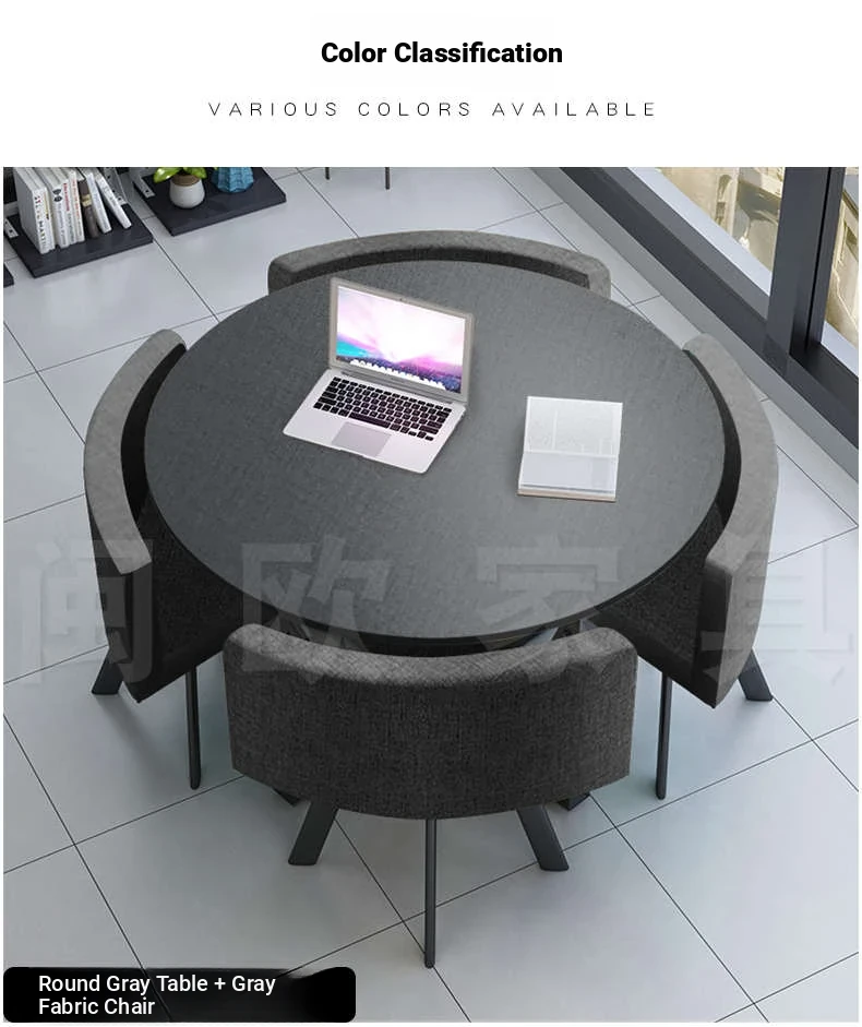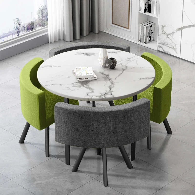 Imitation stone grain round + gray cloth chair 1 table 4 chairs