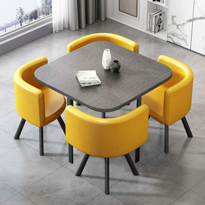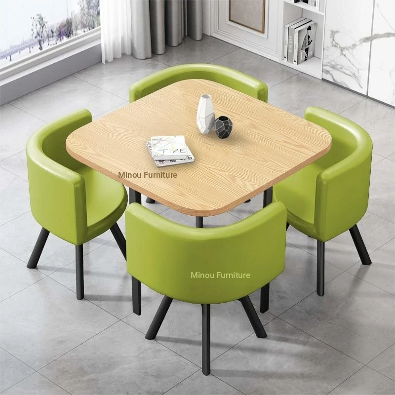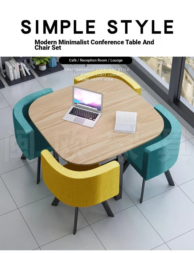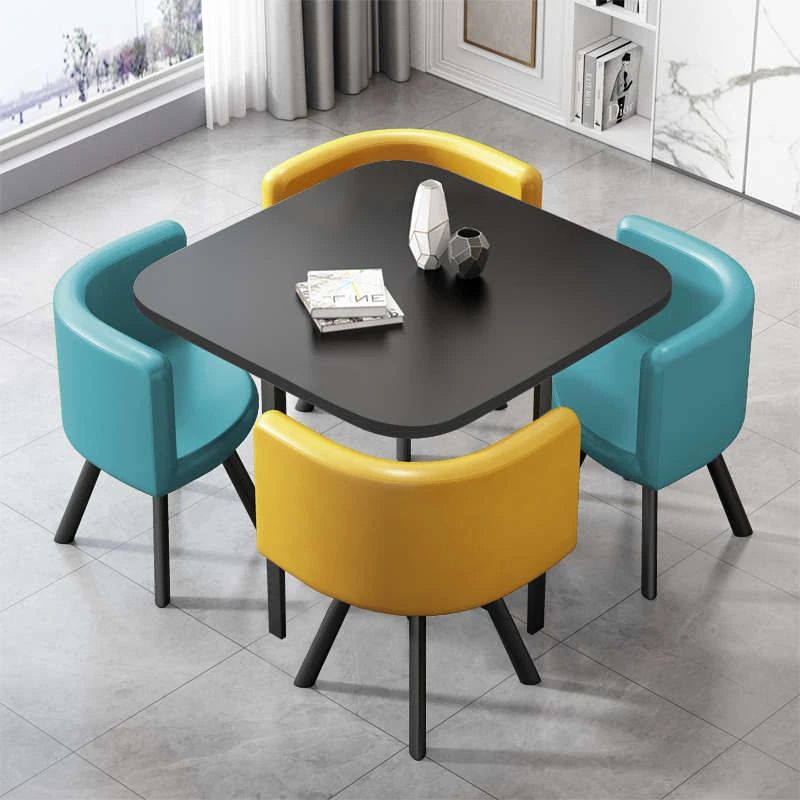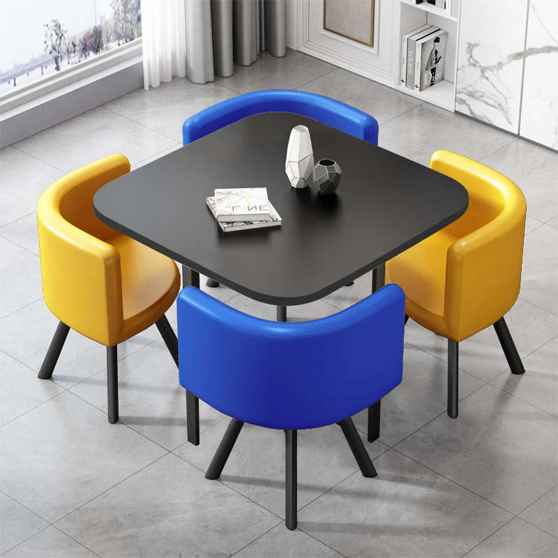 Minimalist Square Conference Table and Chairs Set for Office - Ideal for Meetings, Casual Gatherings, and Reception Areas. Perfect for Restaurants and Shops!