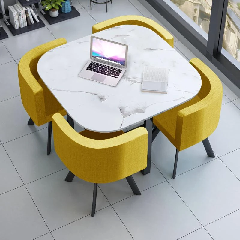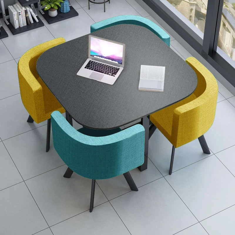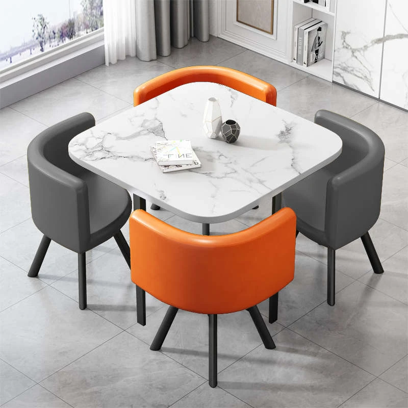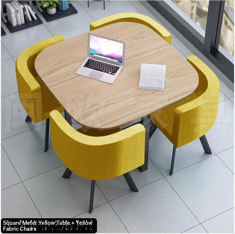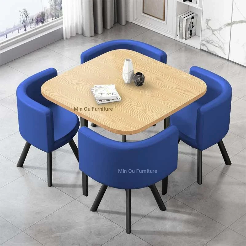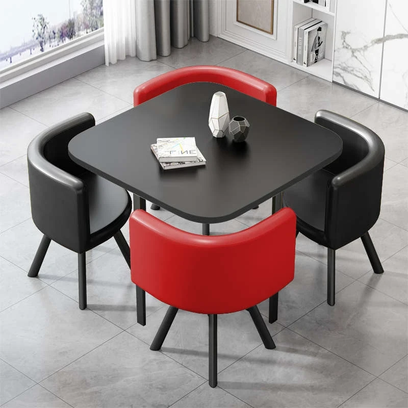 Minimalist Square Conference Table and Chairs Set for Office - Ideal for Meetings, Casual Gatherings, and Reception Areas. Perfect for Restaurants and Shops!