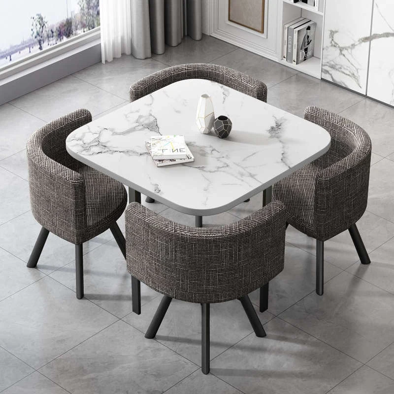 Imitation stone pattern square + gray cloth chair 1 table 4 chairs