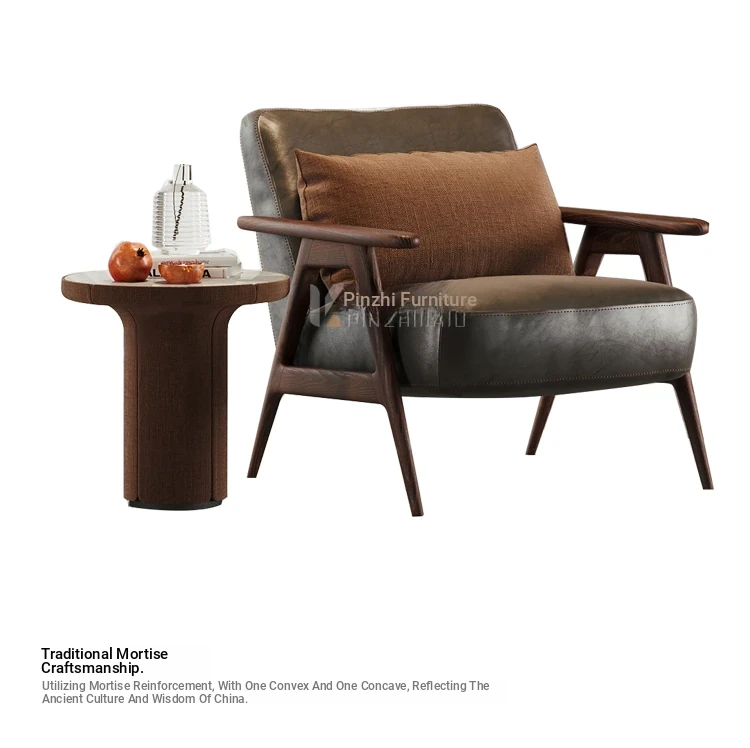Modern Chinese Solid Wood Sofa Chair and Coffee Table Set - Elegant 3-Piece Leisure Suite for Living Room, Balcony, Bedroom, Hotel, and Clubhouse. Perfect Blend of Tradition and Contemporary Style!