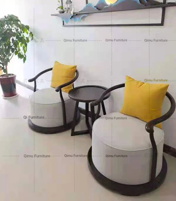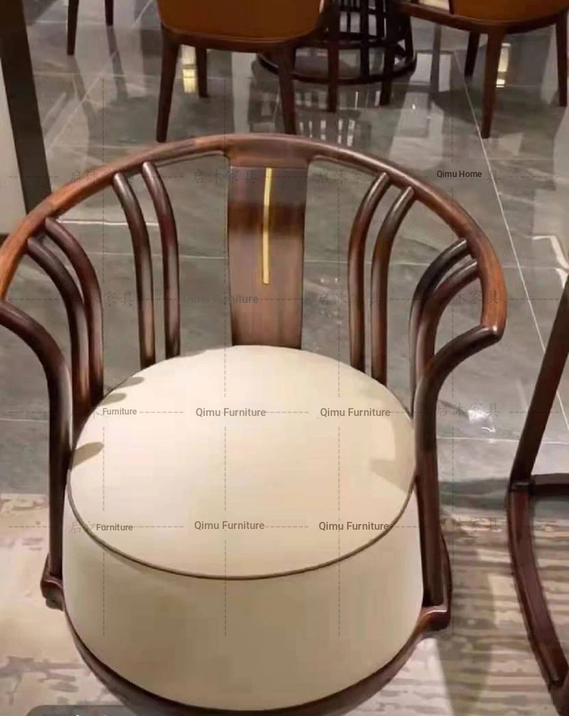 Modern Chinese-Style Leisure Chair Set - 3-Piece Round Chair Set for Contemporary Meetings, Balconies, and Living Rooms - Elegant Wenge Wood Furniture