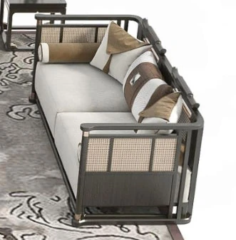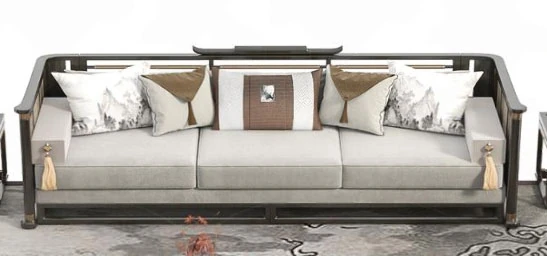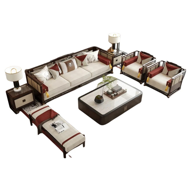 Modern Chinese-Style Sofa Set: Elegant Song Dynasty-Inspired Solid Wood and Fabric Combination for Small Spaces, Ideal for Model Homes and Luxurious Living Rooms.
