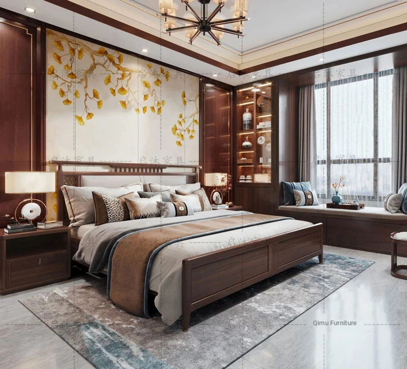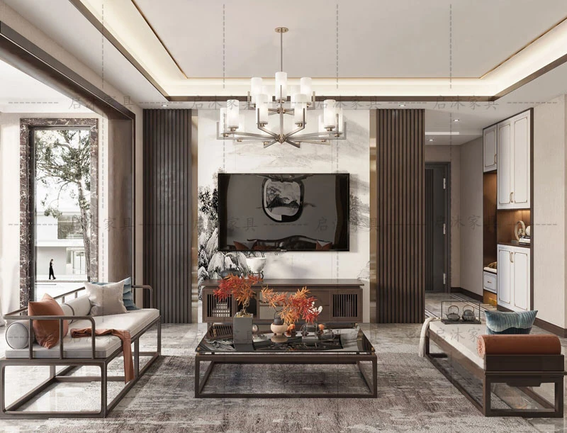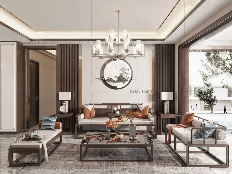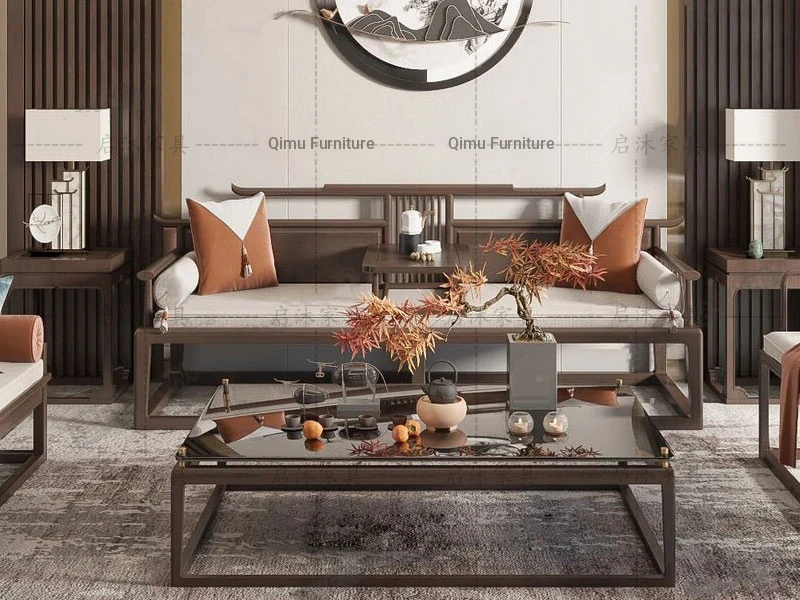 Modern Chinese-Style Sofa Set - Minimalist Solid Wood Fabric Sofa with Zen Aesthetic for Living Room - Ideal Furniture for Stylish Show Homes