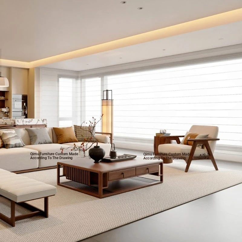 Modern Minimalist New Chinese Style Solid Wood Sofa Set - Elegant Song Dynasty Aesthetic for Living Room, Villa, and Sample Home Furniture