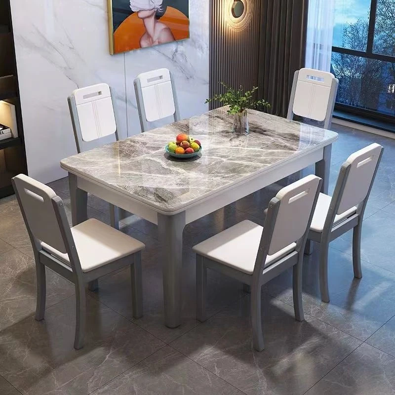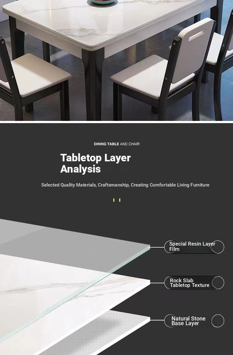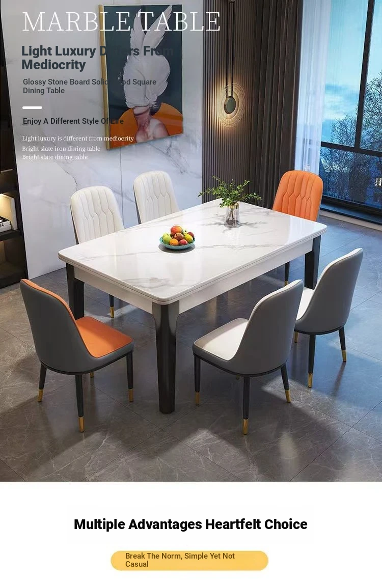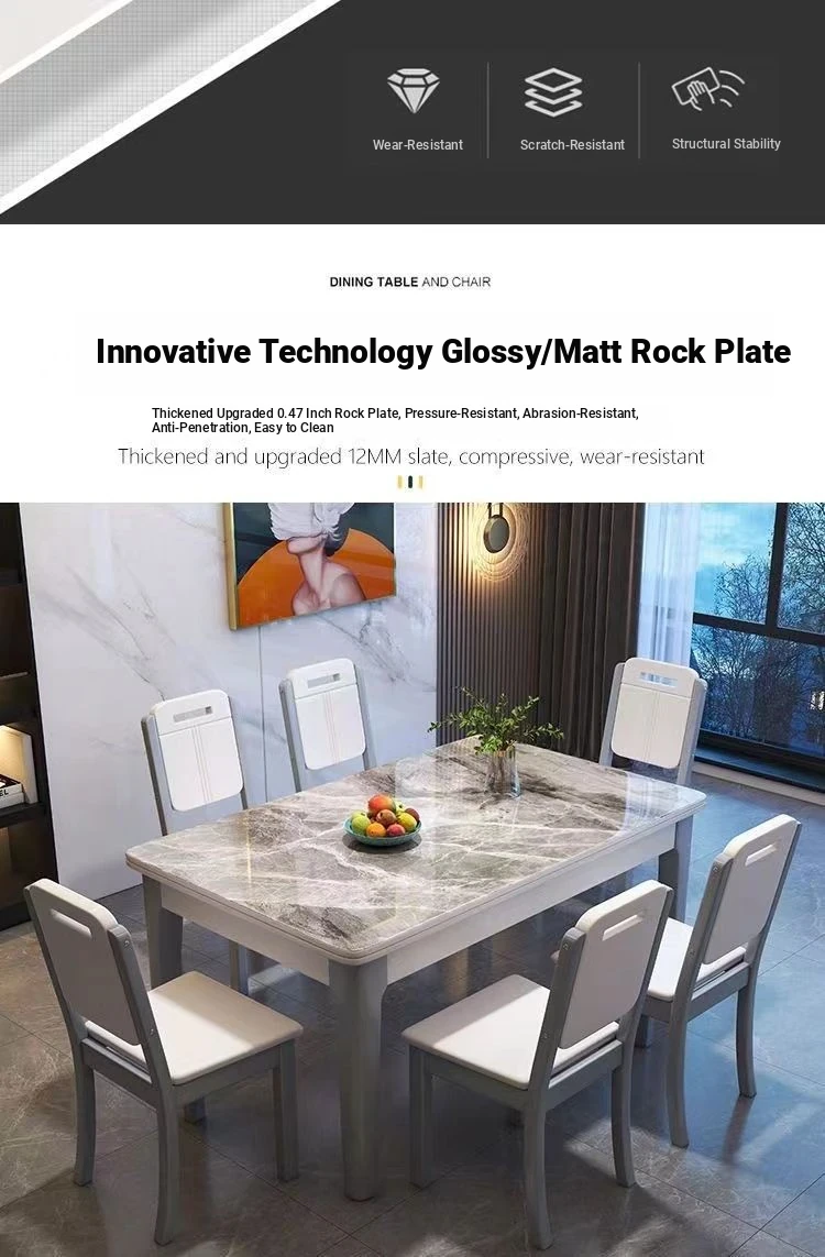 Modern Minimalist Solid Wood Dining Table Set with Rock Plate, Rectangular Design for Small Spaces - High-End Dining Experience for Your Home