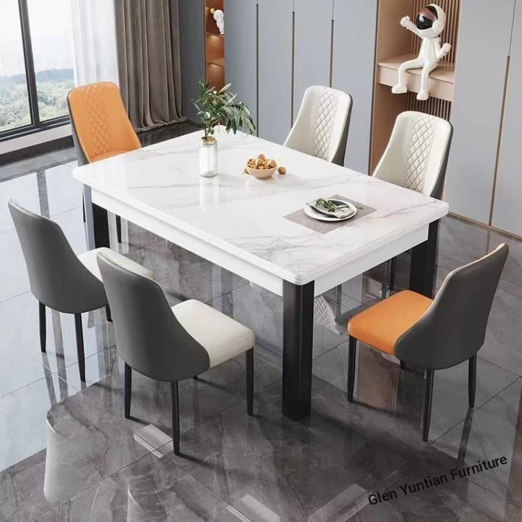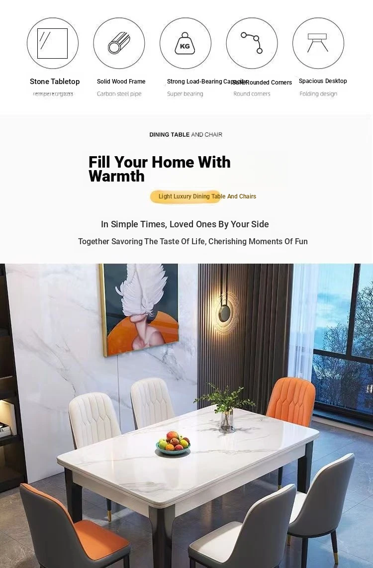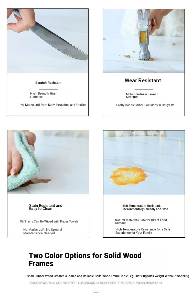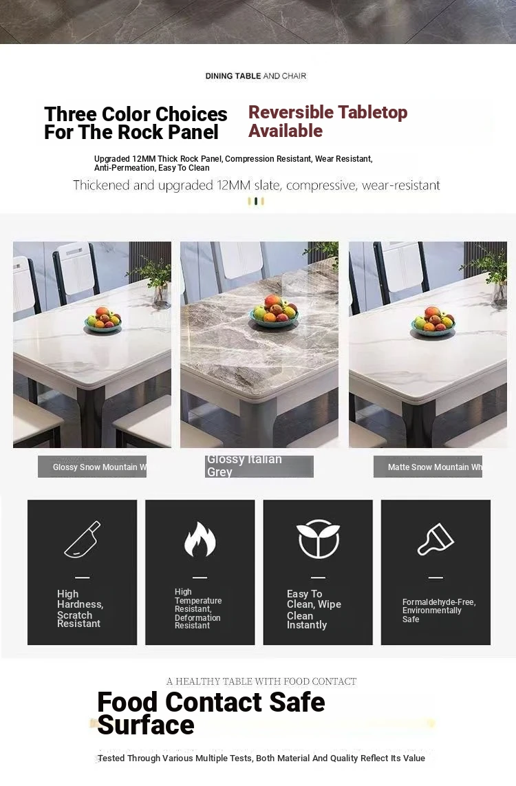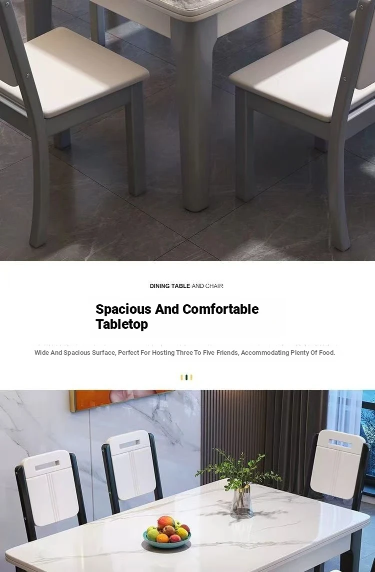 Modern Minimalist Solid Wood Dining Table Set with Rock Plate, Rectangular Design for Small Spaces - High-End Dining Experience for Your Home