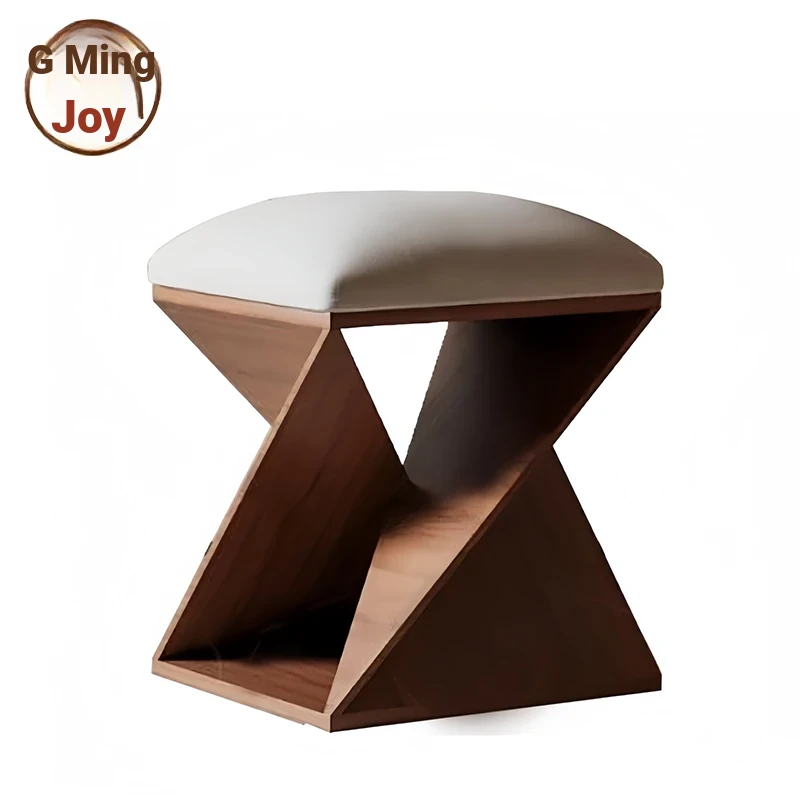 Modern Minimalist Solid Wood Vanity Stool - New Chinese Style Designer Furniture for Living Rooms, Hotels, Villas, and Guesthouses