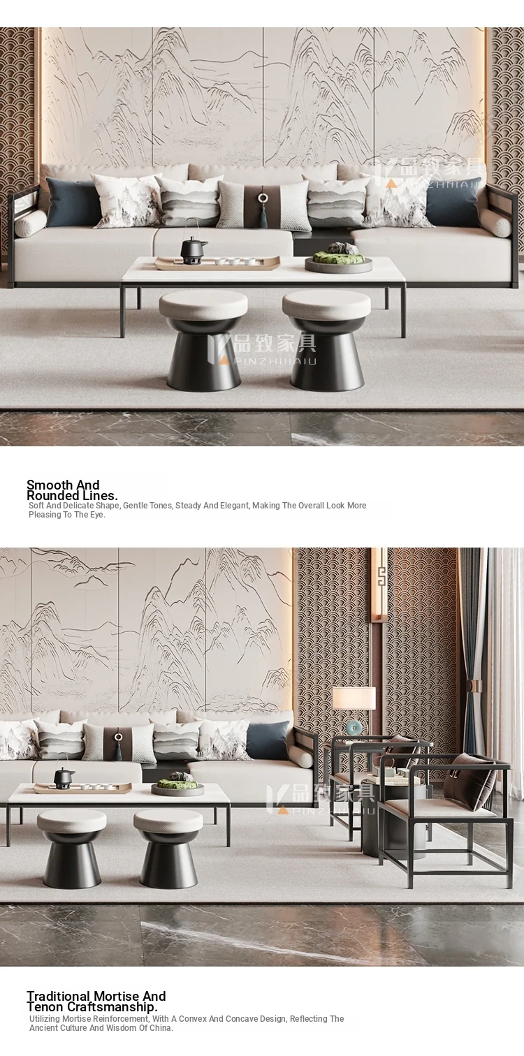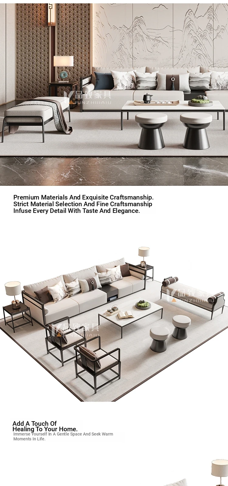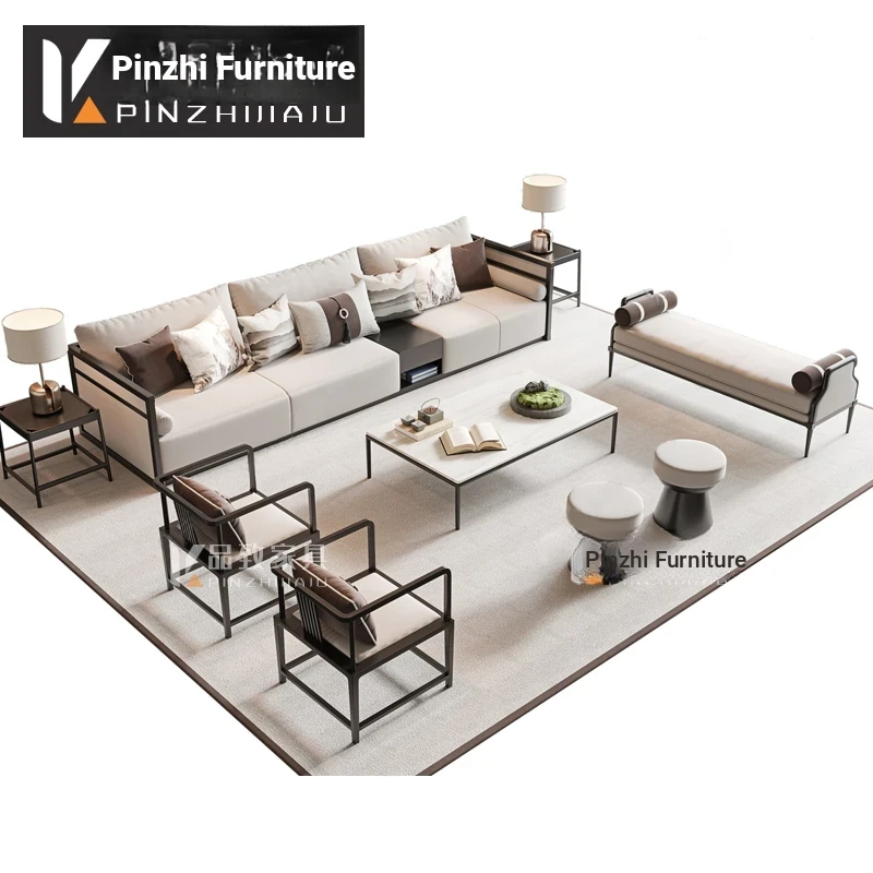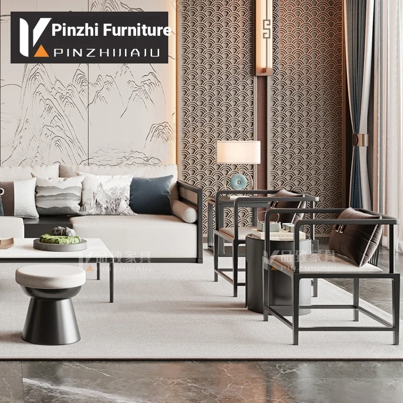 Modern New Chinese Style Solid Wood Sofa Set for Villas, Living Rooms, Sample Rooms, Hotel Lobbies, Clubhouses, and Guesthouses - Elegant Reception Furniture