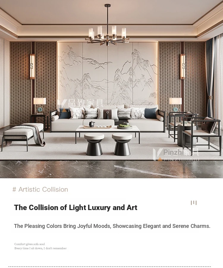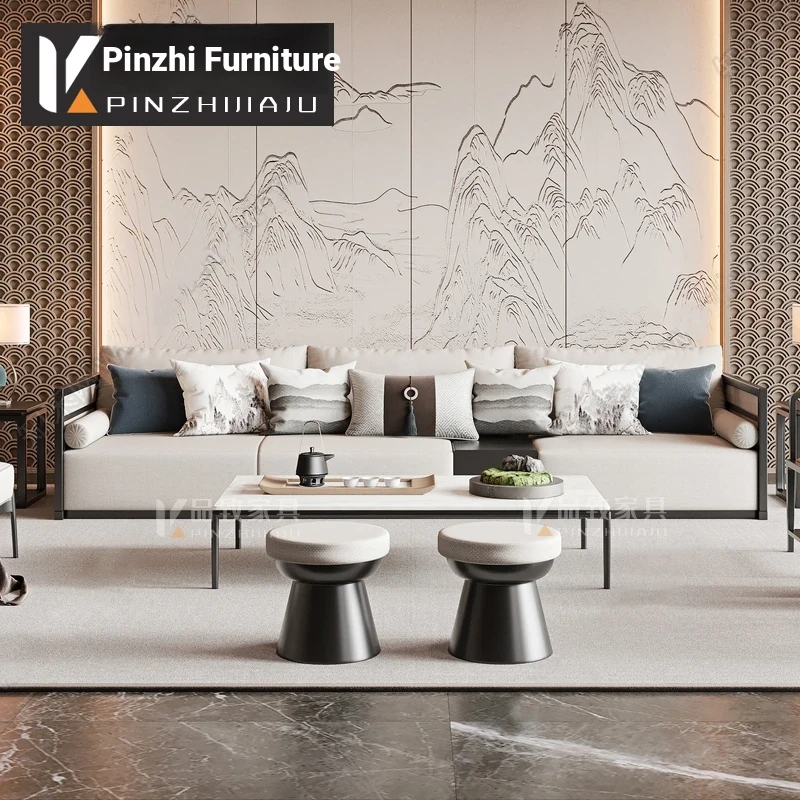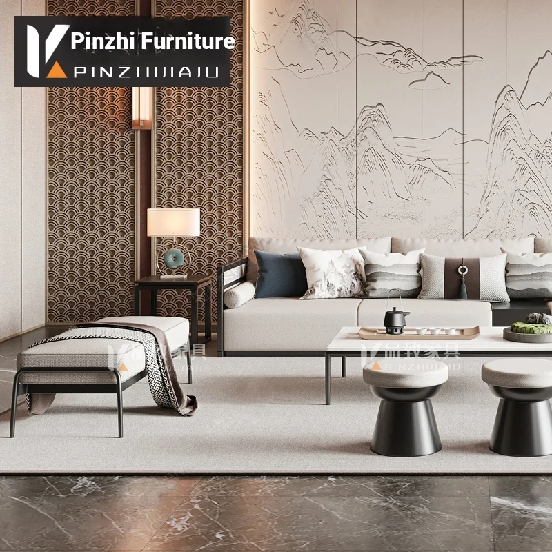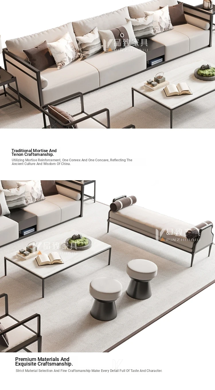 Modern New Chinese Style Solid Wood Sofa Set for Villas, Living Rooms, Sample Rooms, Hotel Lobbies, Clubhouses, and Guesthouses - Elegant Reception Furniture