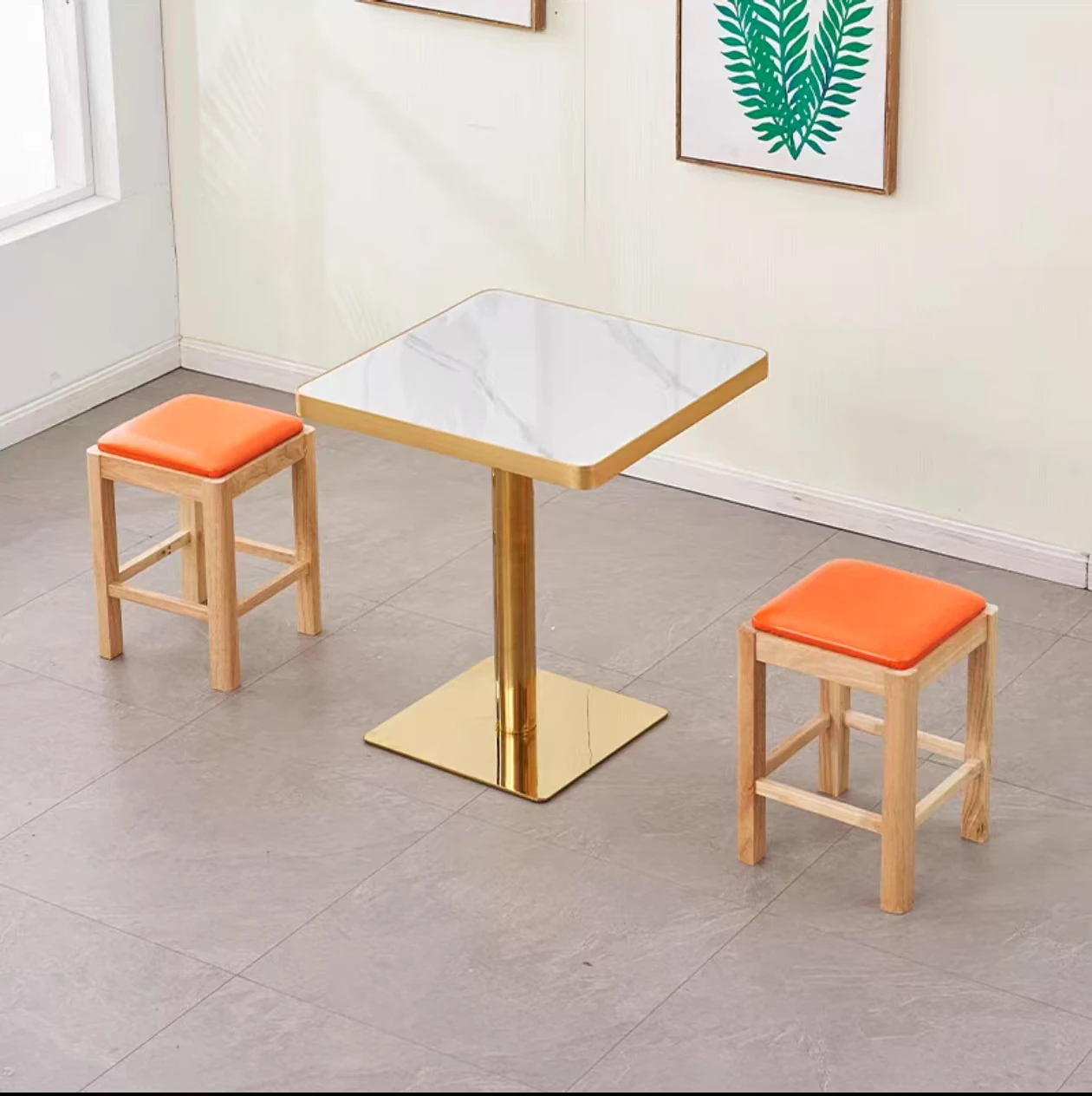 60*60 gold side slab 2 side legs + 2 orange benches