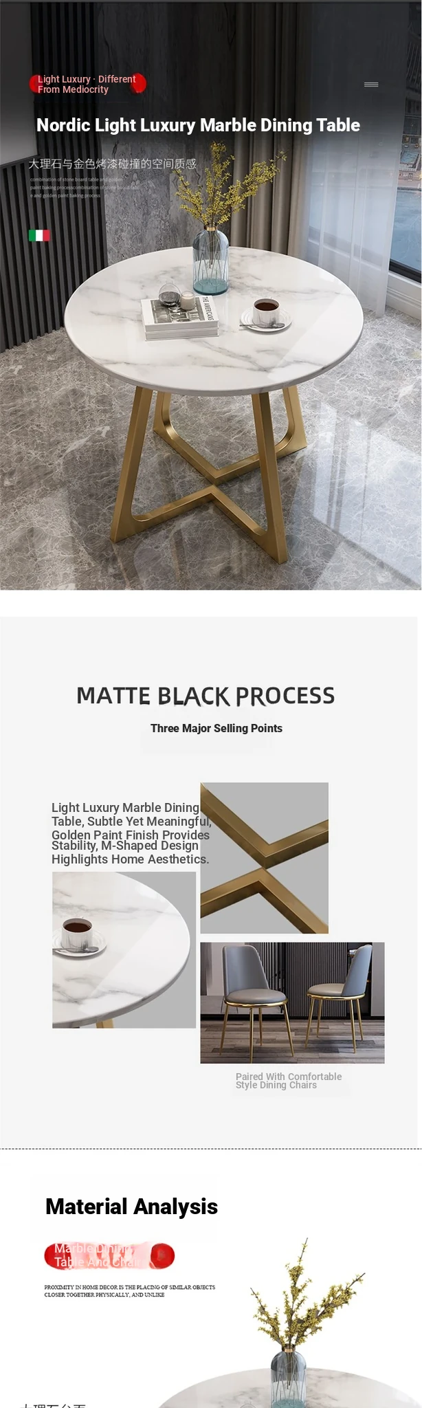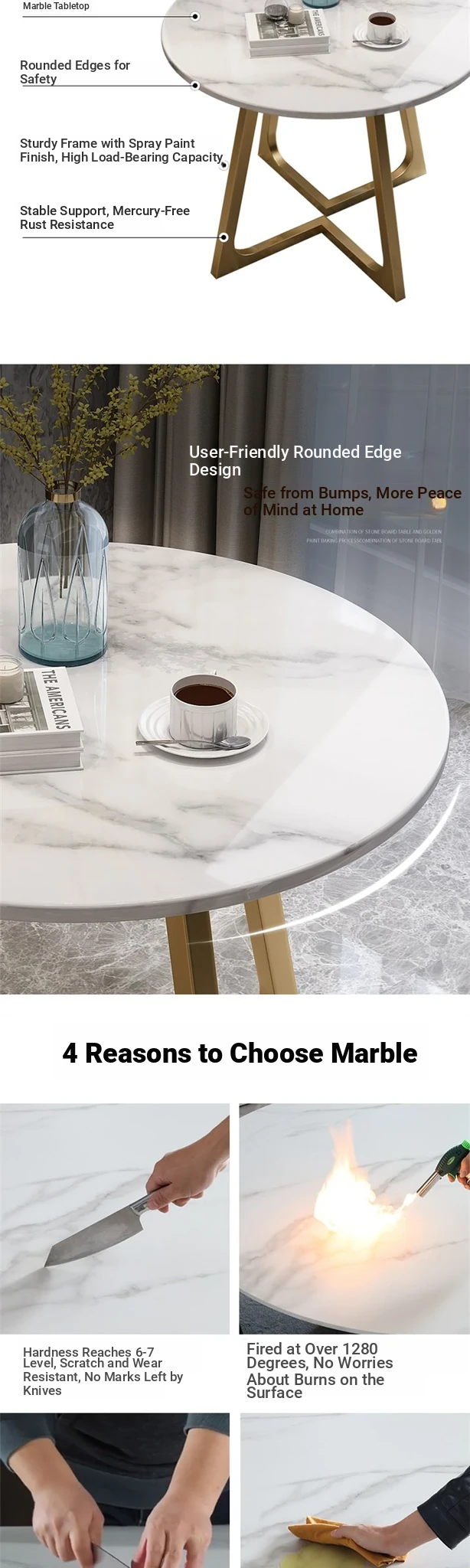 Modern Round Marble Dining Table - Stylish Coffee Table for Casual Meetings and Reception Spaces, Perfect for Cozy Gatherings