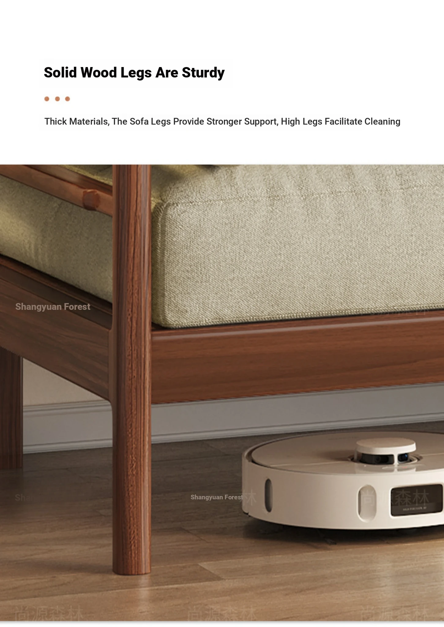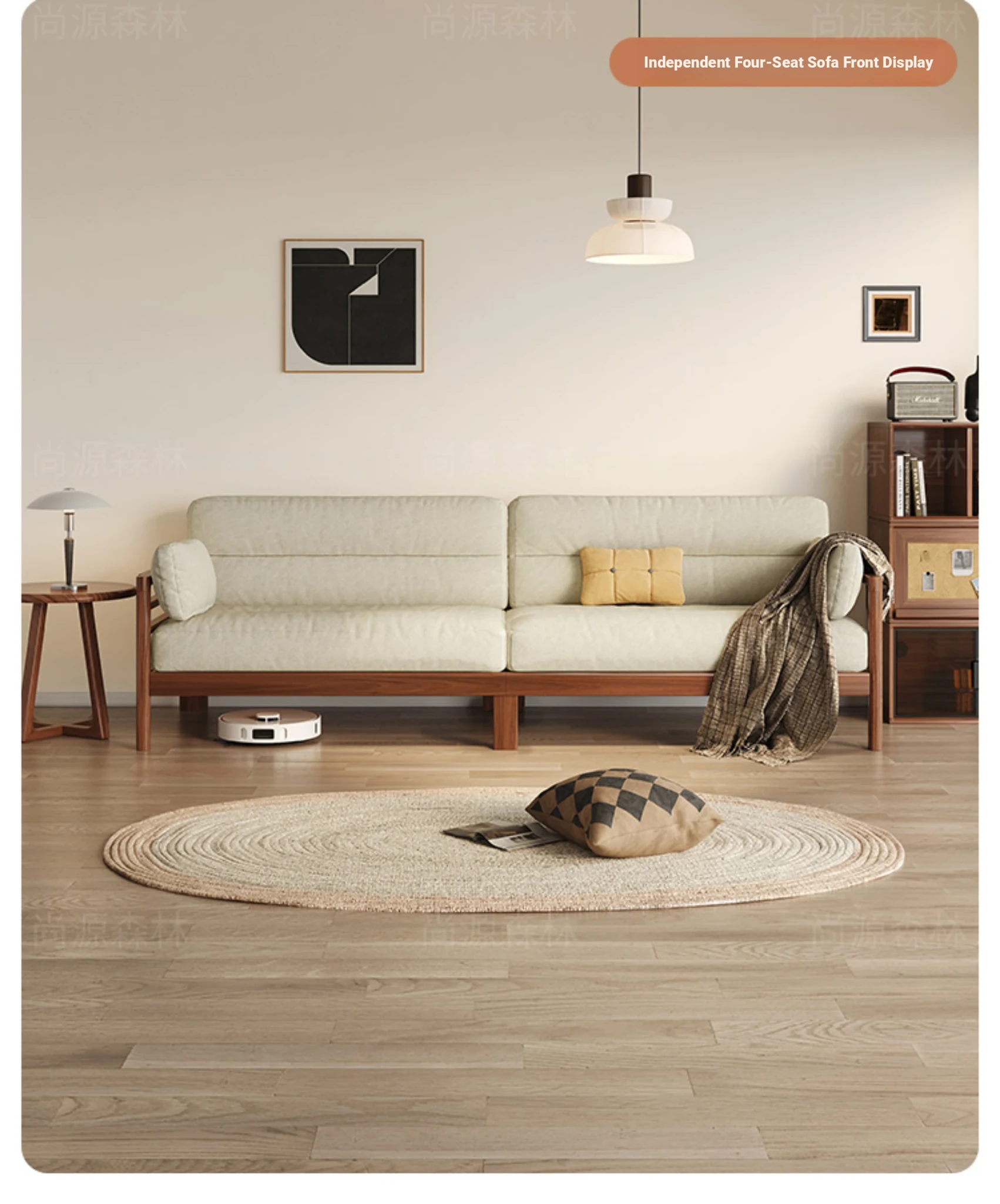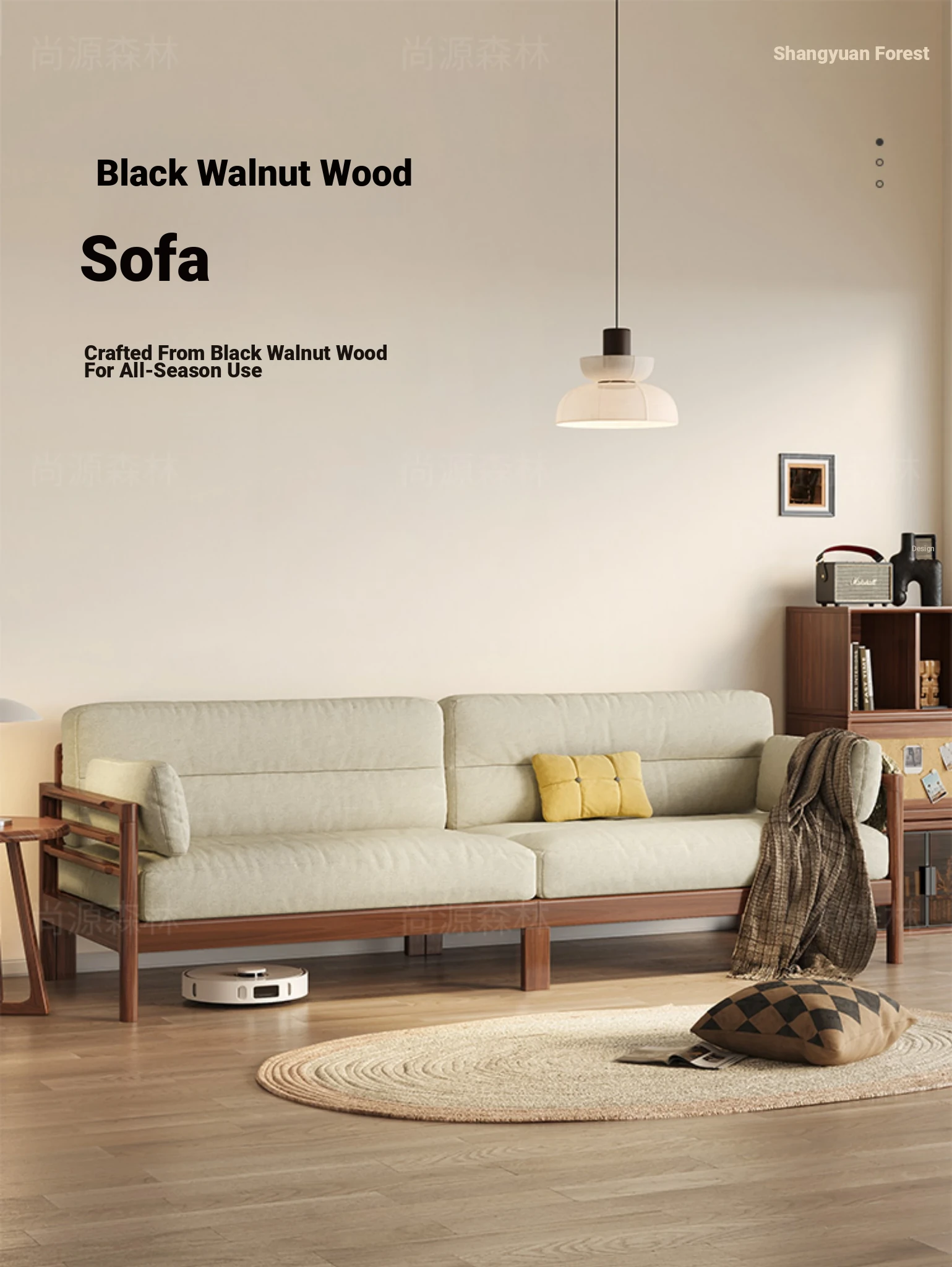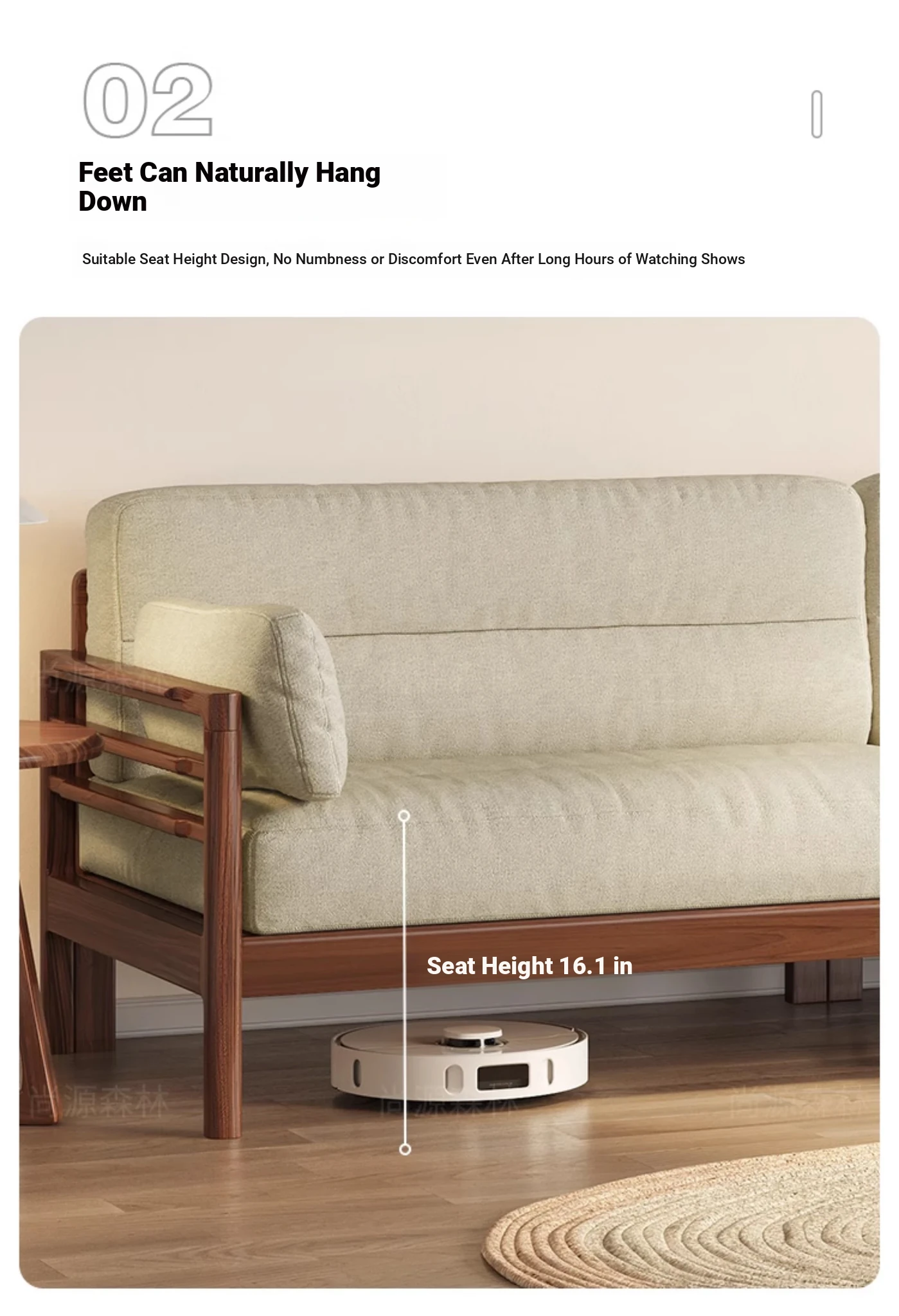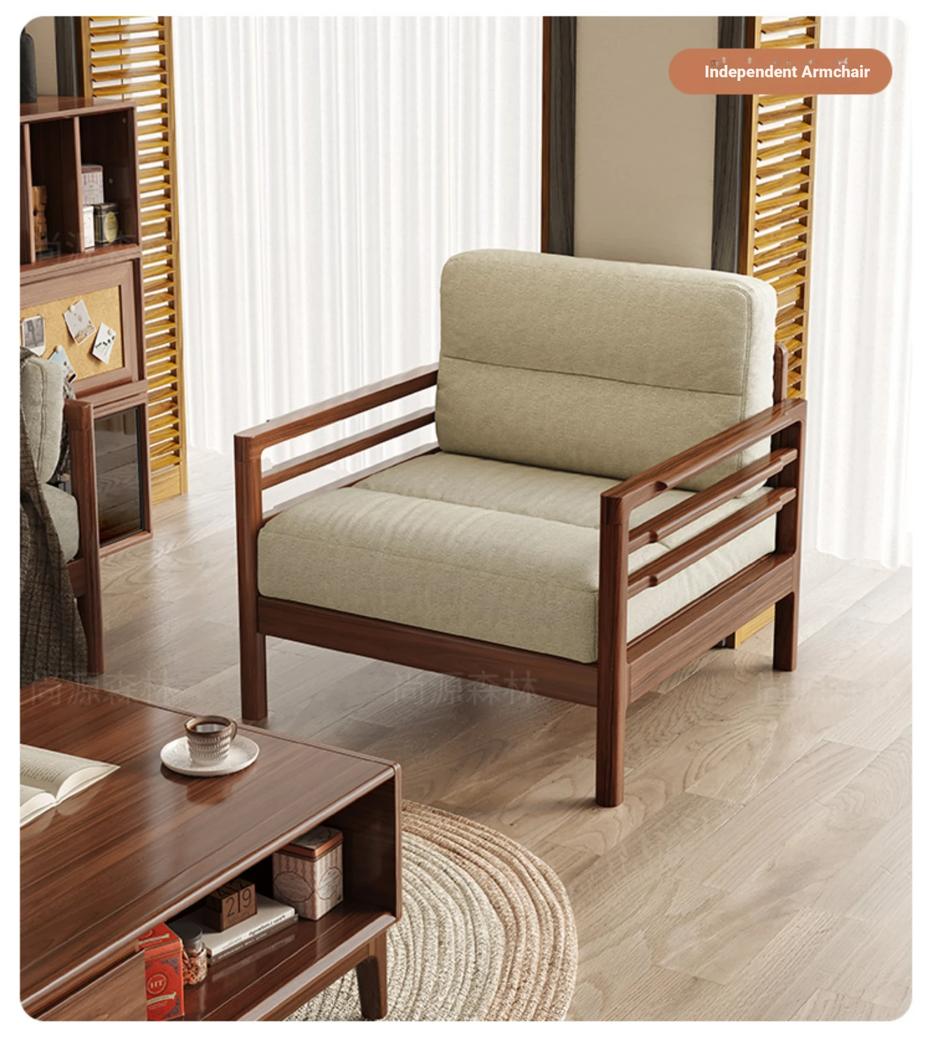 [Black Walnut] single seat sofa (cotton and linen creamy-white)